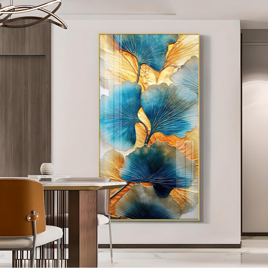 Dual Floral Marble Glass Finish Vertical Wall Art