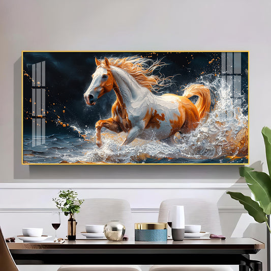 Jungle Running Horses Vastu Glass Finish Horizontal Wall Art