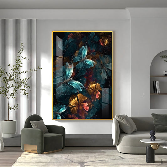 Golden Elegance Wall Decor Glass Finish Vertical Wall Art