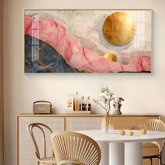 Pink and Gold Marble Stone Texture Glass Finish Horizontal Wall Art