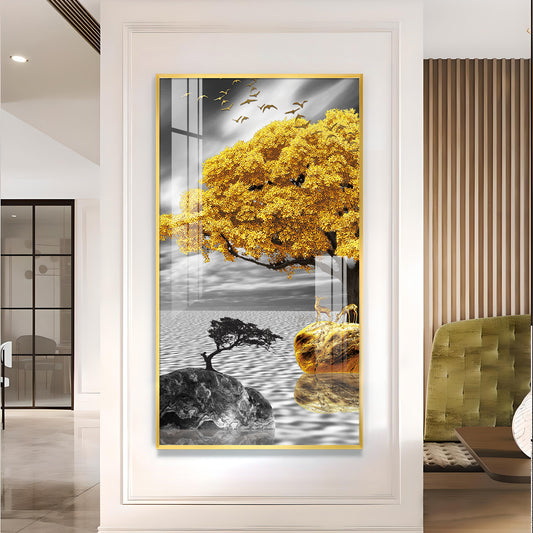 Golden Tree Oasis Glass Finish Vertical Wall Art