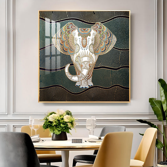 Regal Elephant Portrait Glass Finish Square Wall Art
