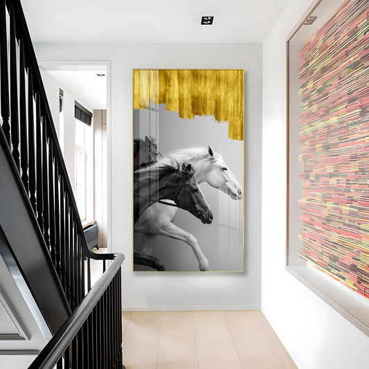 Jumping Horse In Orange Horizon Glass Finish Square Wall Art
