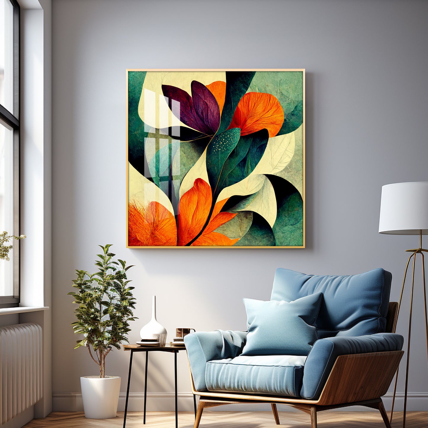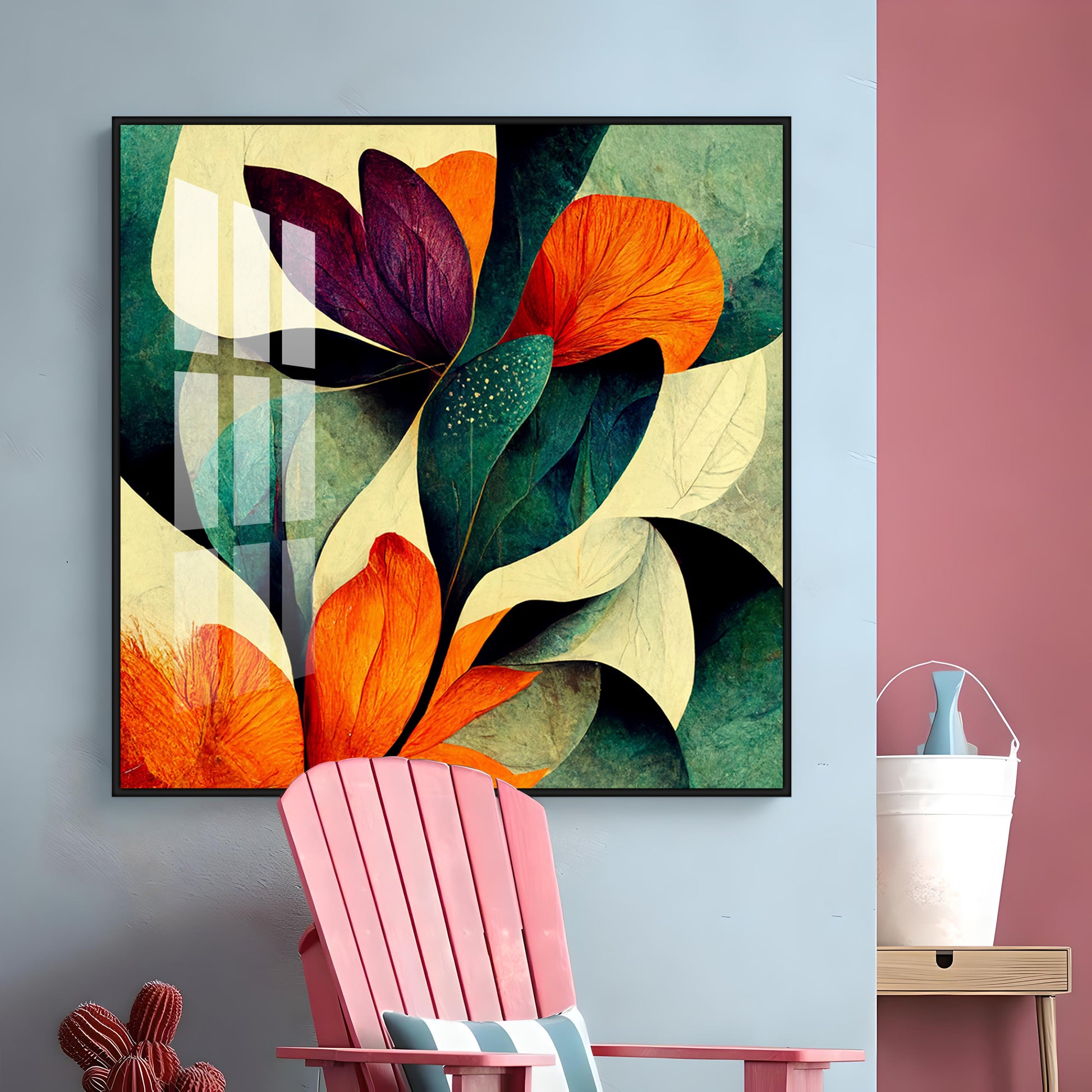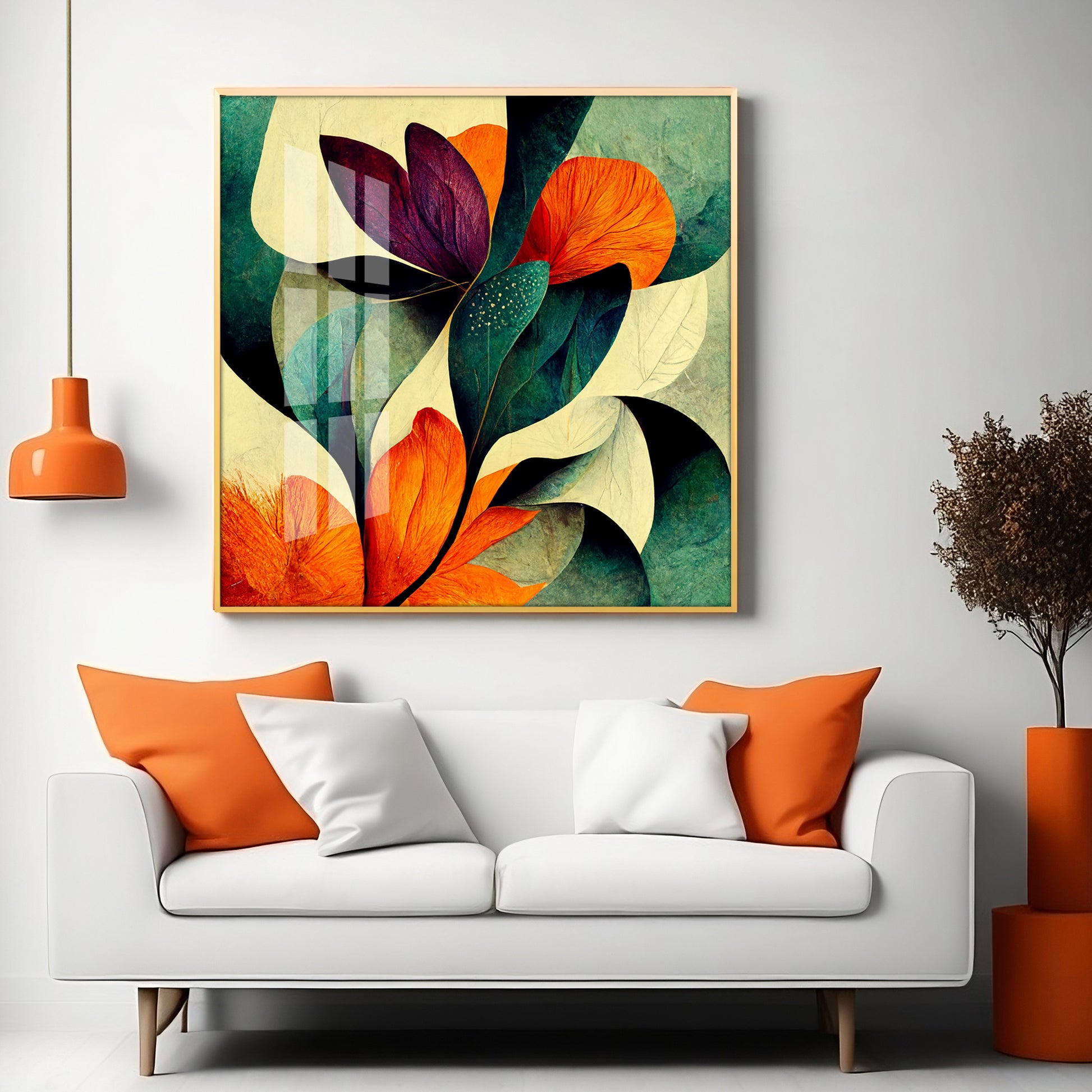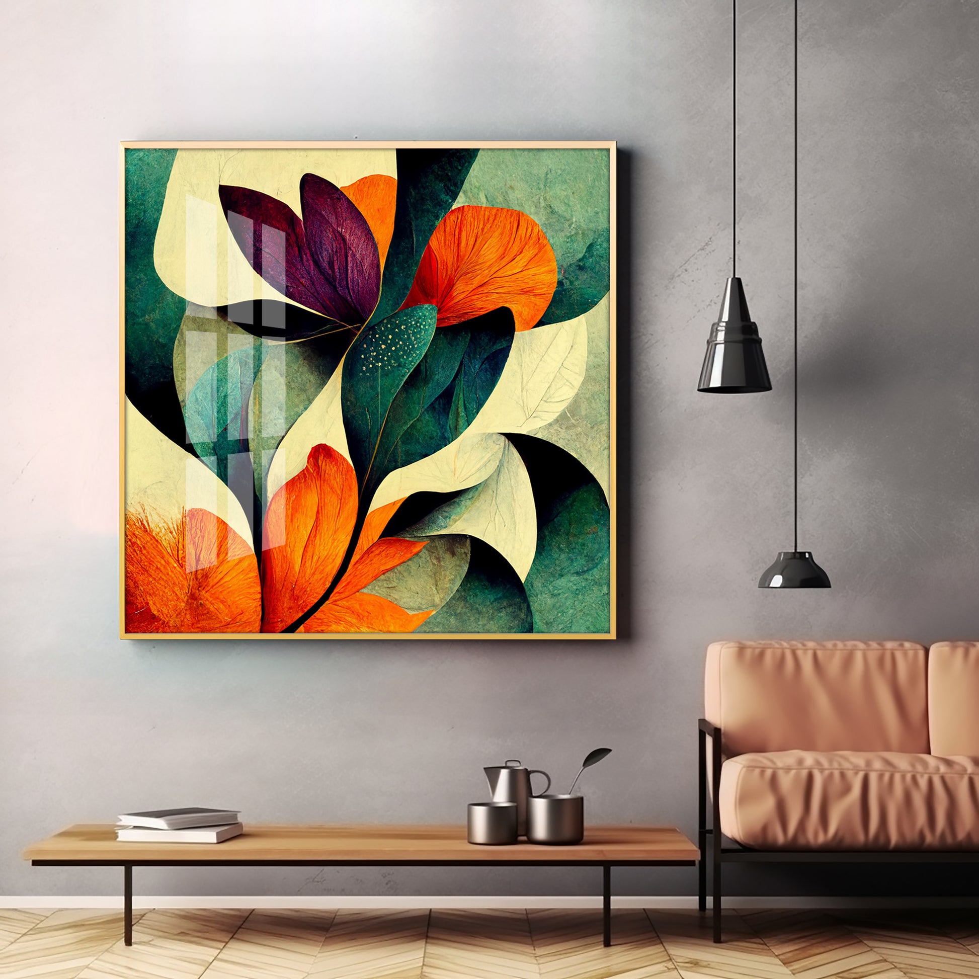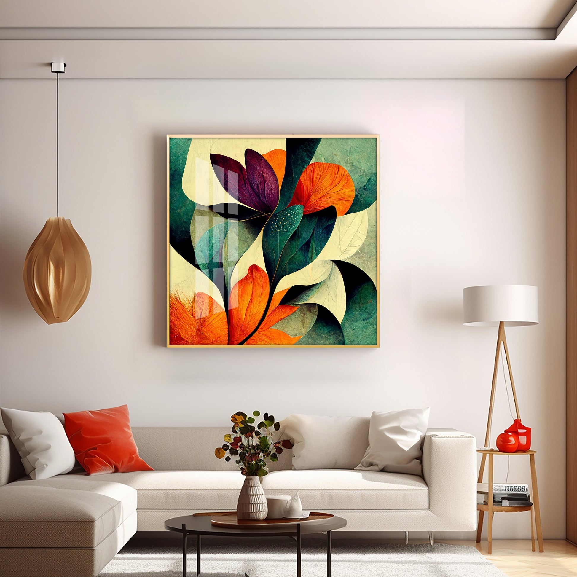 Abstract Bliss Flower Glass Finish Square Wall Art