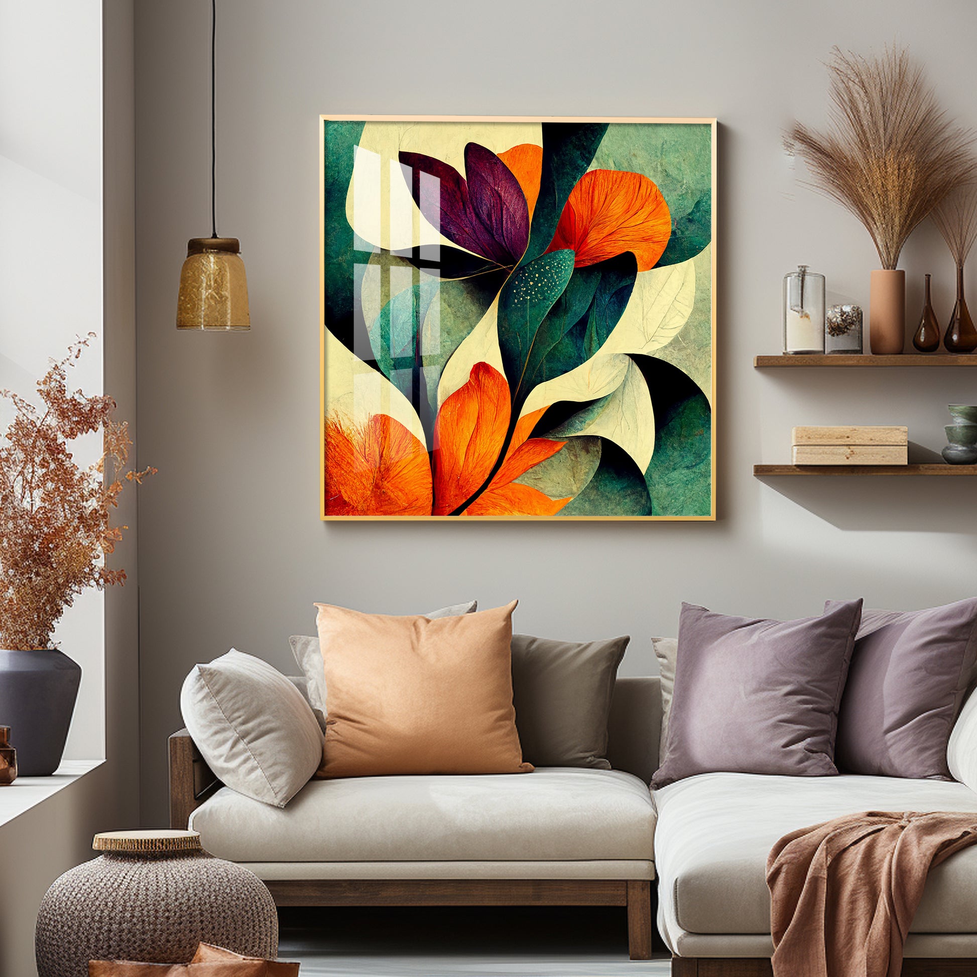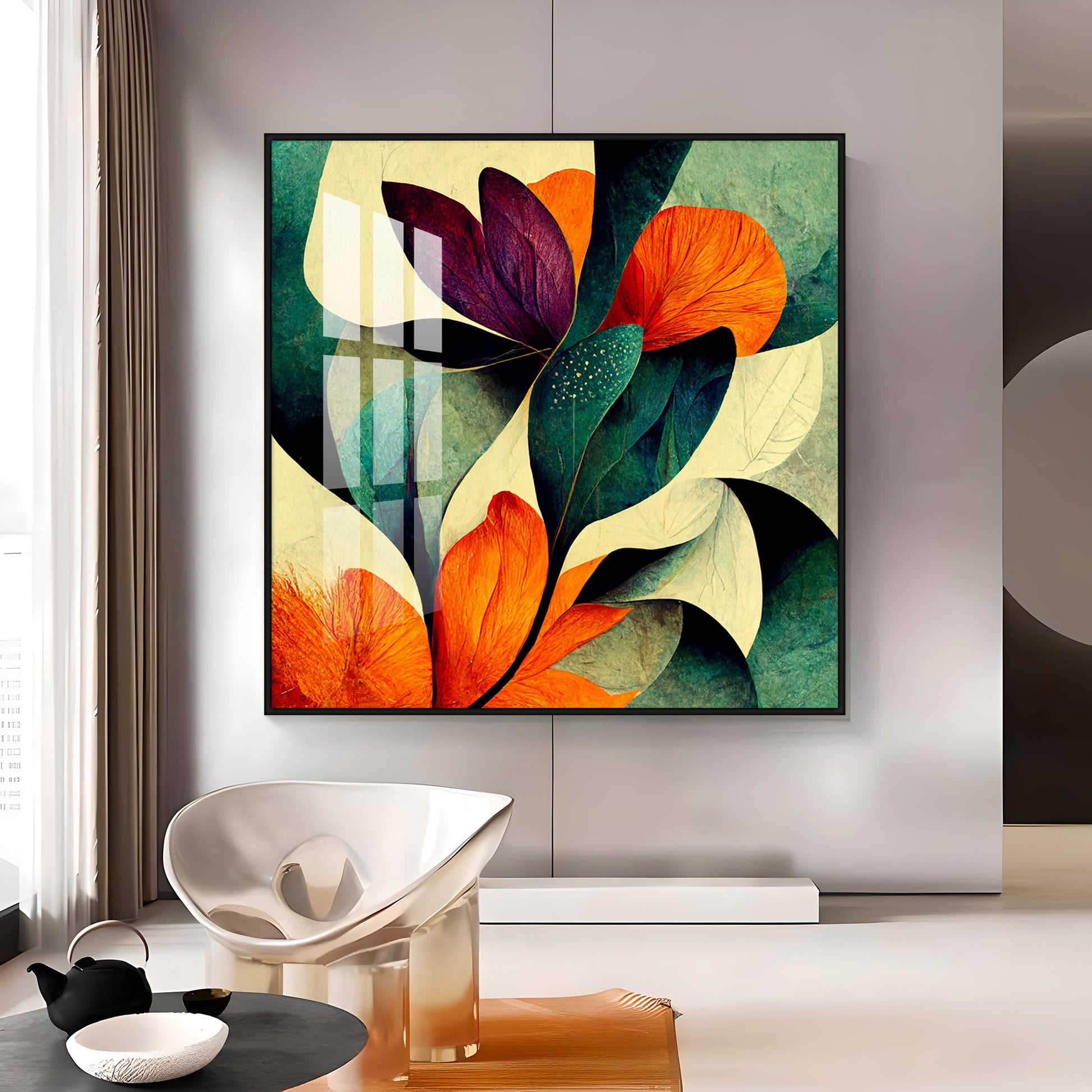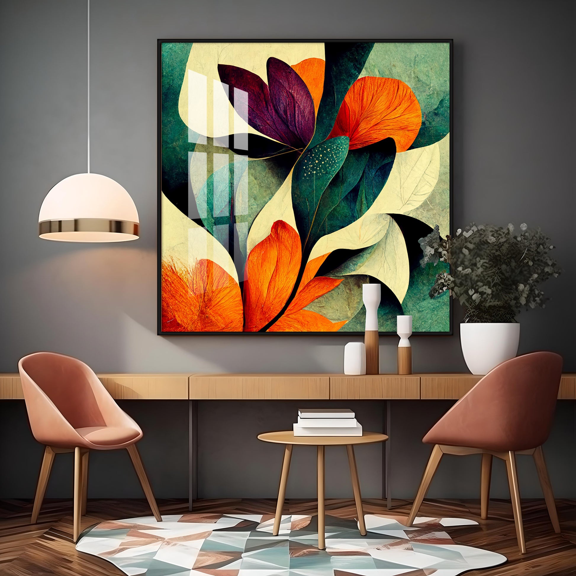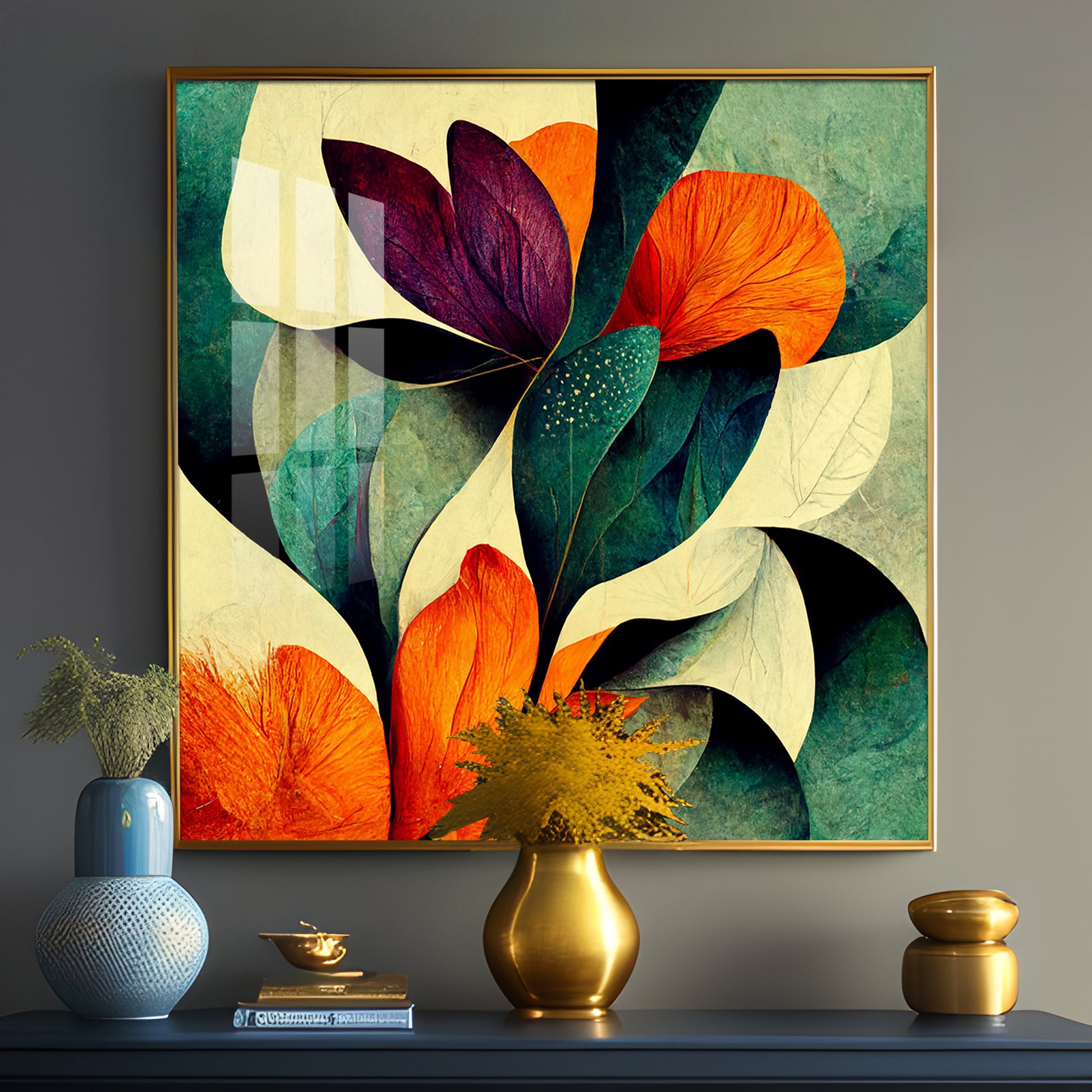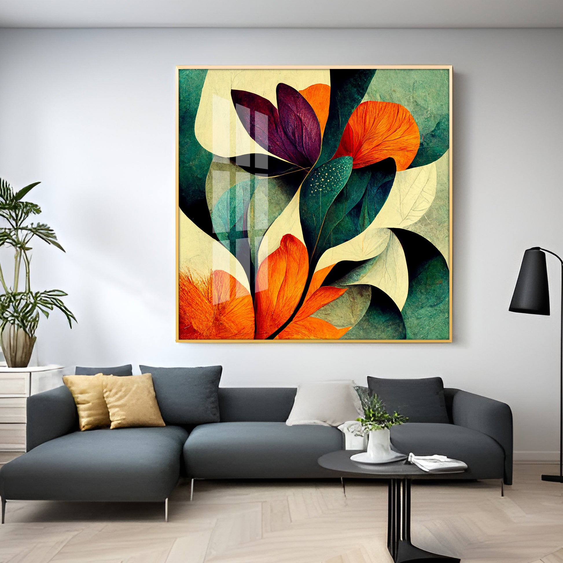 Abstract Bliss Flower Glass Finish Square Wall Art