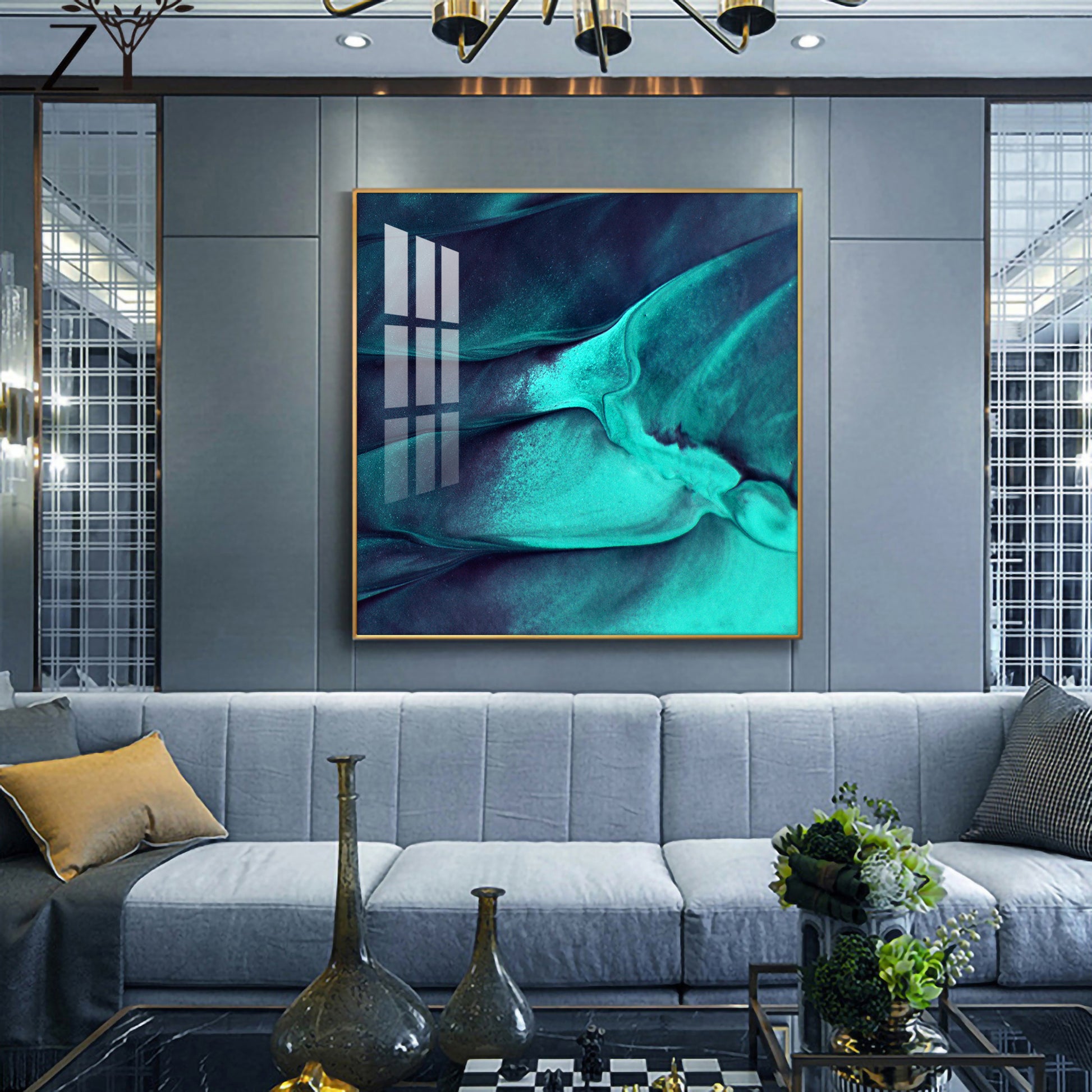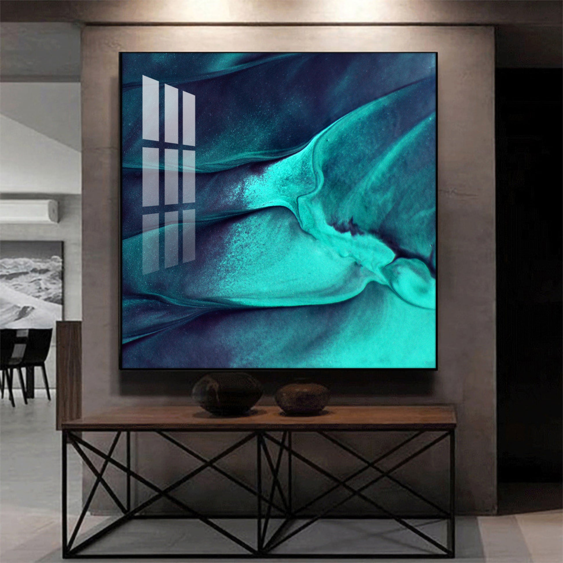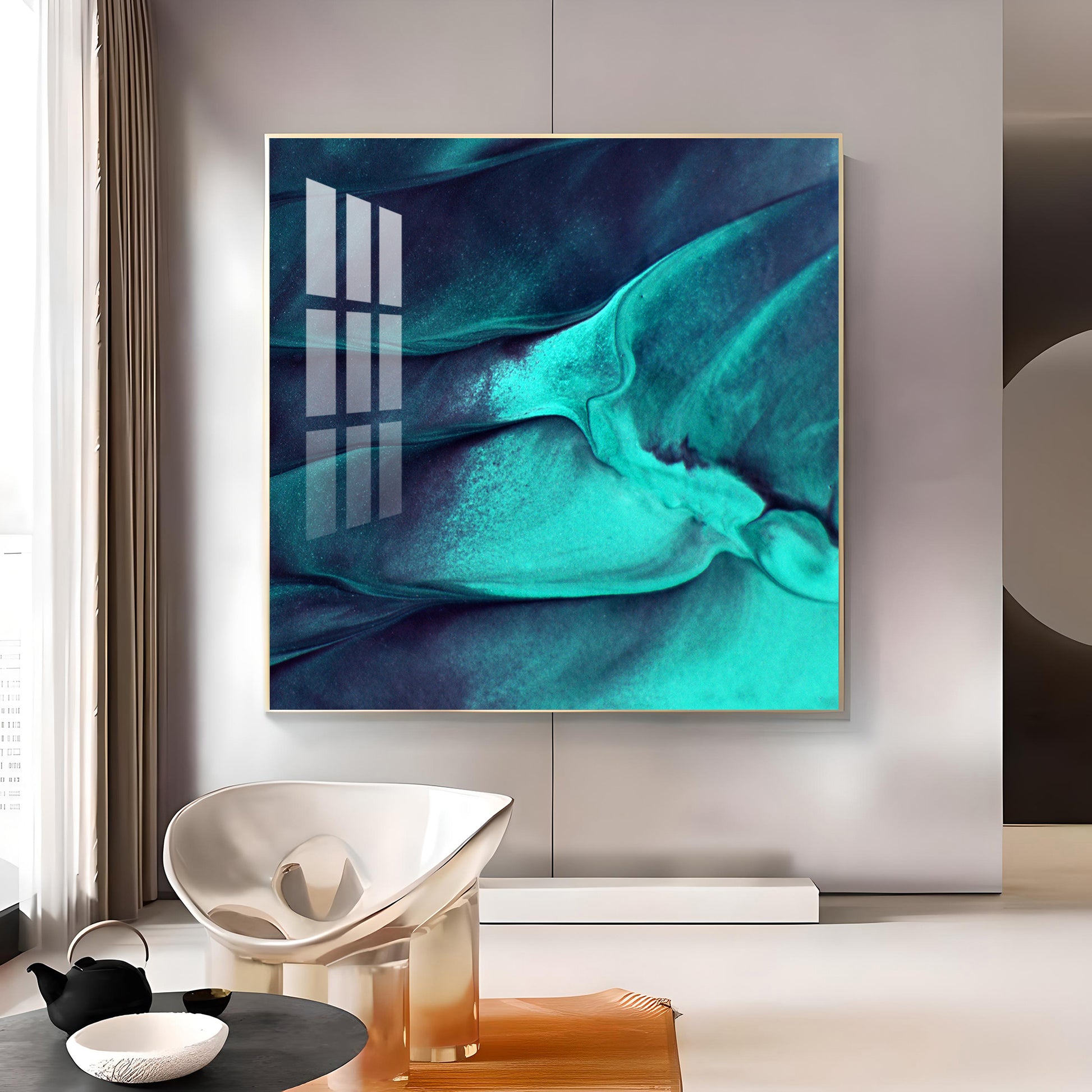Azure Wave Masterpiece Glass Finish Square Wall Art