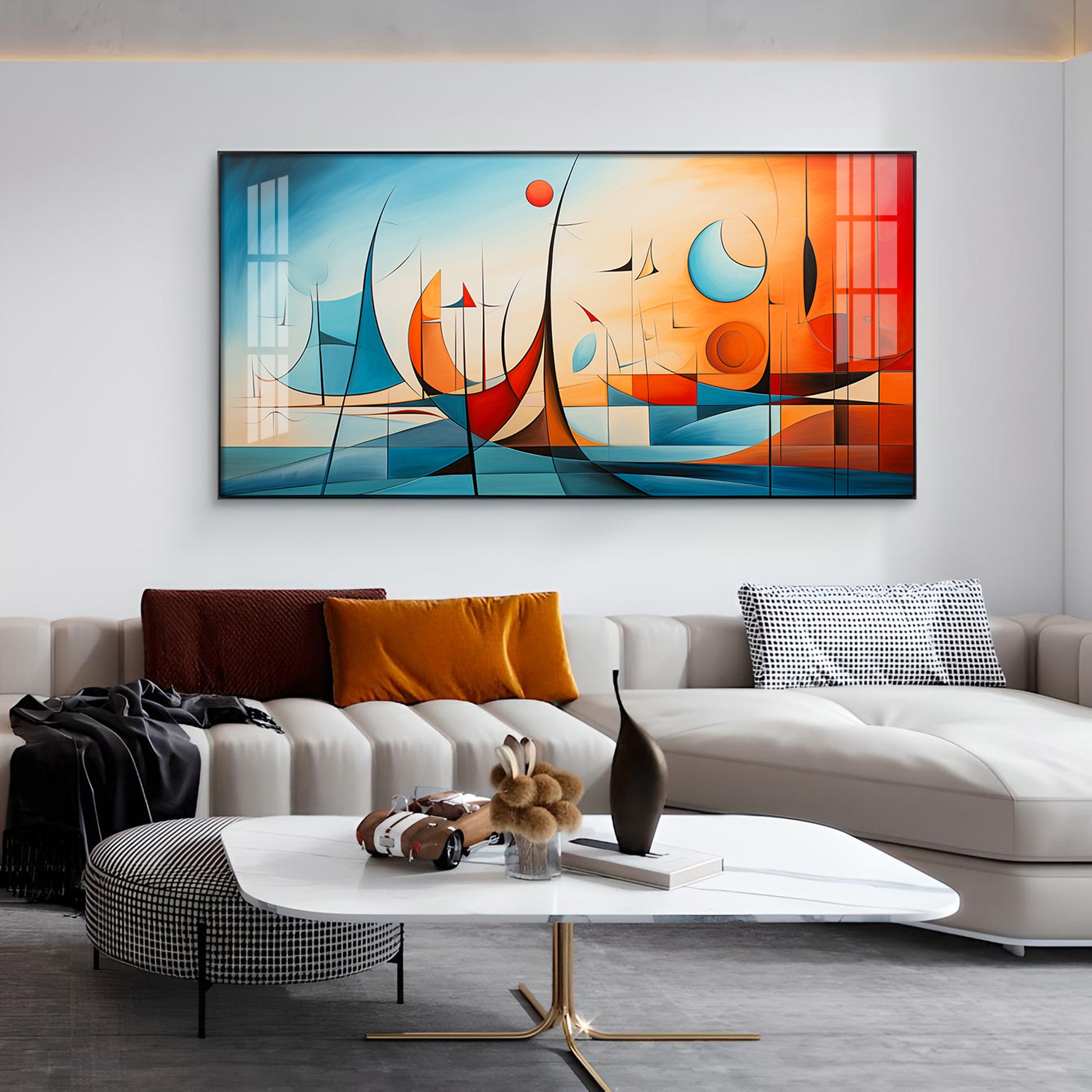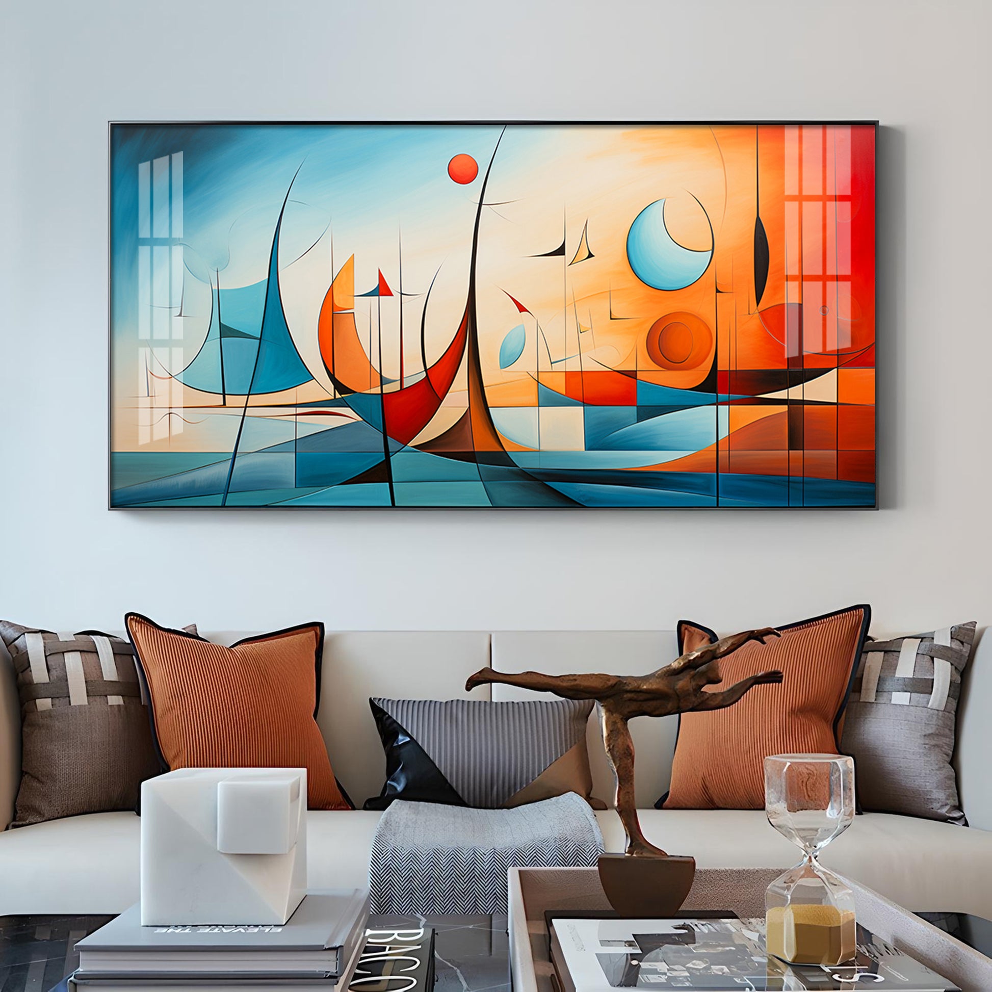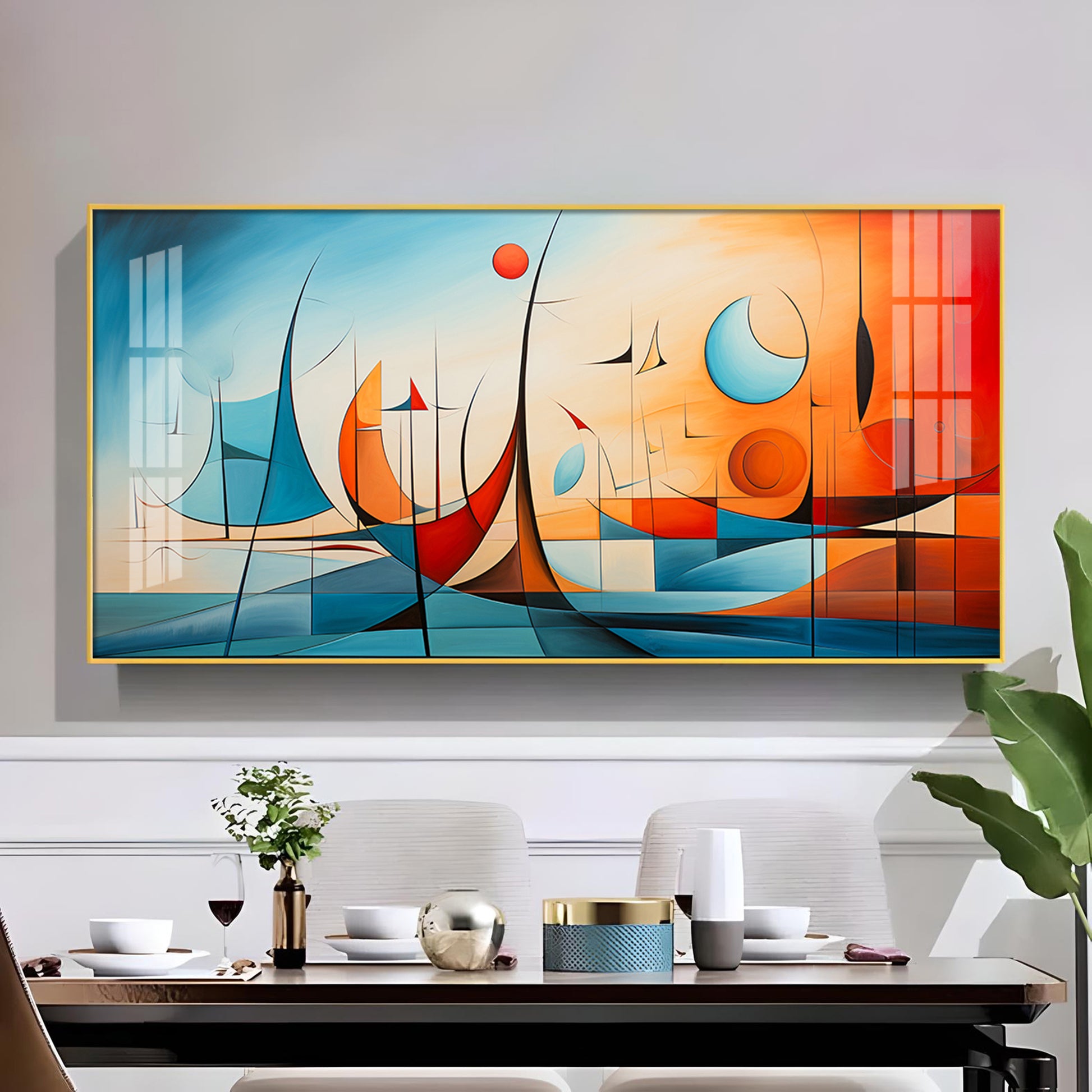 Beautiful Modern Abstract Glass Finish Horizontal Wall Art