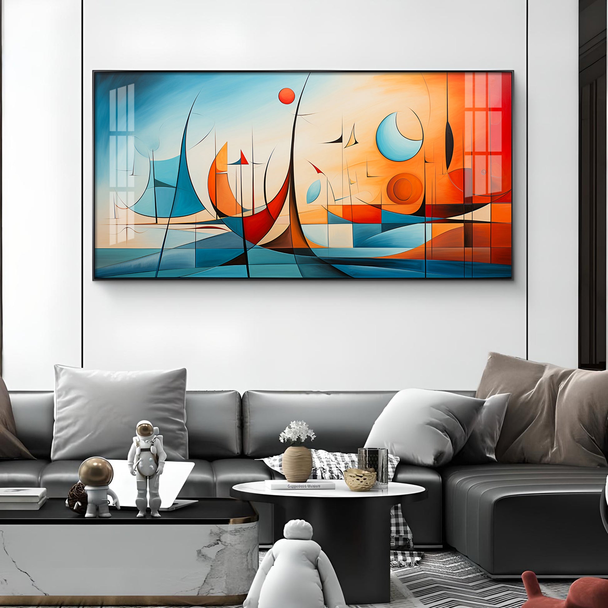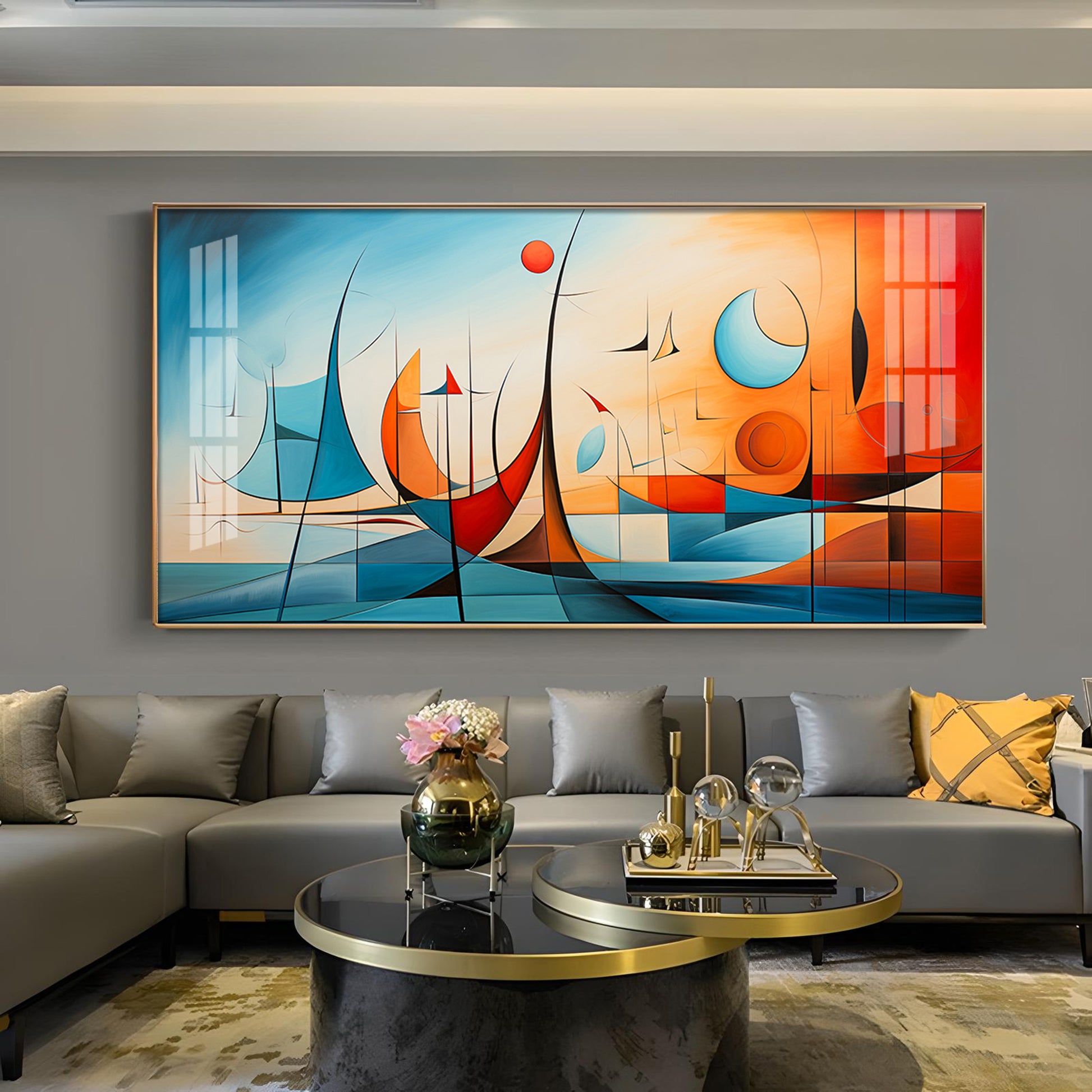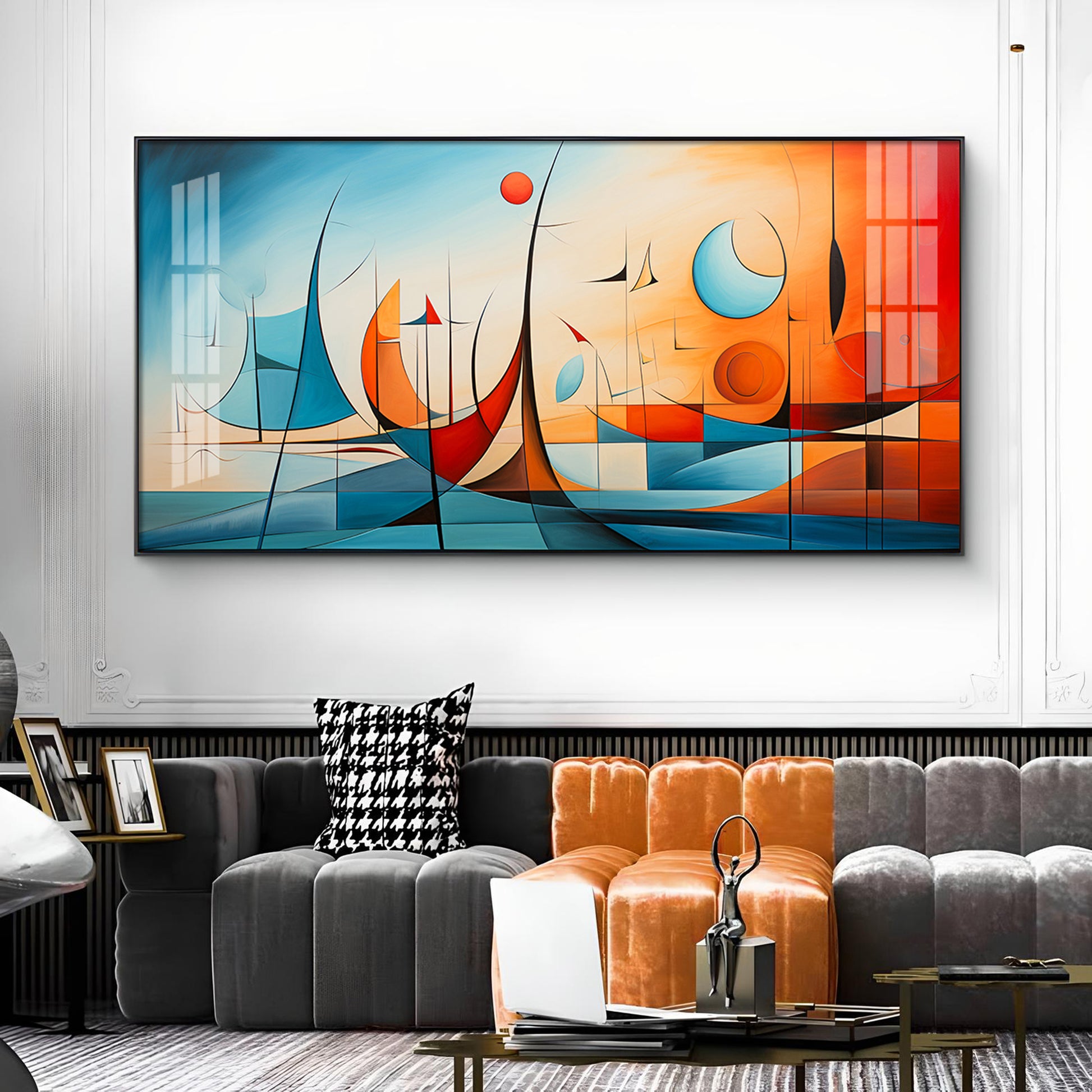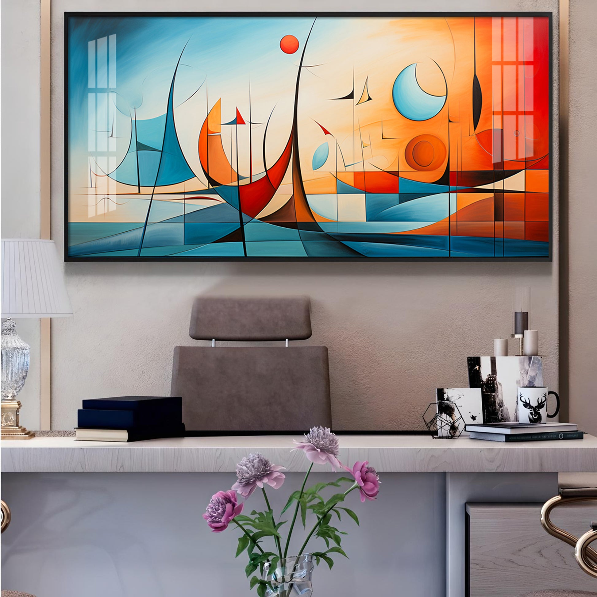 Beautiful Modern Abstract Glass Finish Horizontal Wall Art