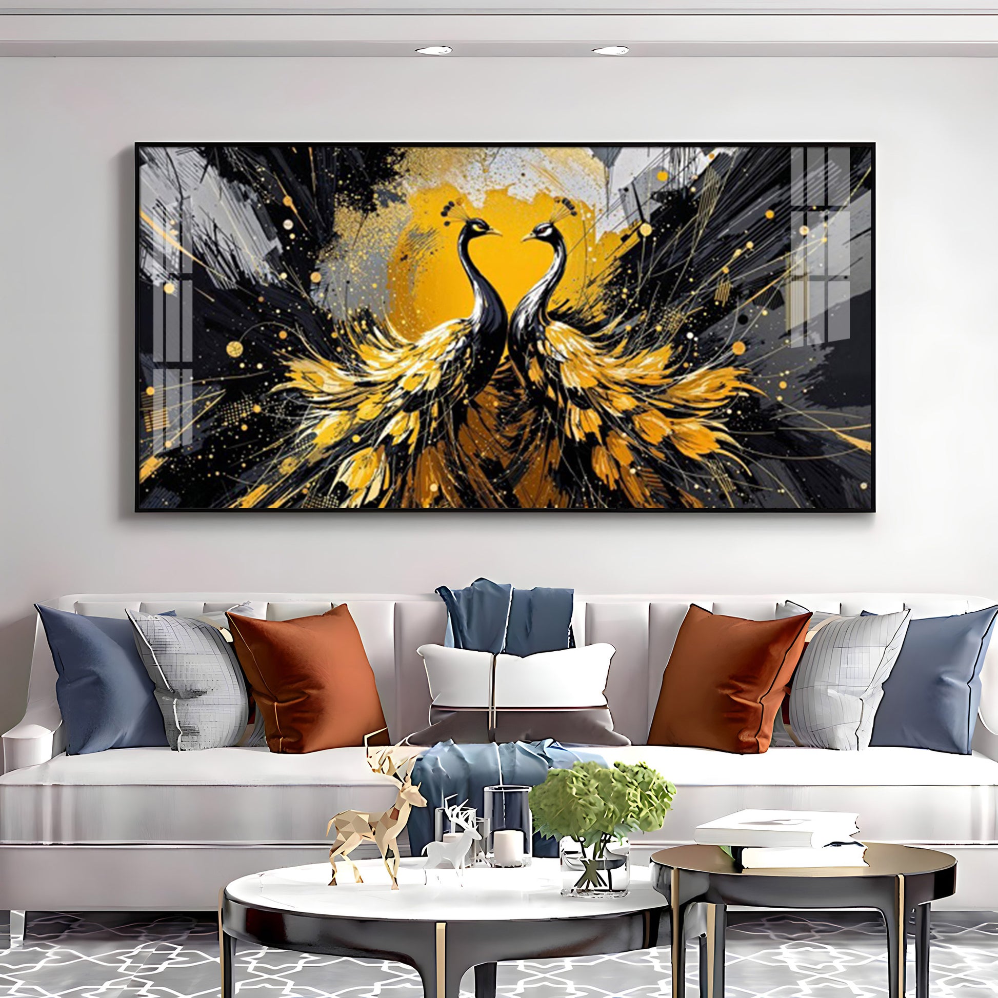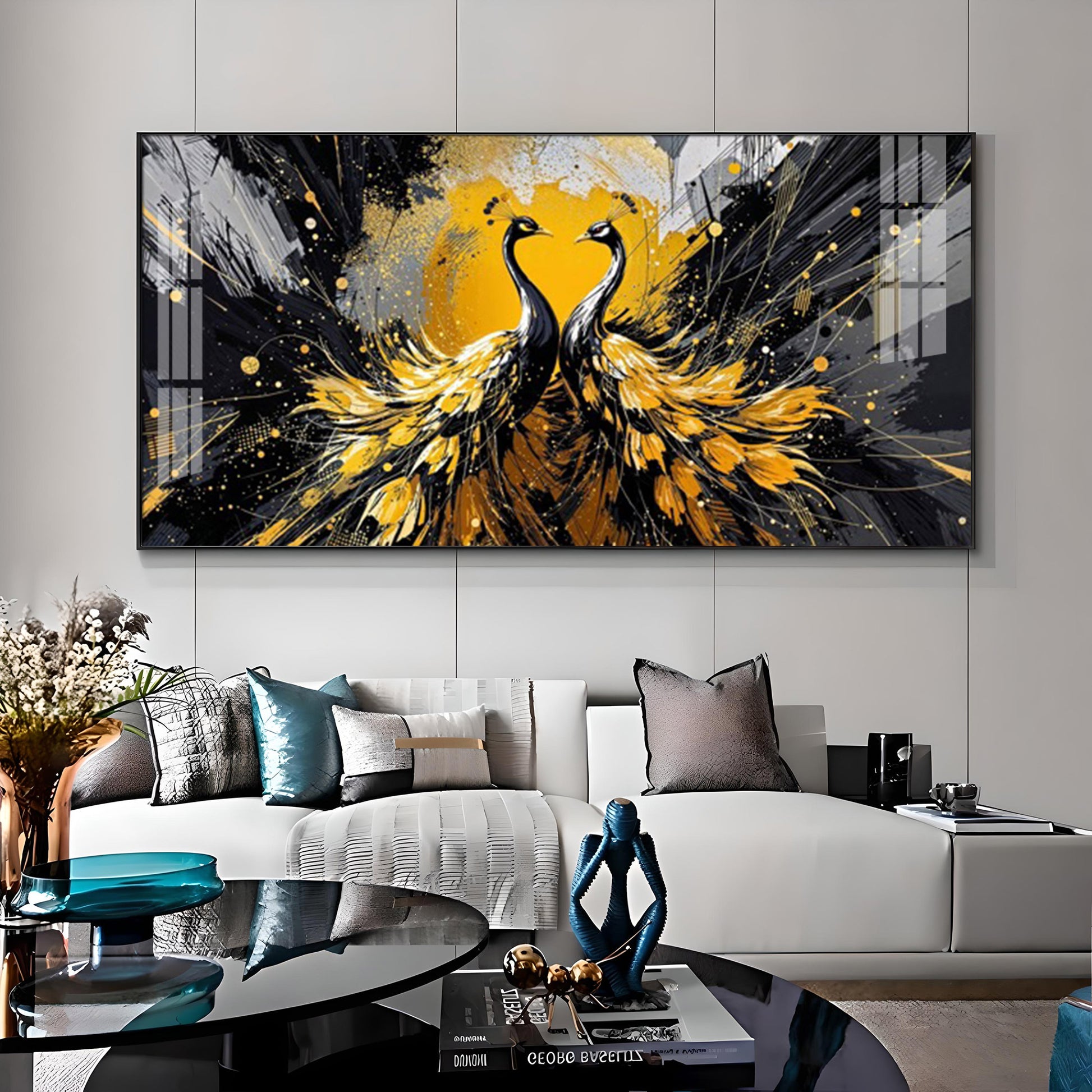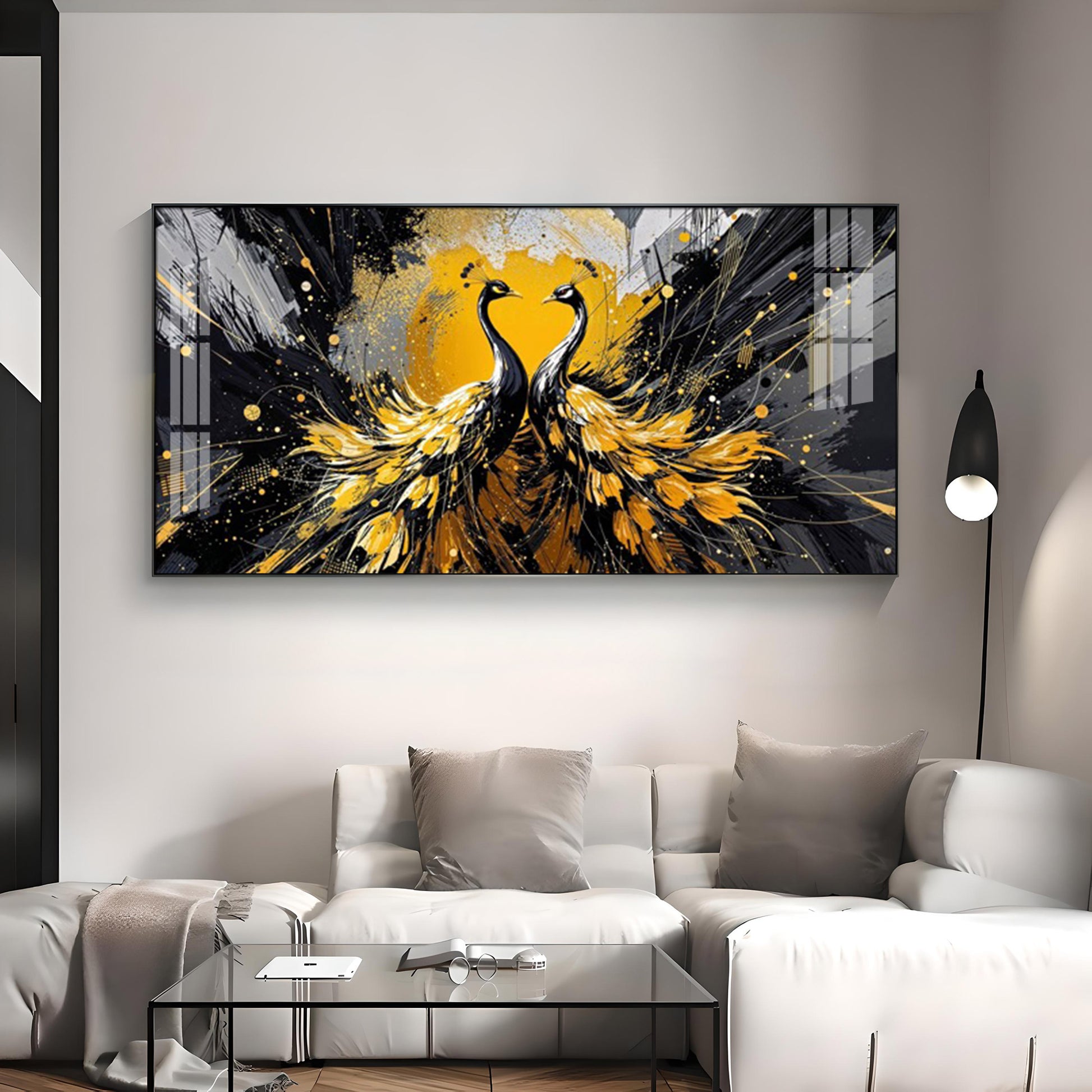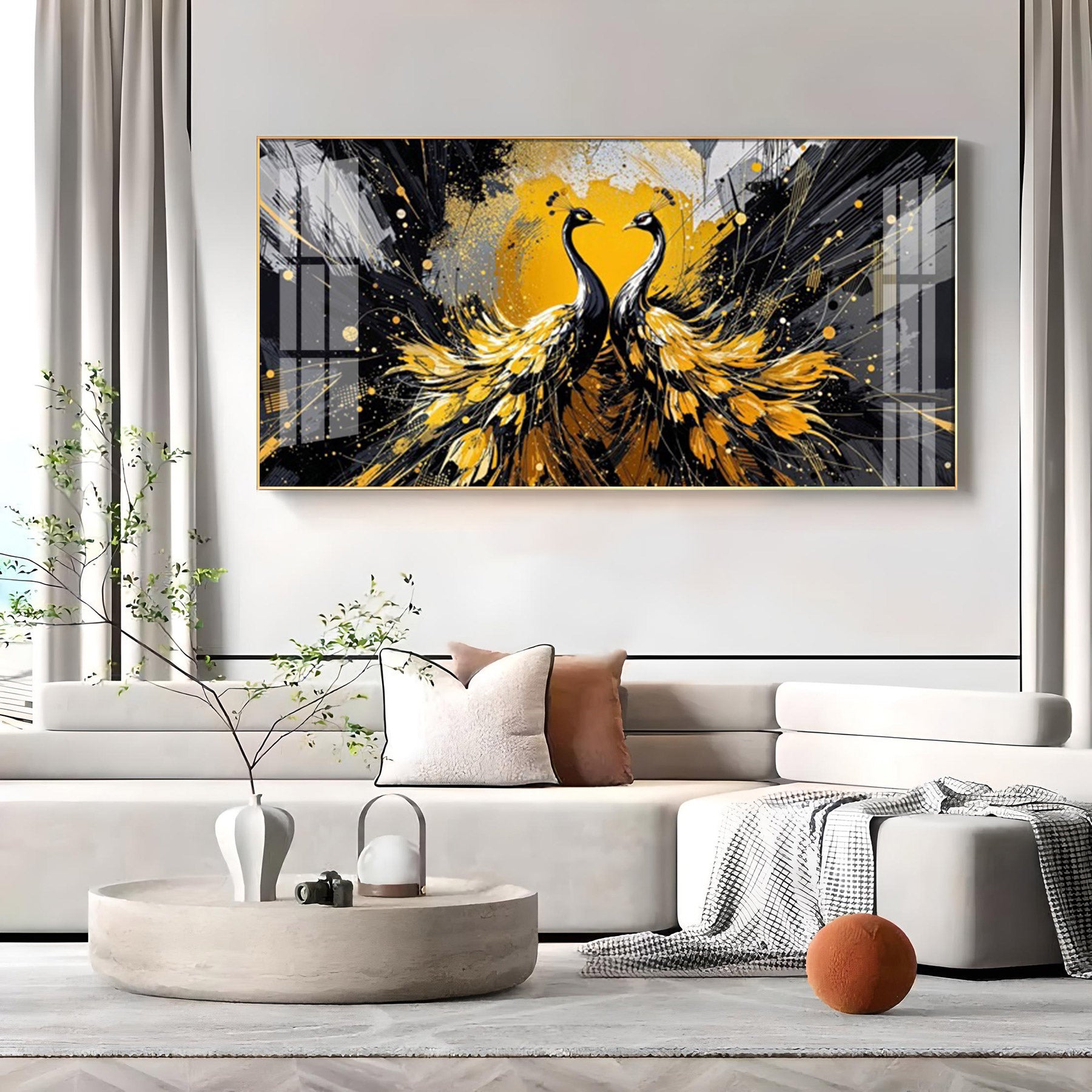 Beautiful Two Mayura Glass Finish Horizontal Wall Art