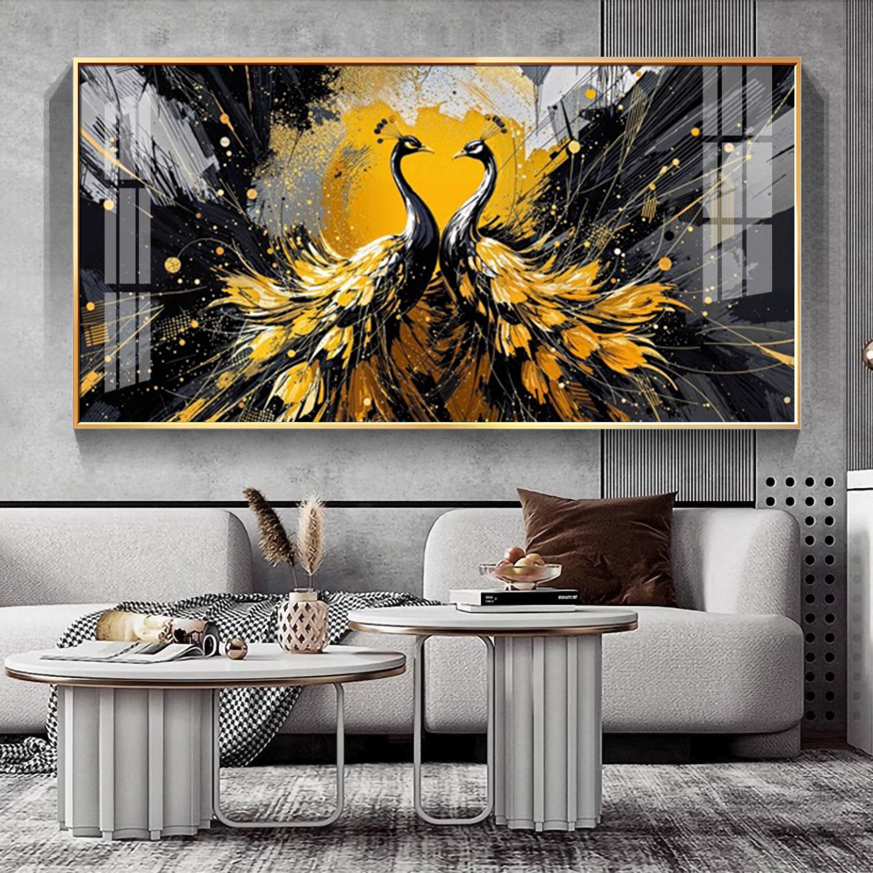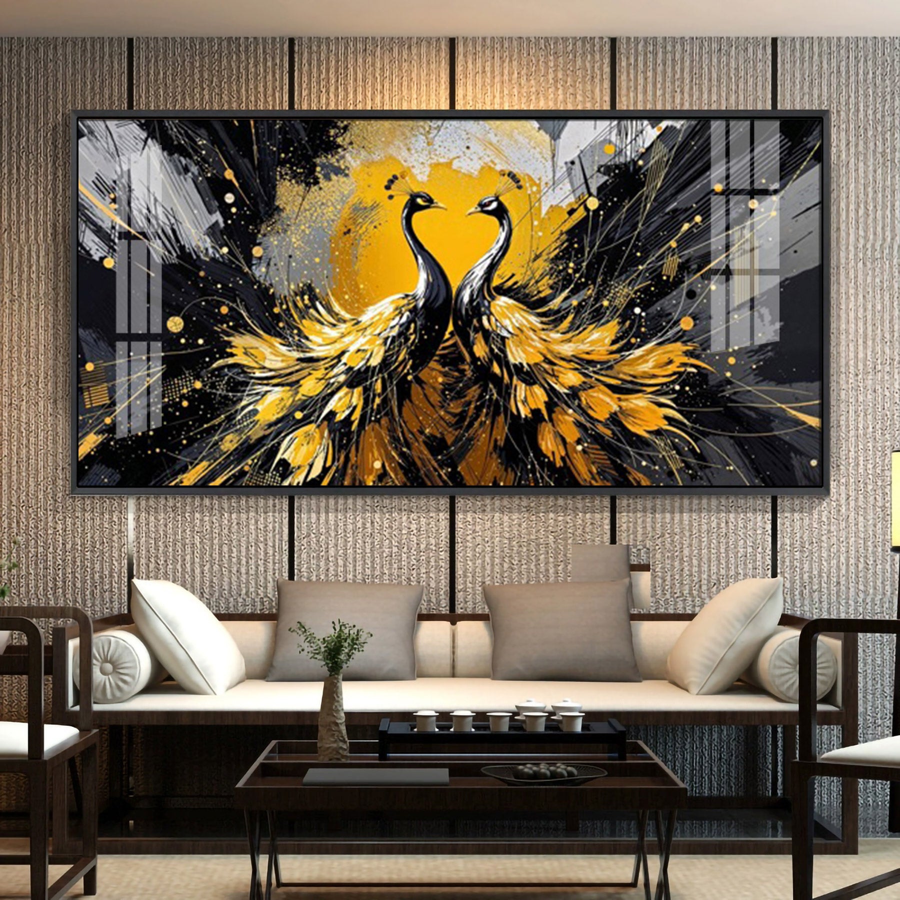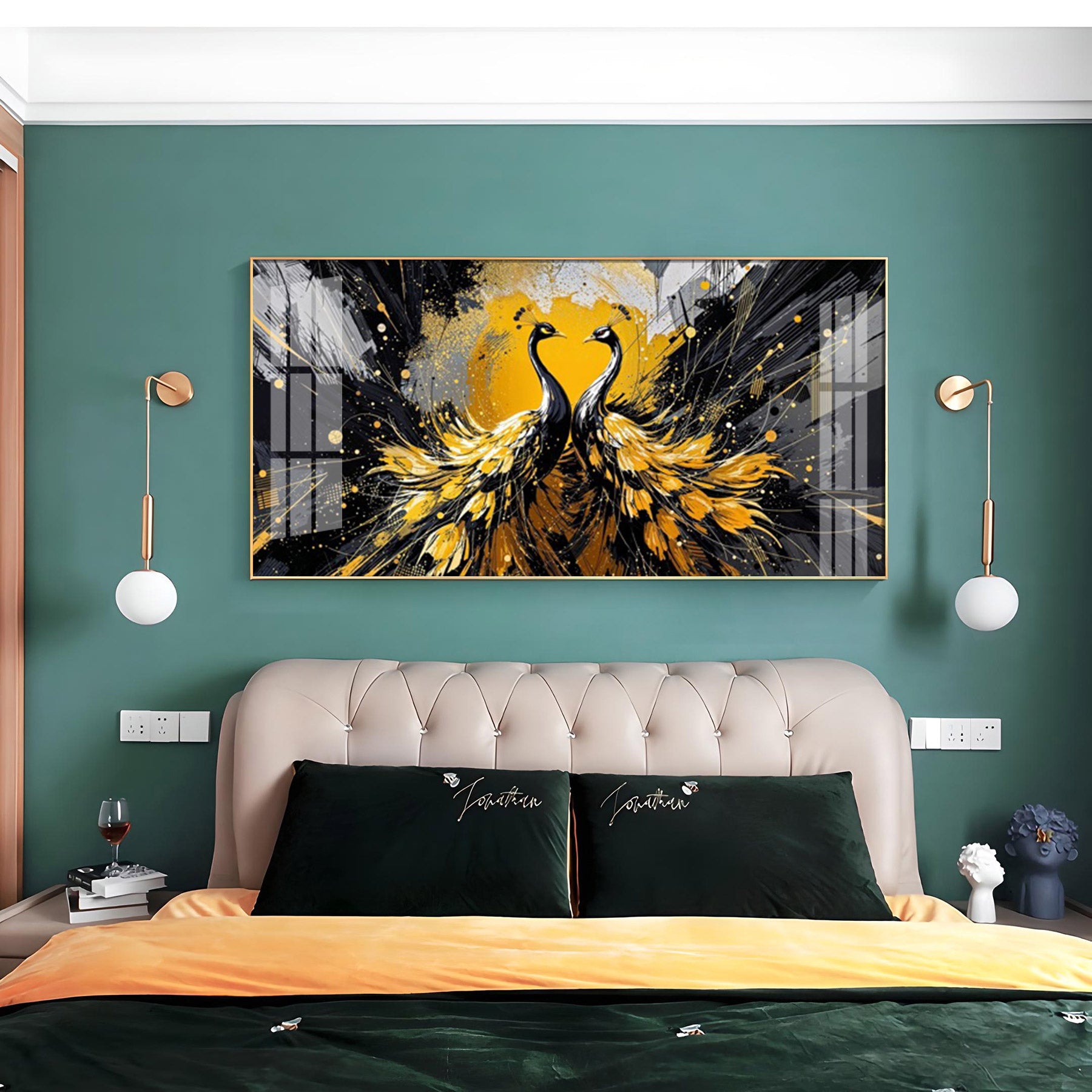 Beautiful Two Mayura Glass Finish Horizontal Wall Art