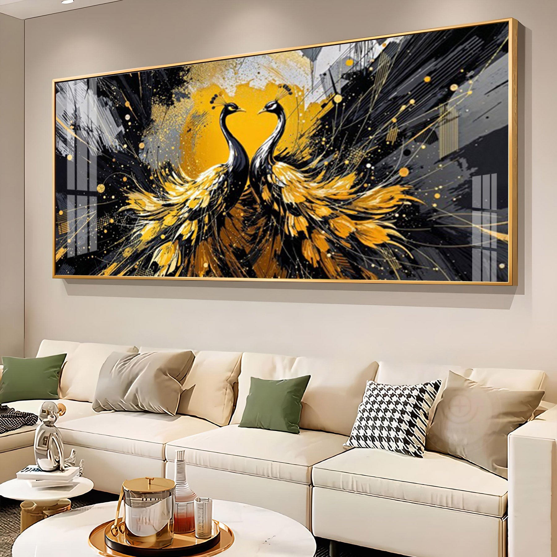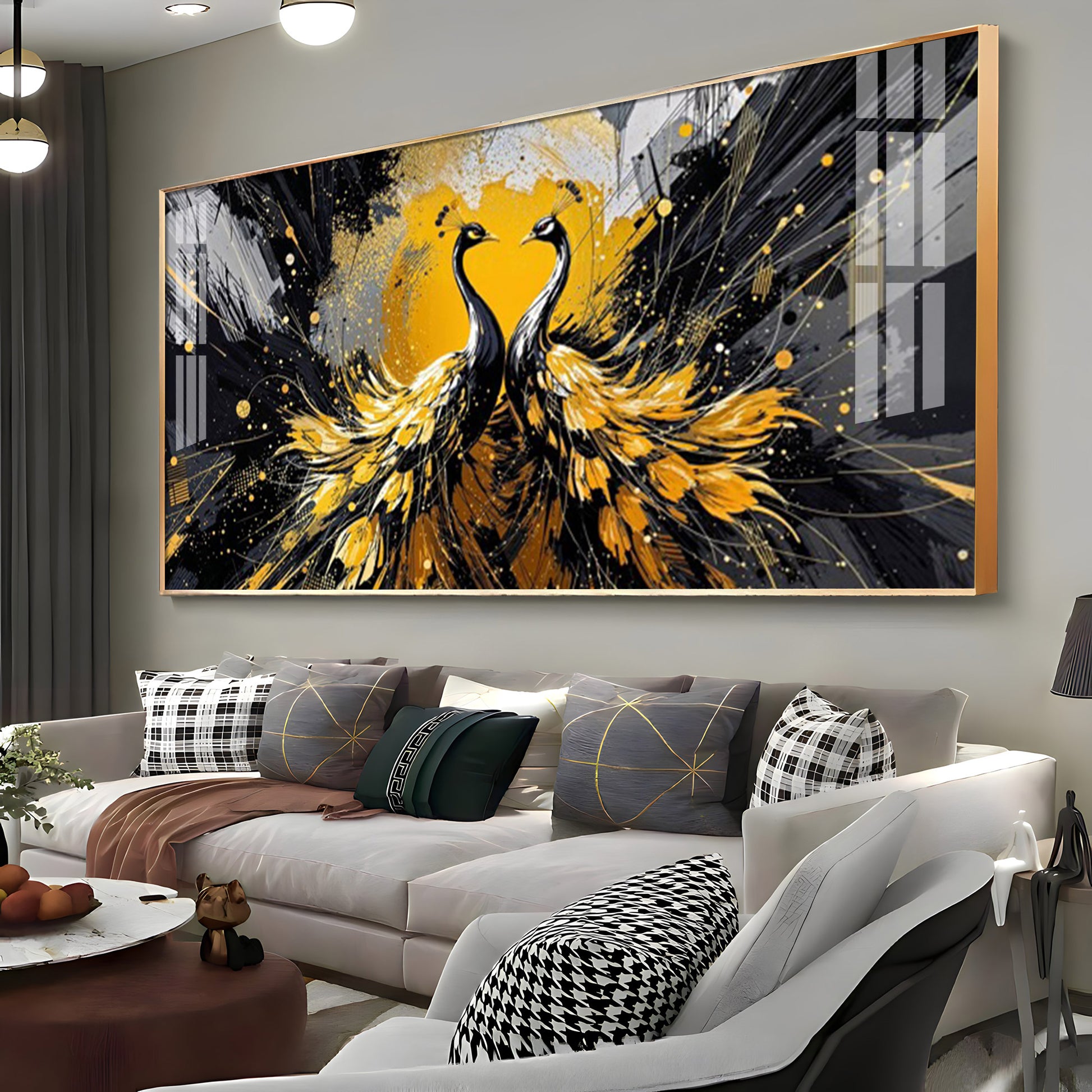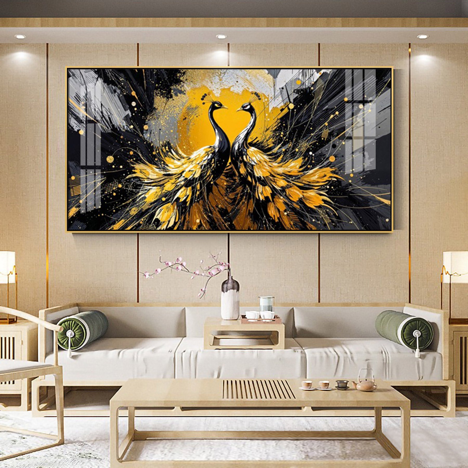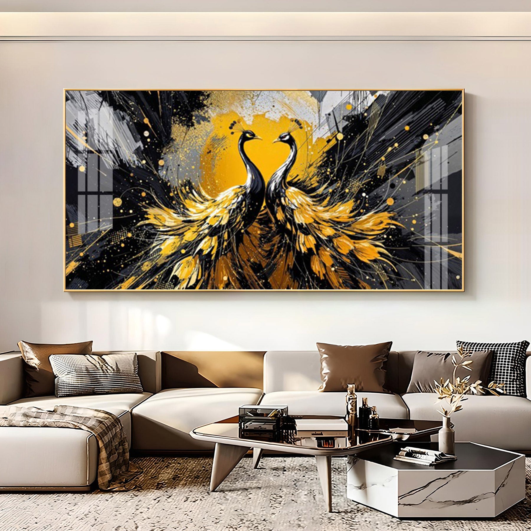Beautiful Two Mayura Glass Finish Horizontal Wall Art
