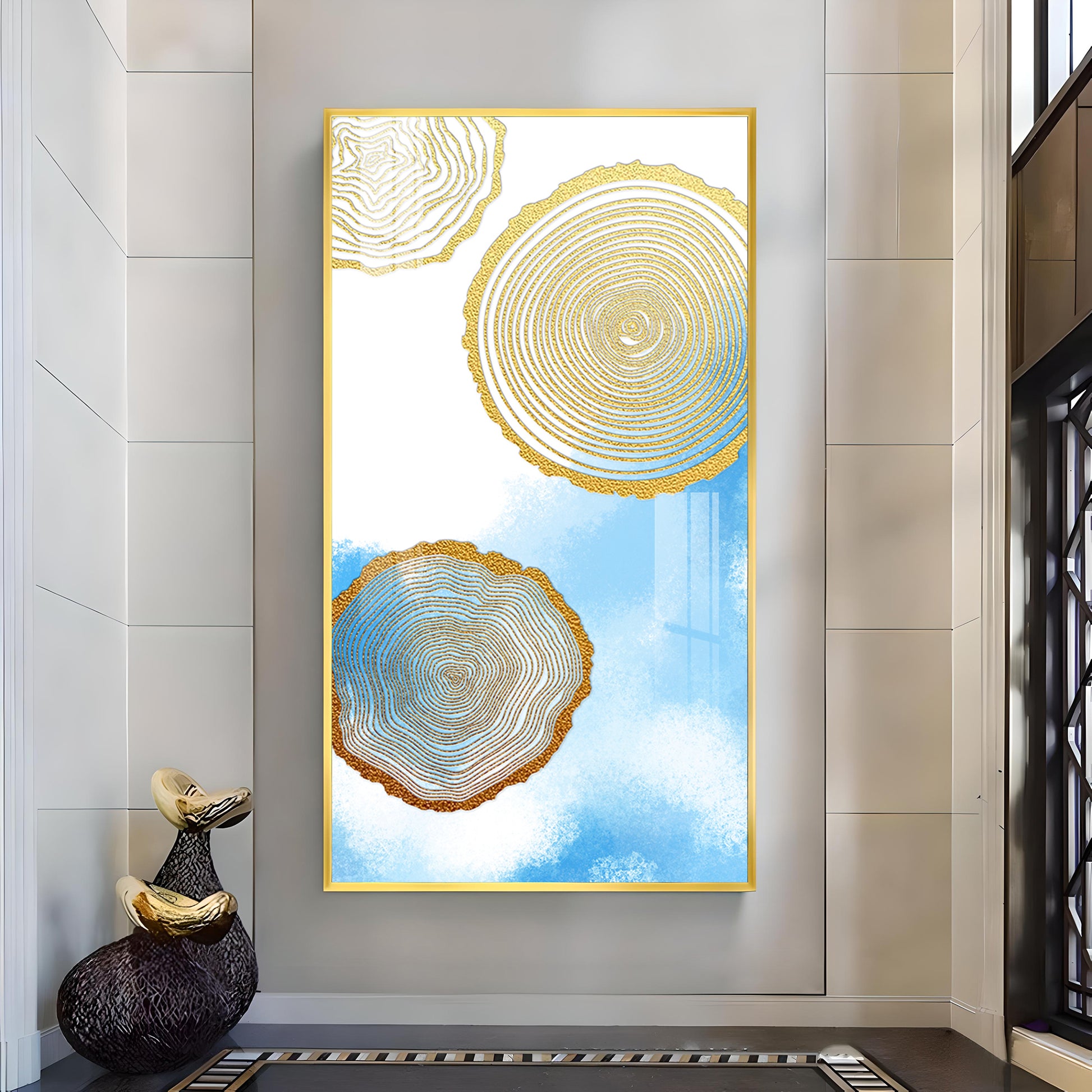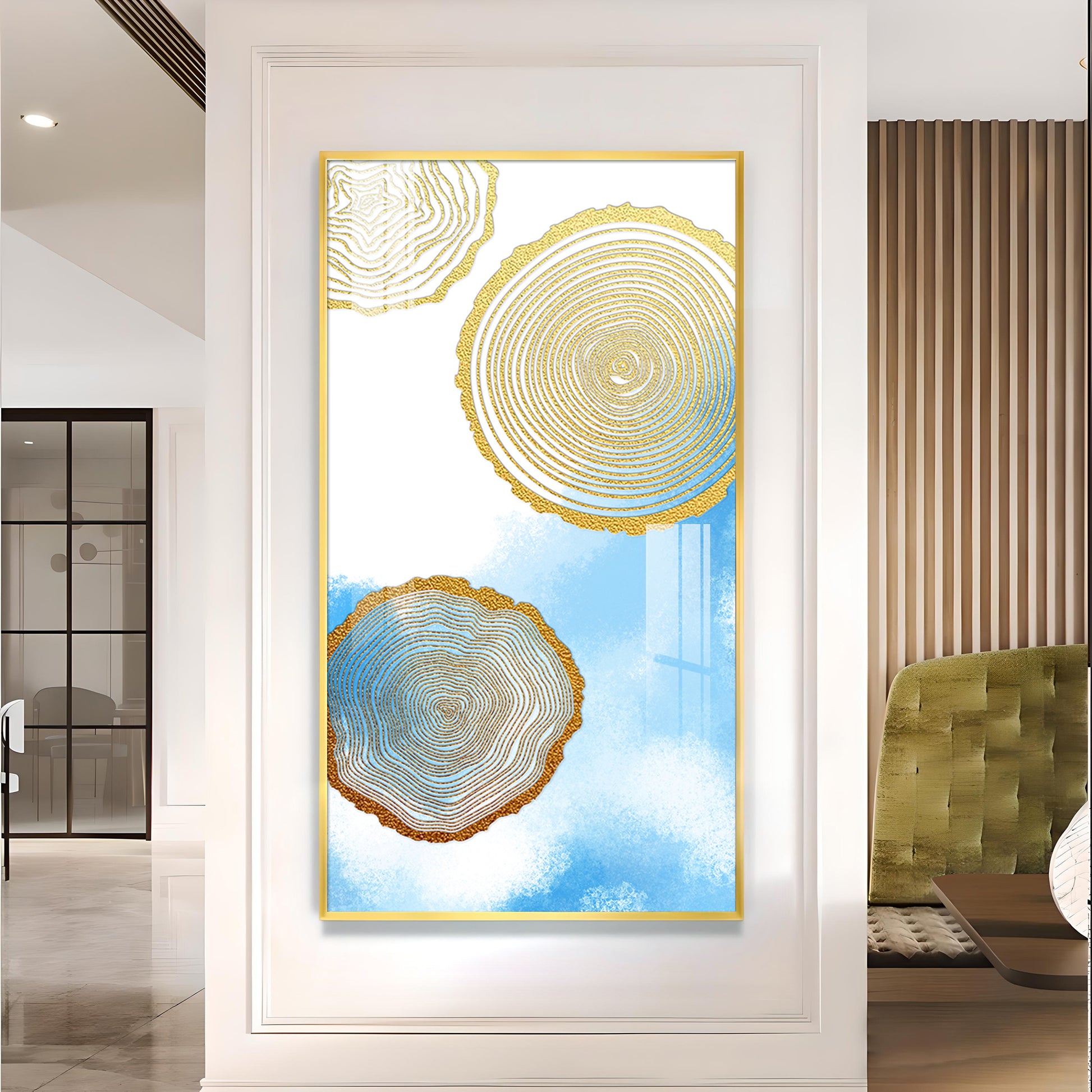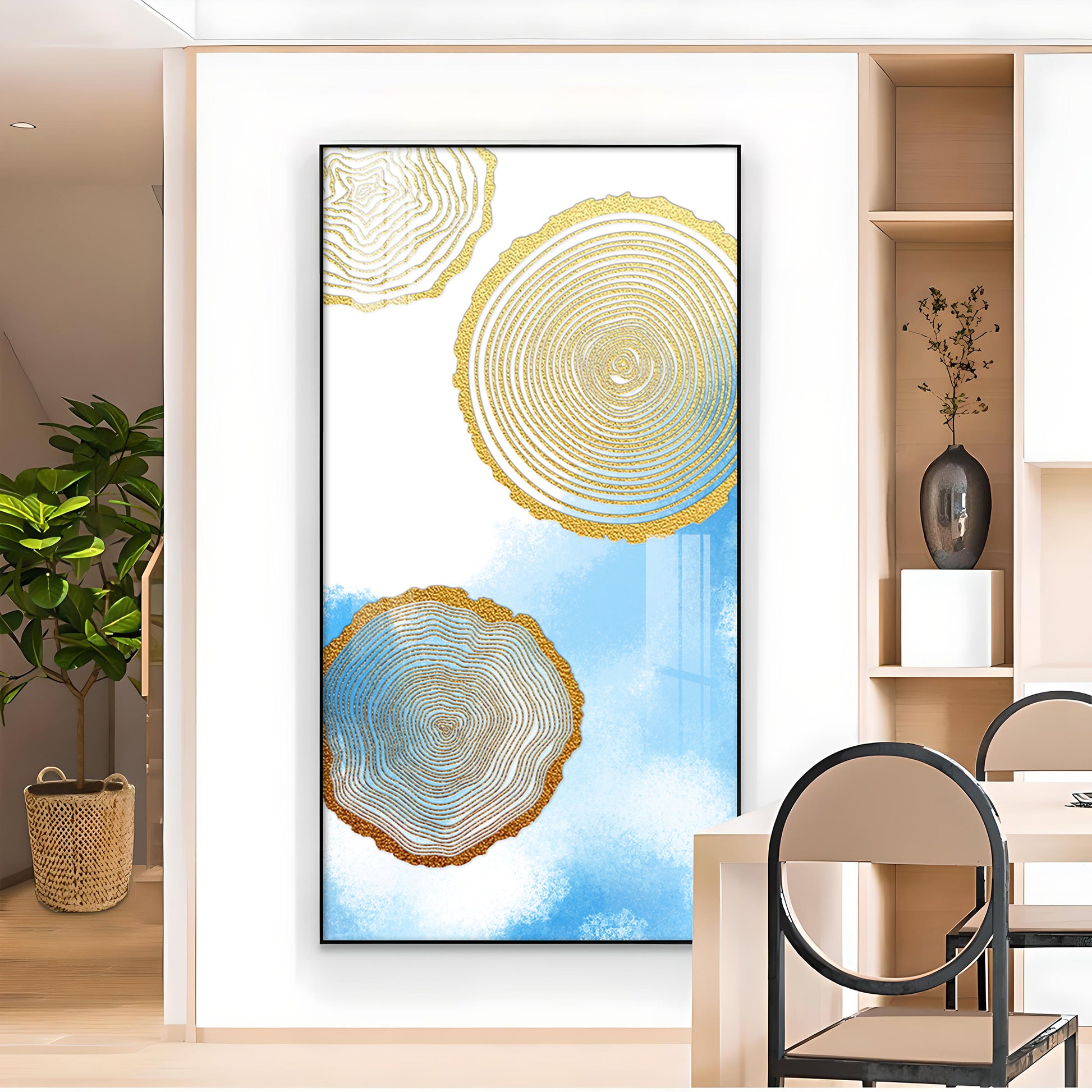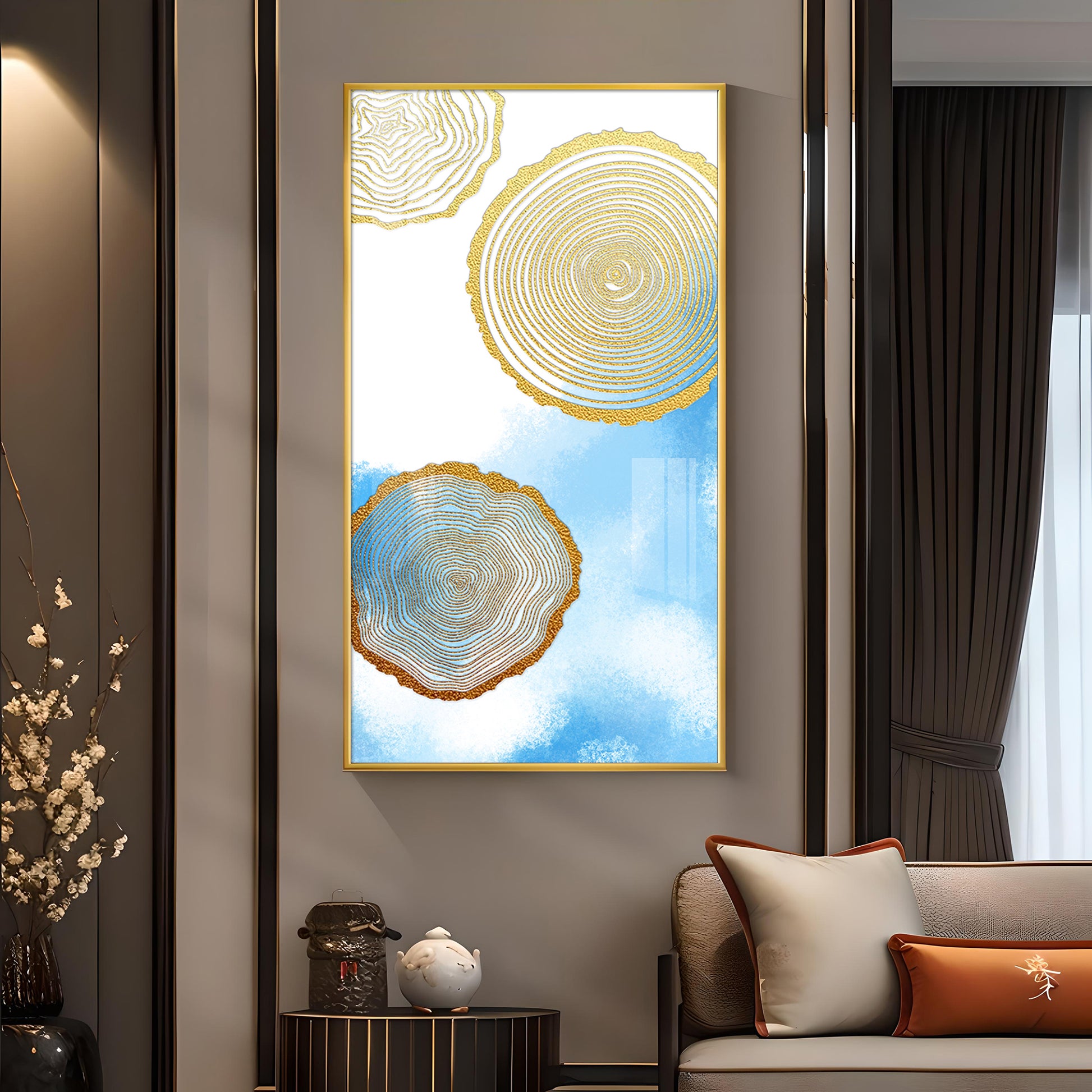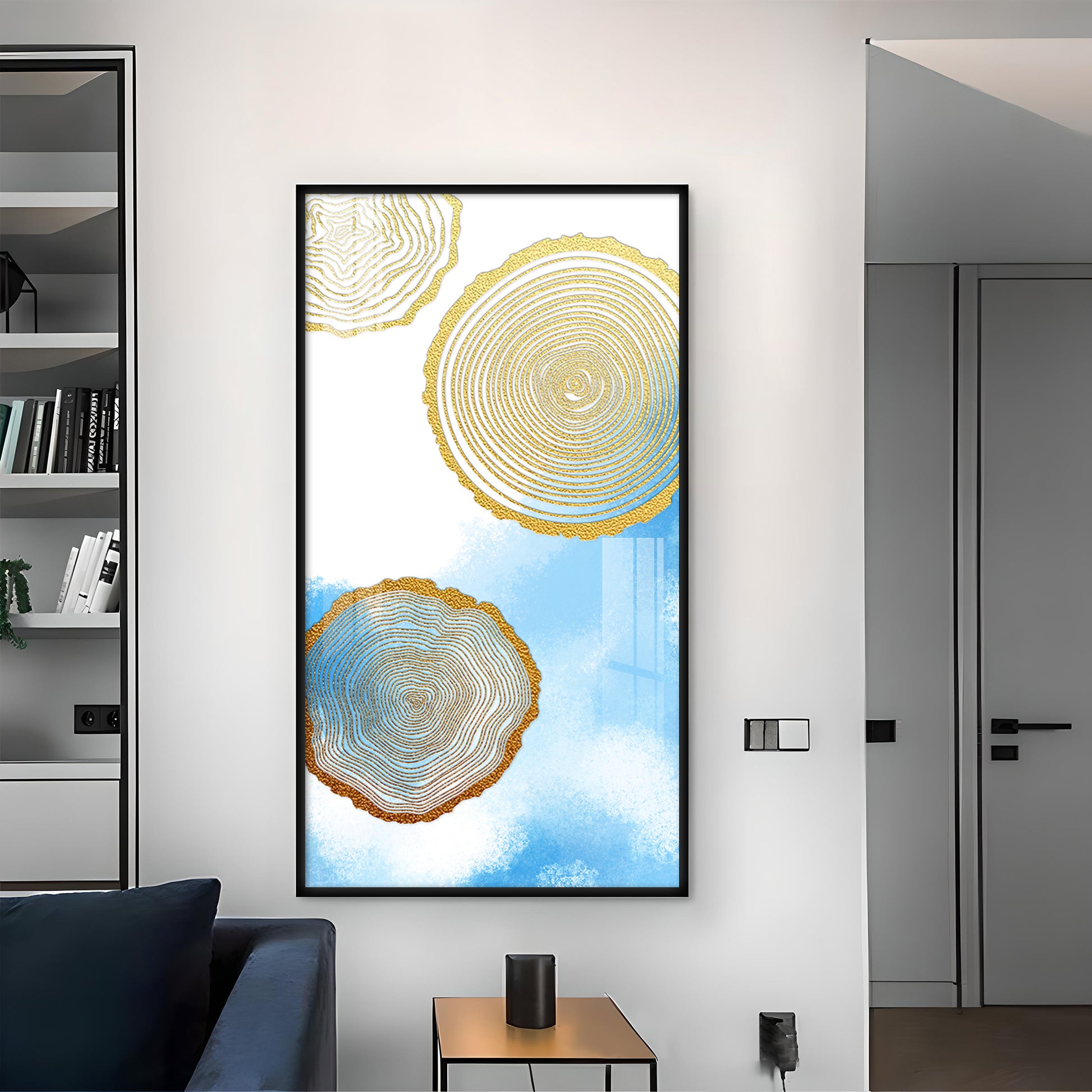 Blue Serenity Rings Glass Finish Vertical Wall Art