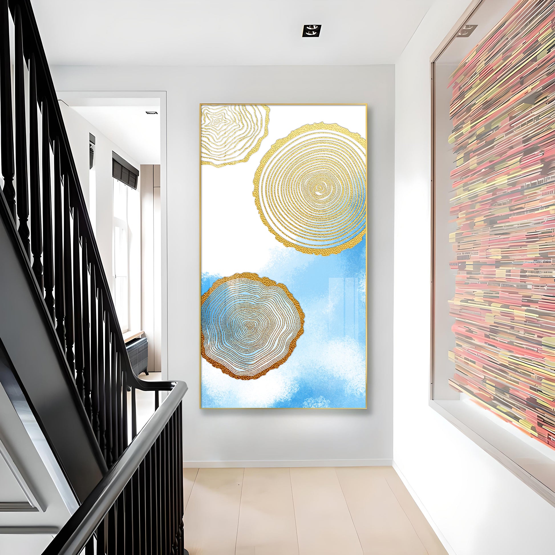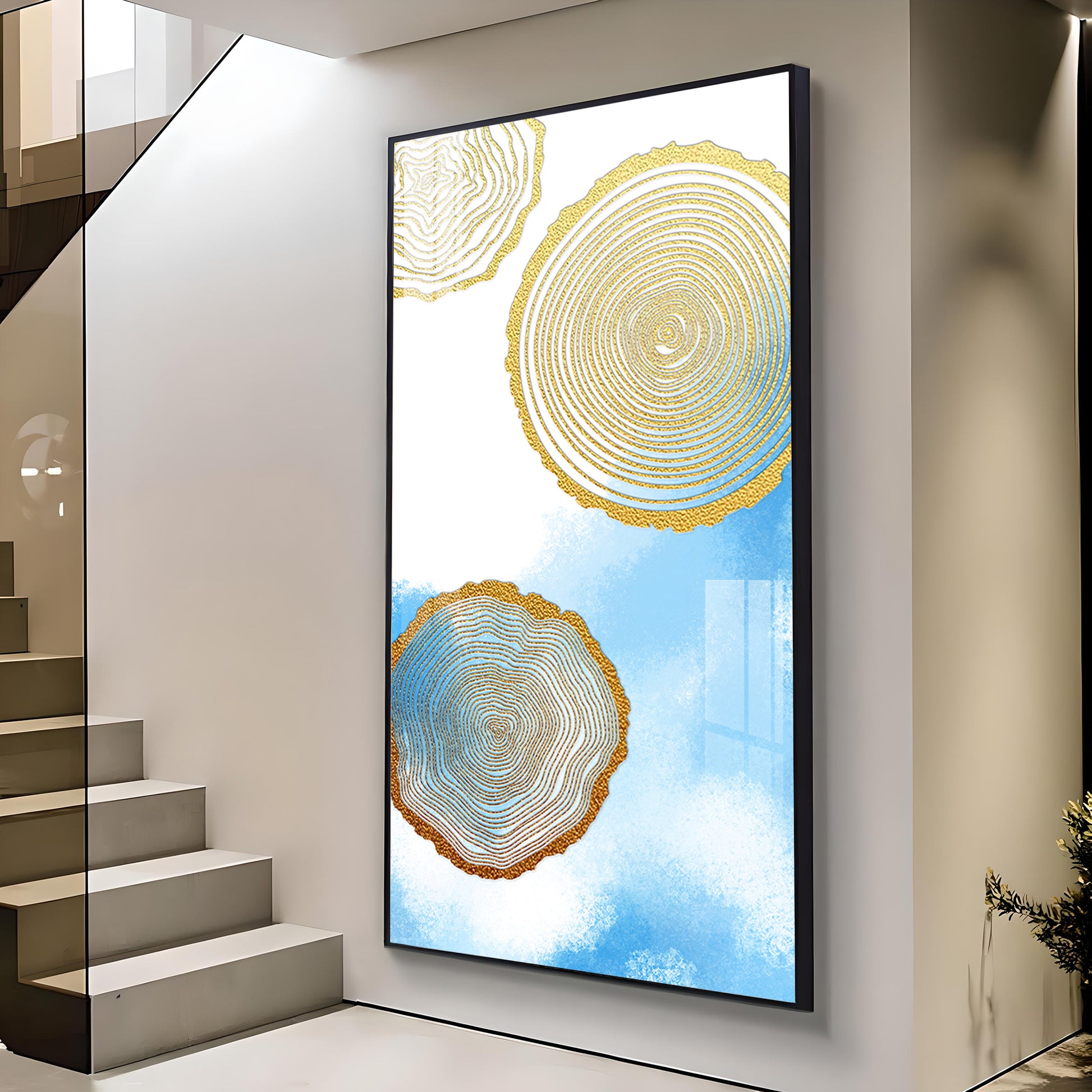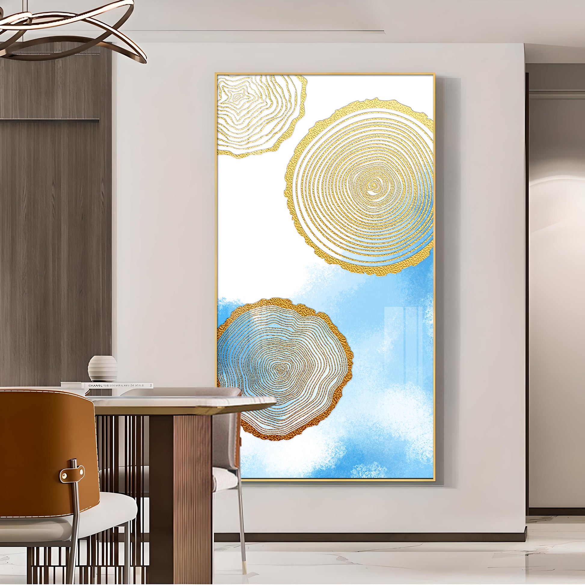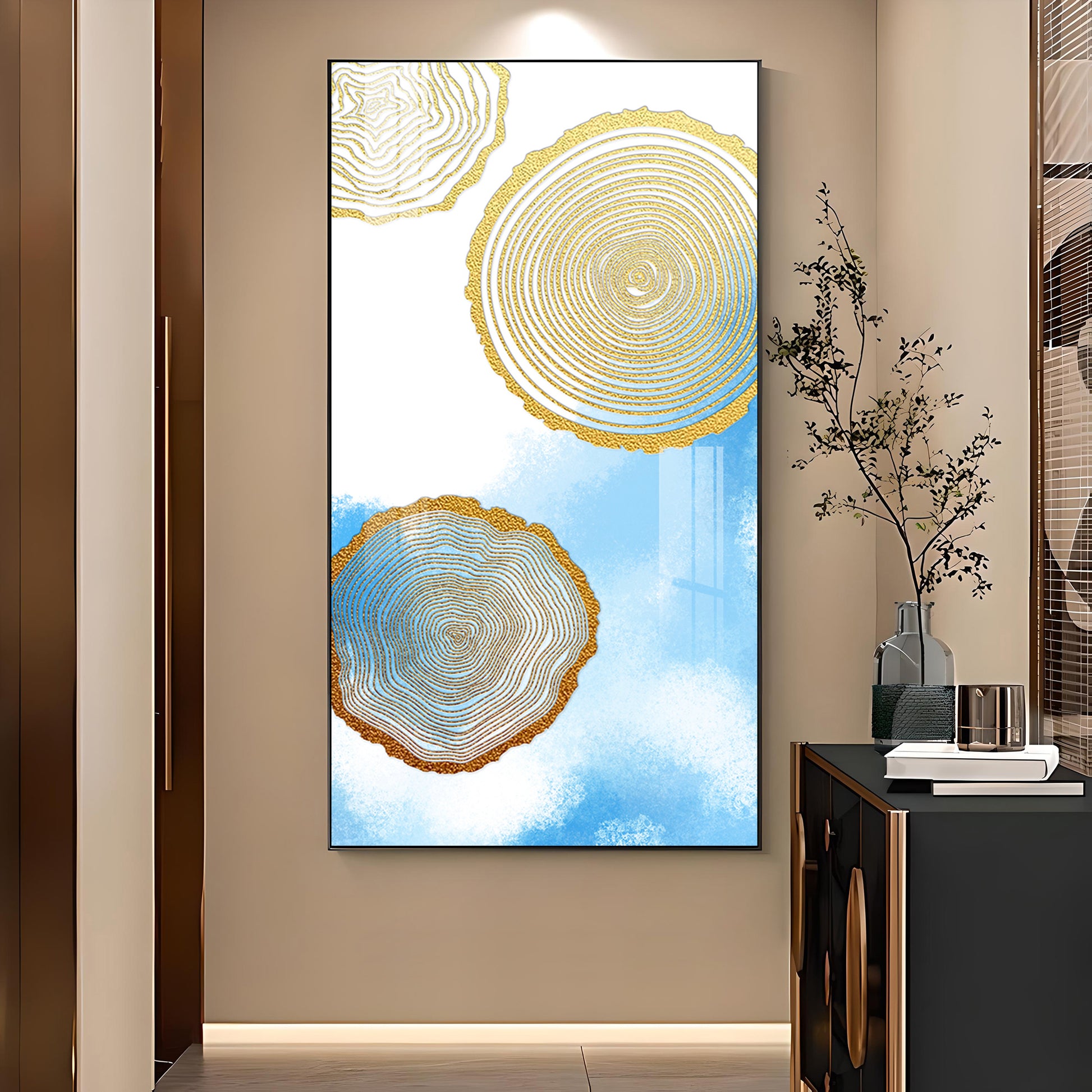 Blue Serenity Rings Glass Finish Vertical Wall Art