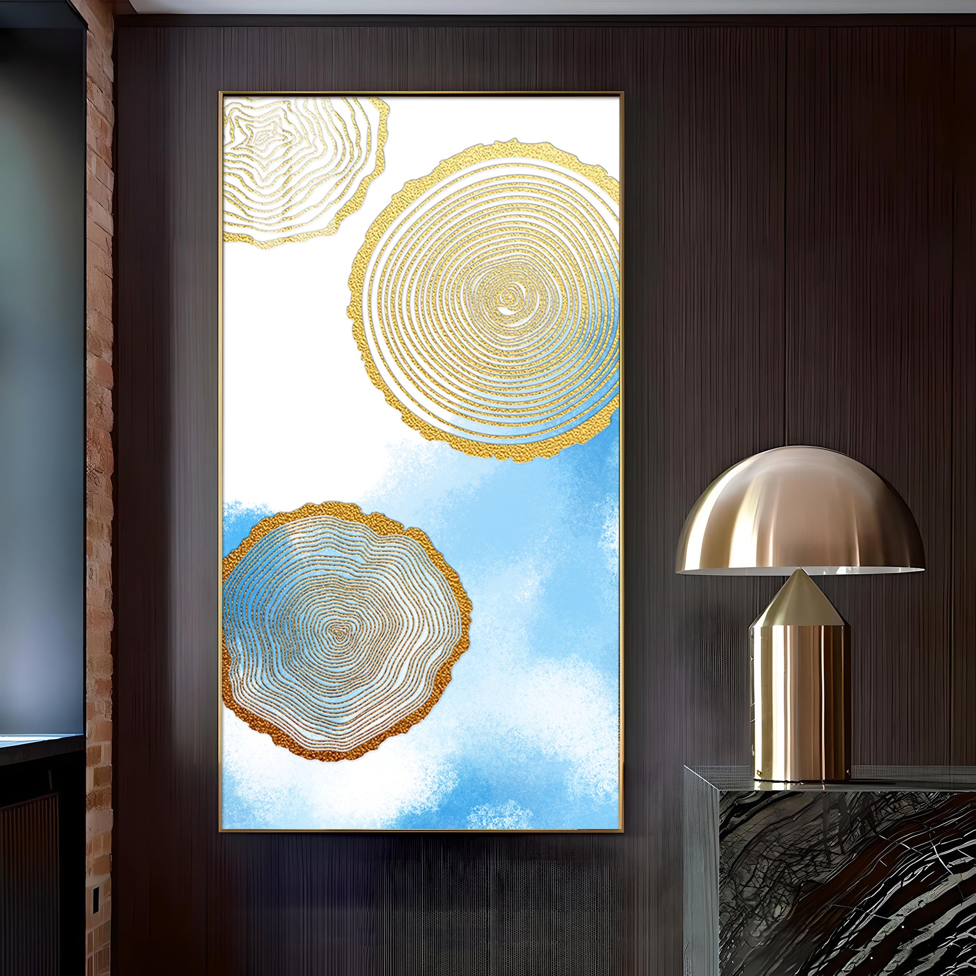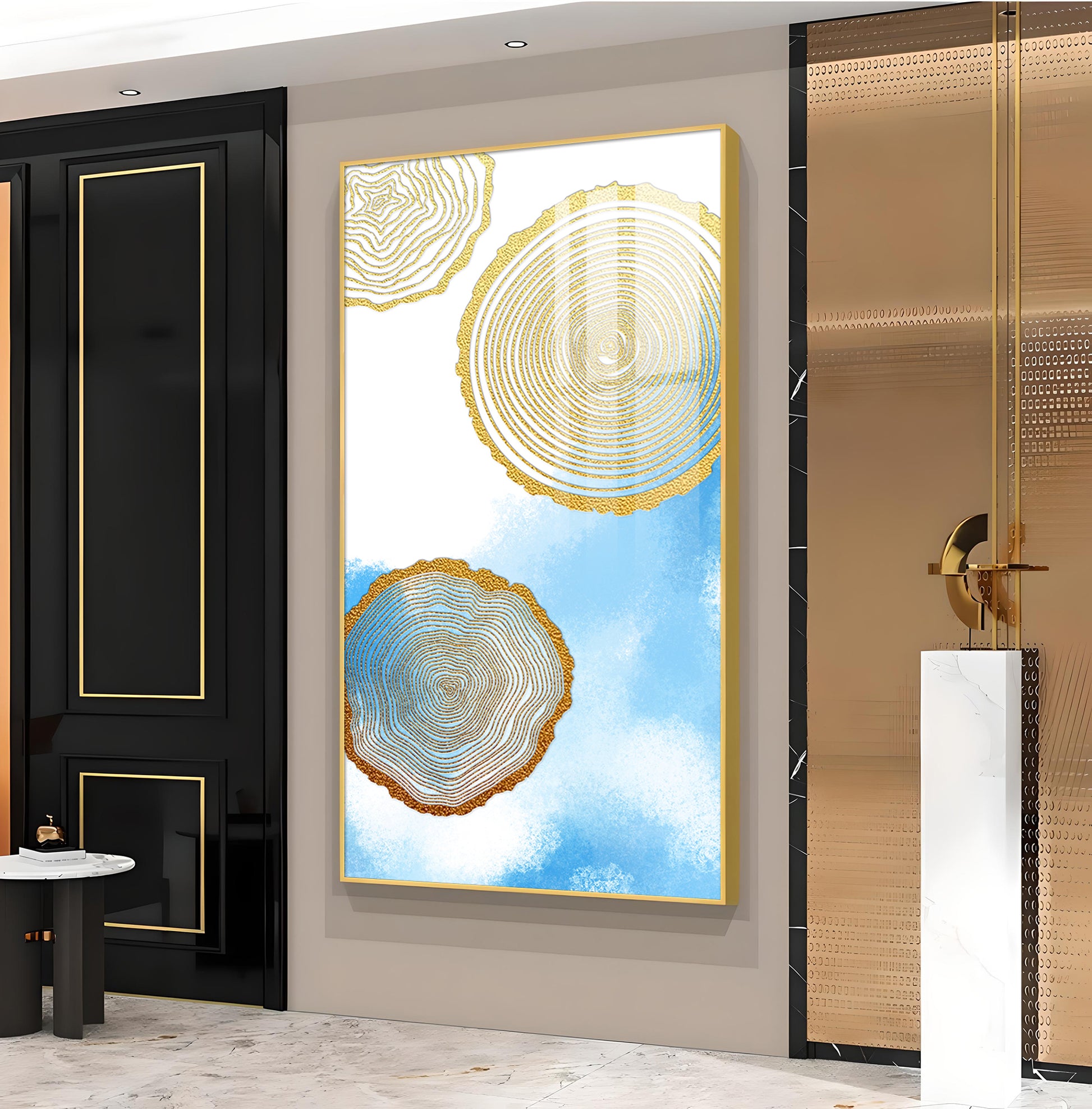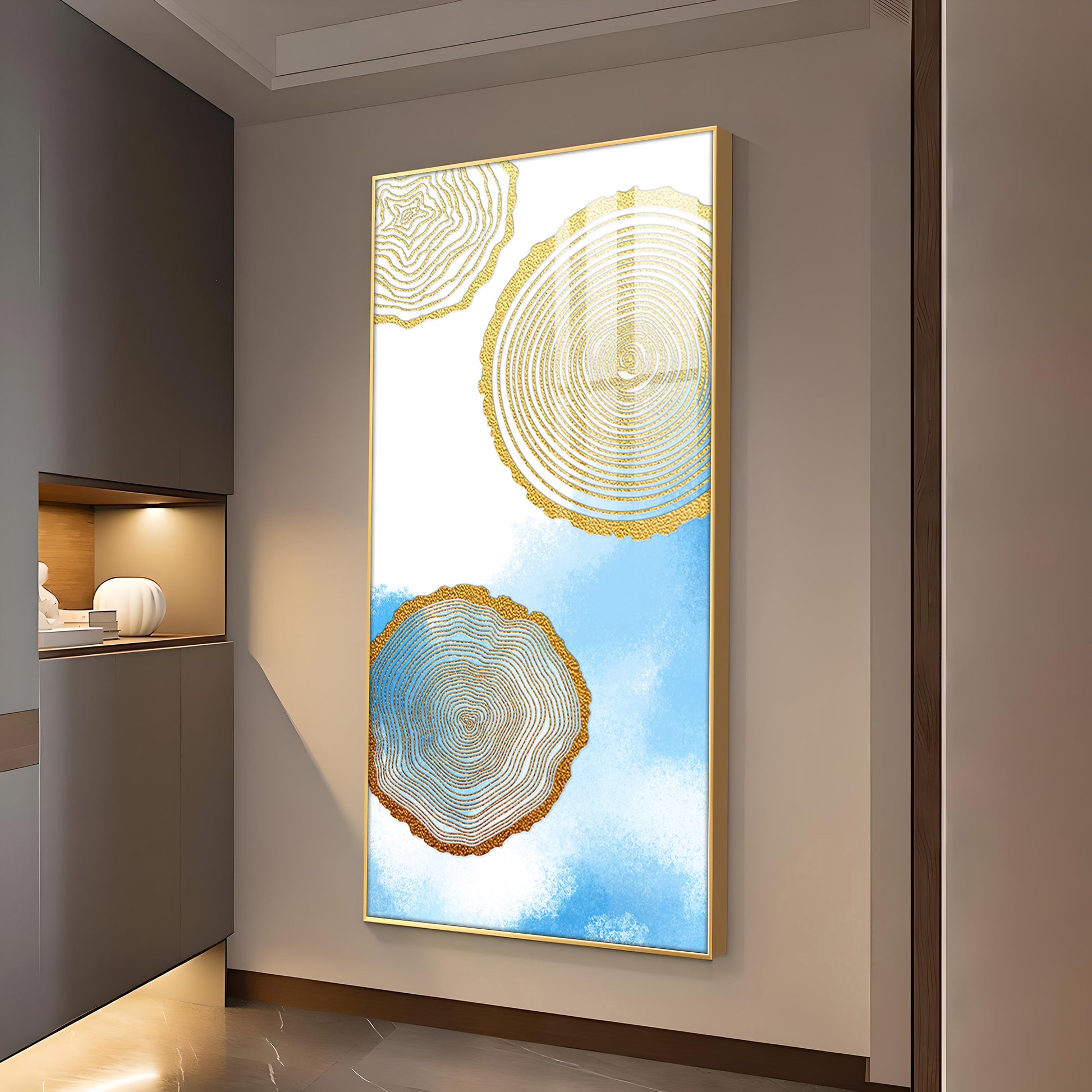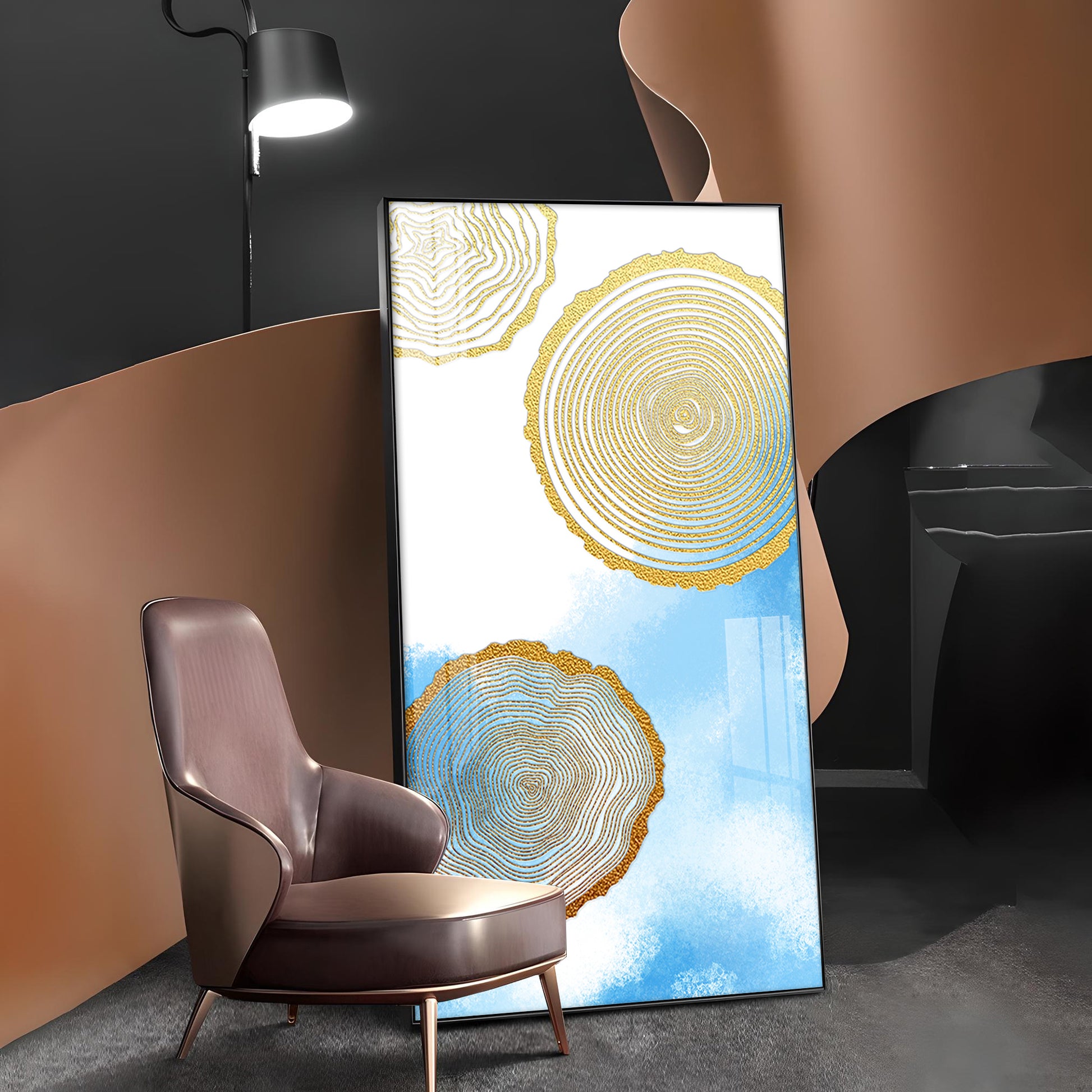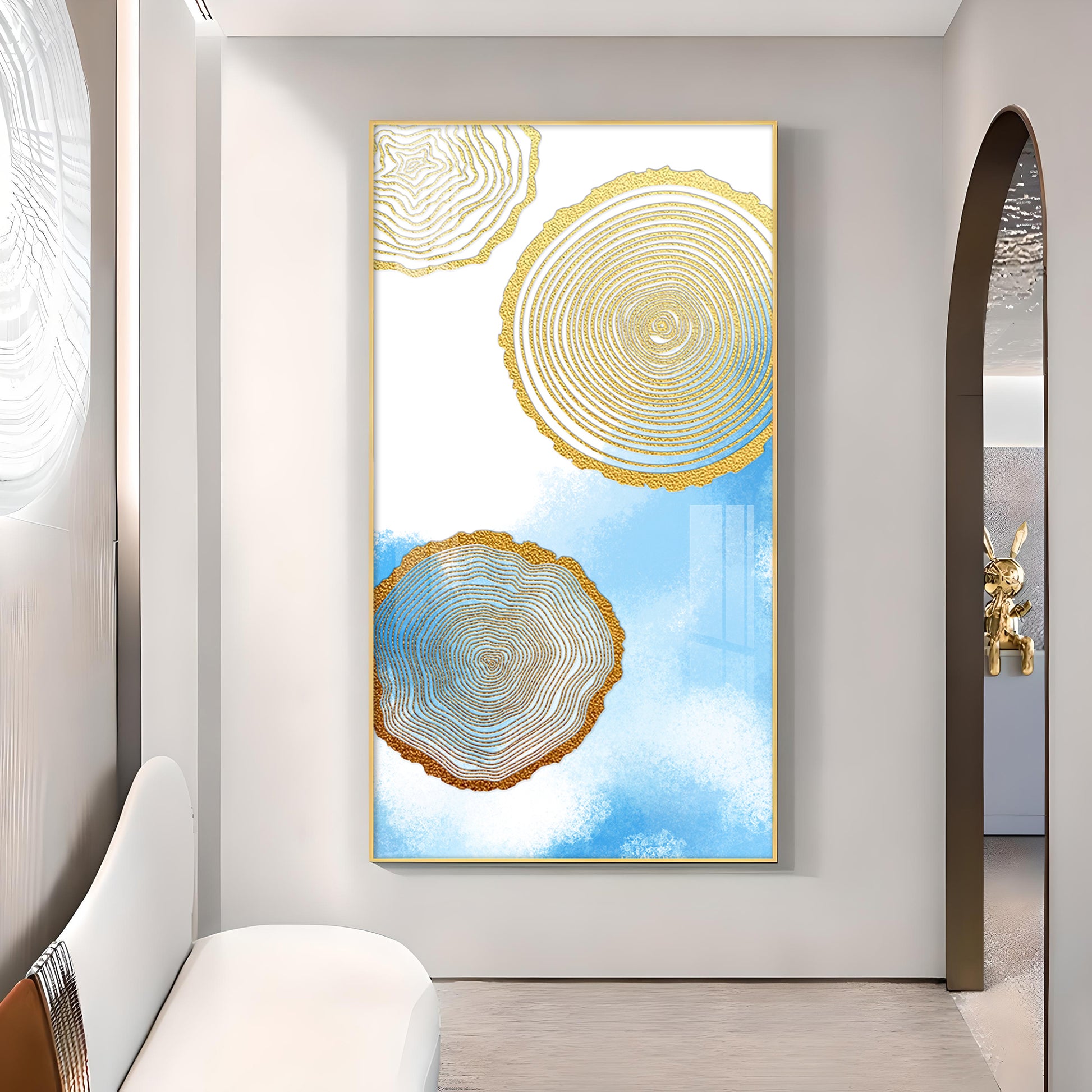 Blue Serenity Rings Glass Finish Vertical Wall Art
