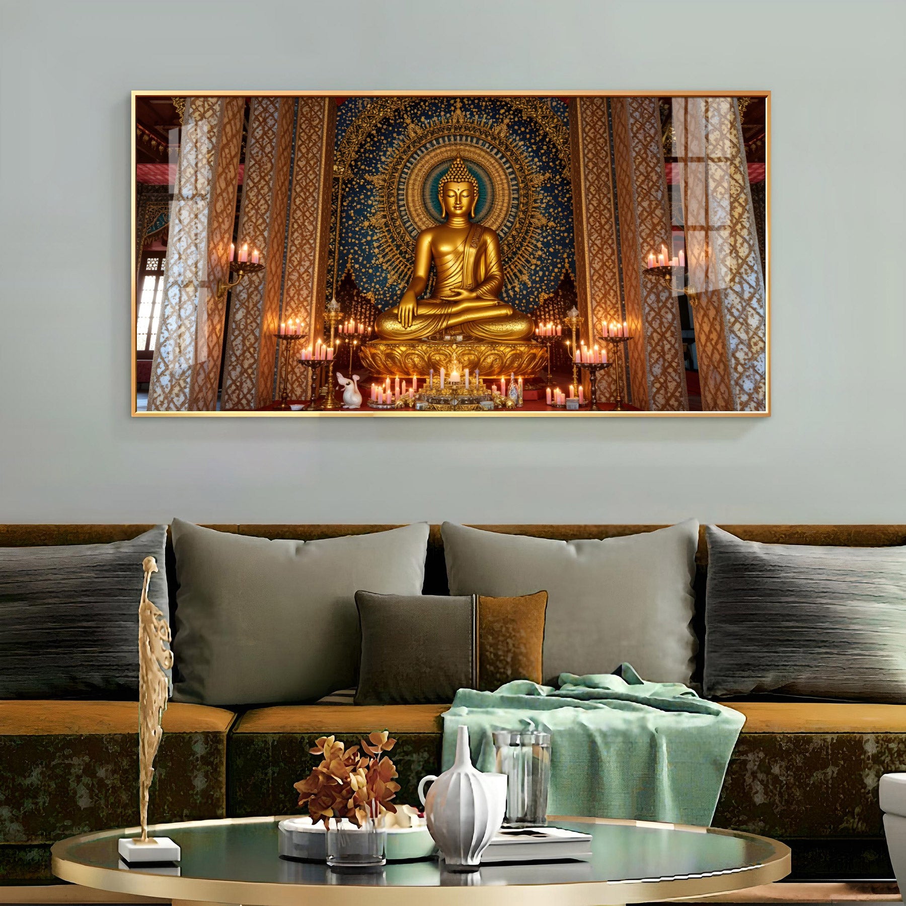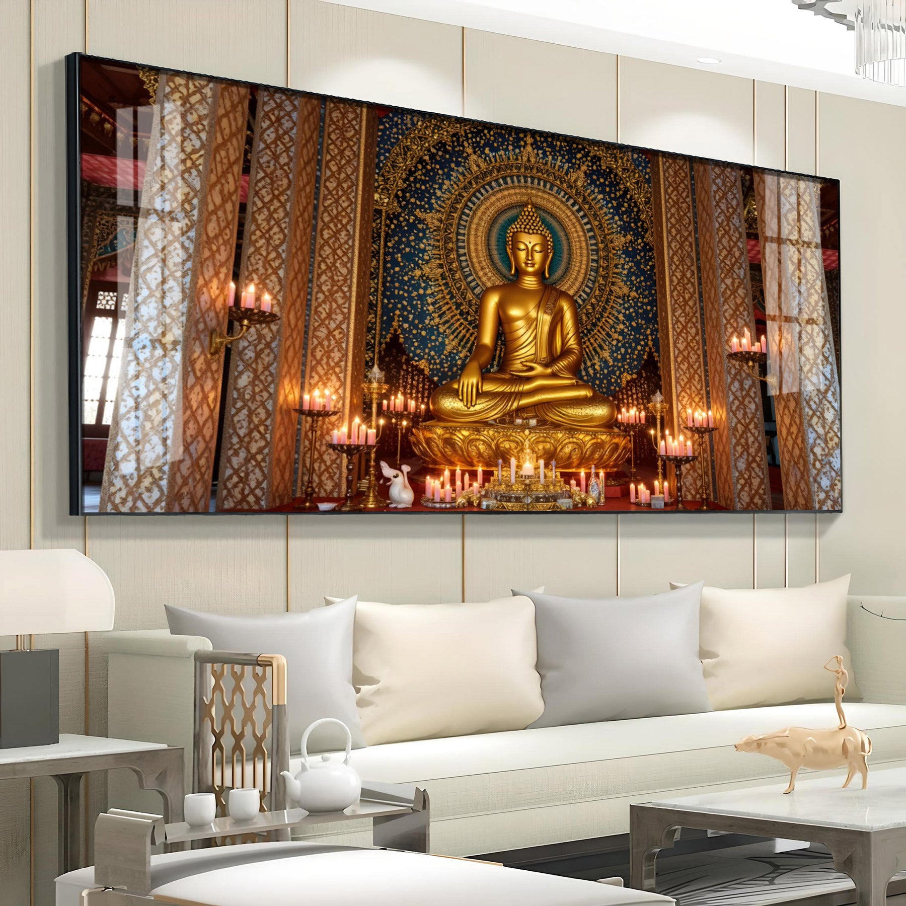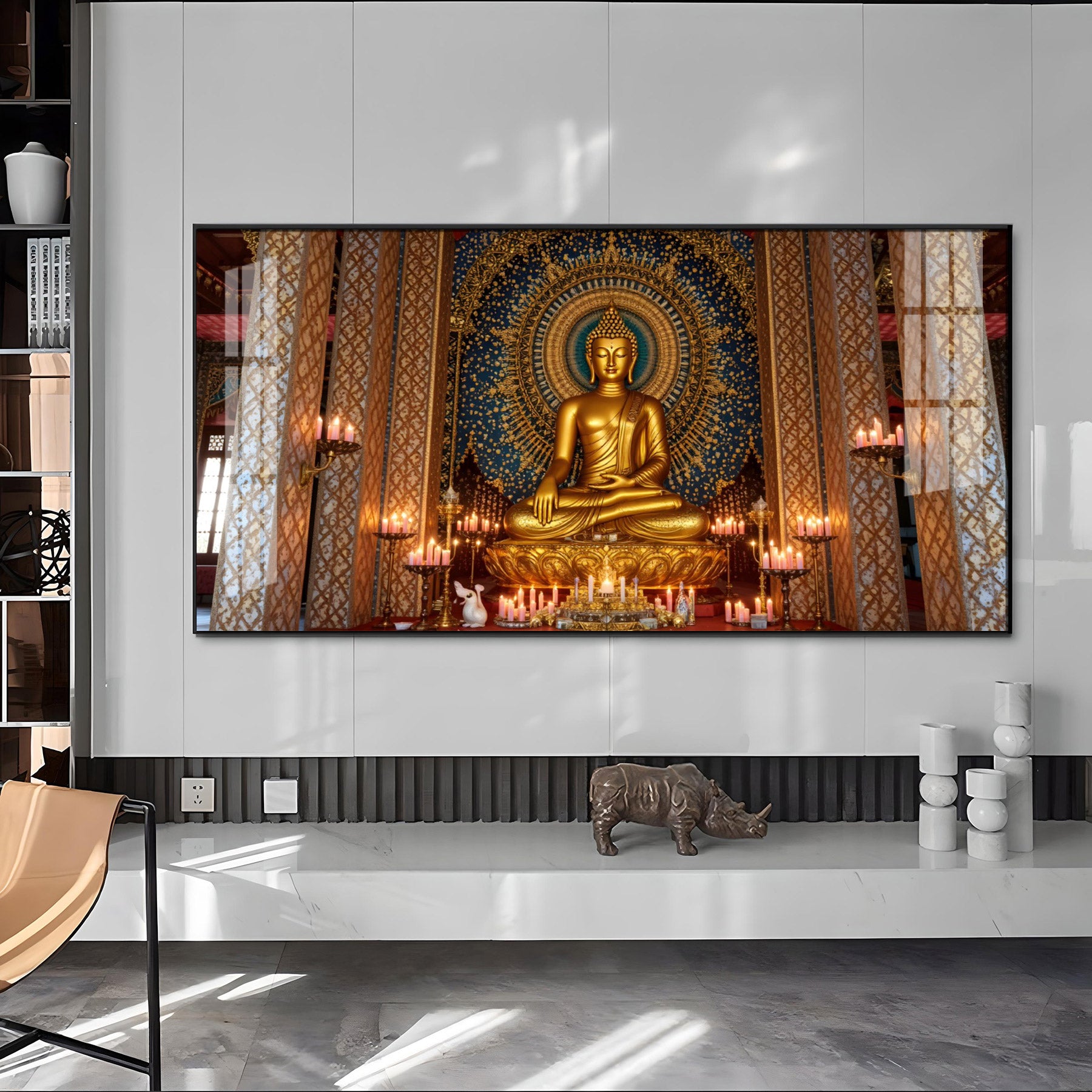 Buddha In Golden Incarnation Glass Finish Horizontal Wall Art