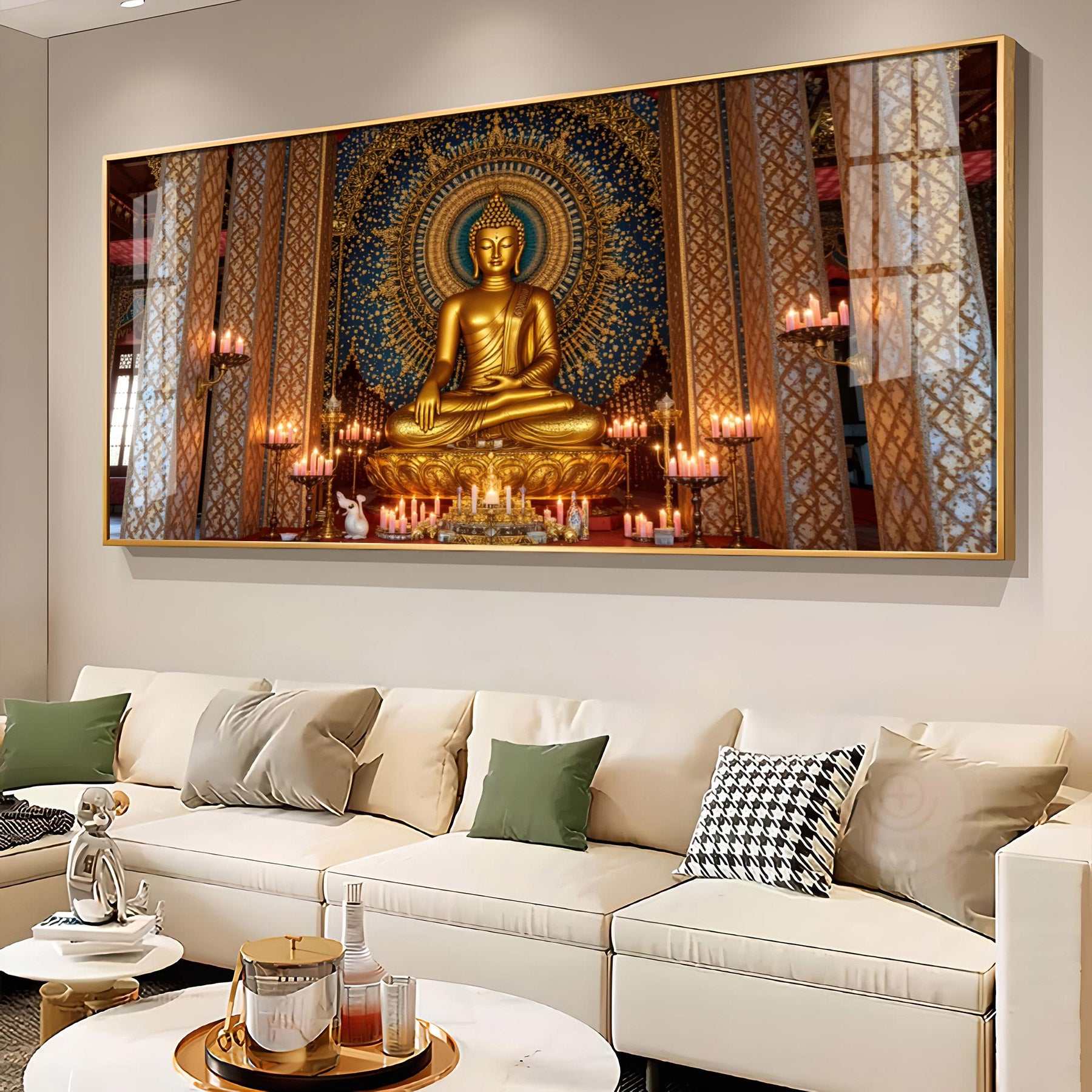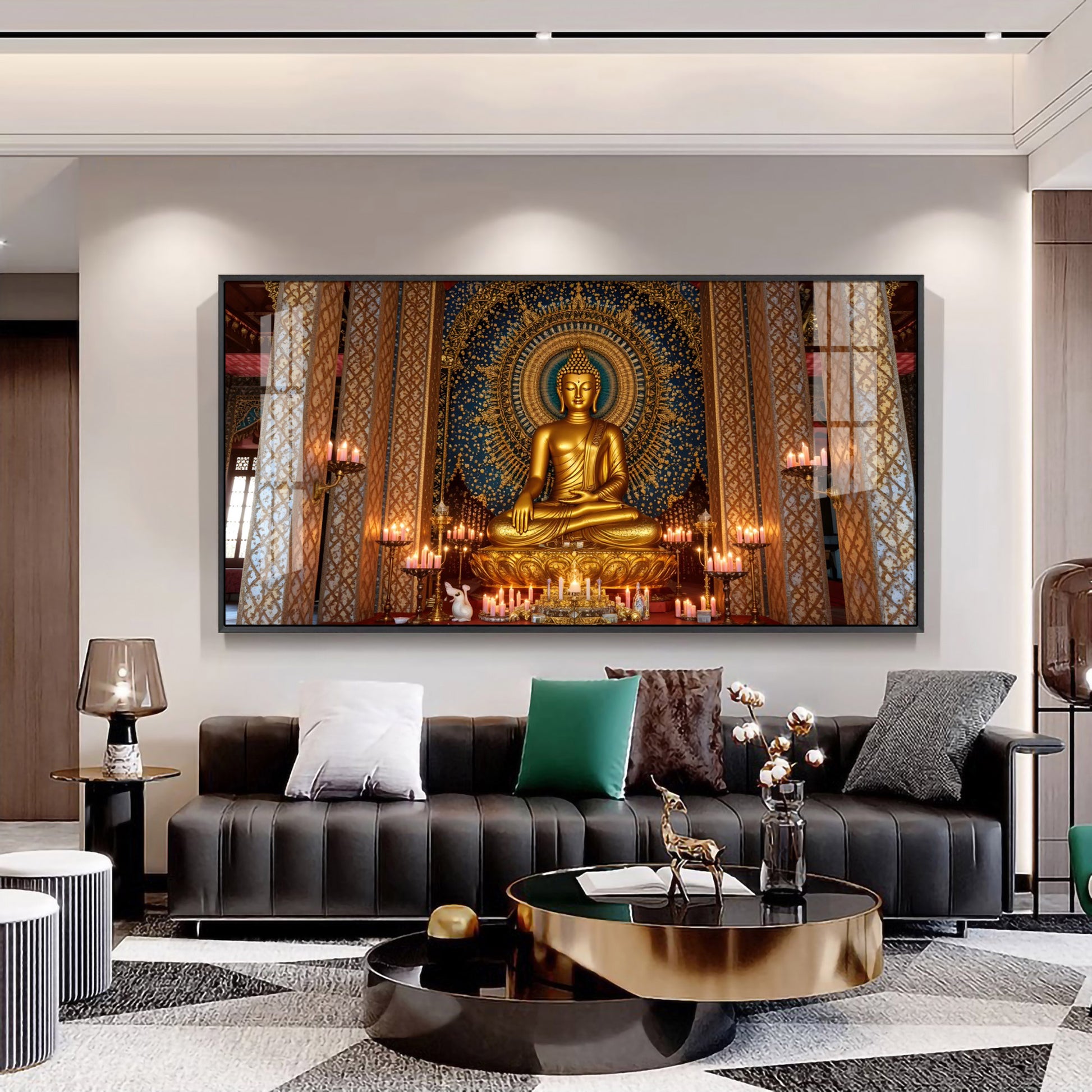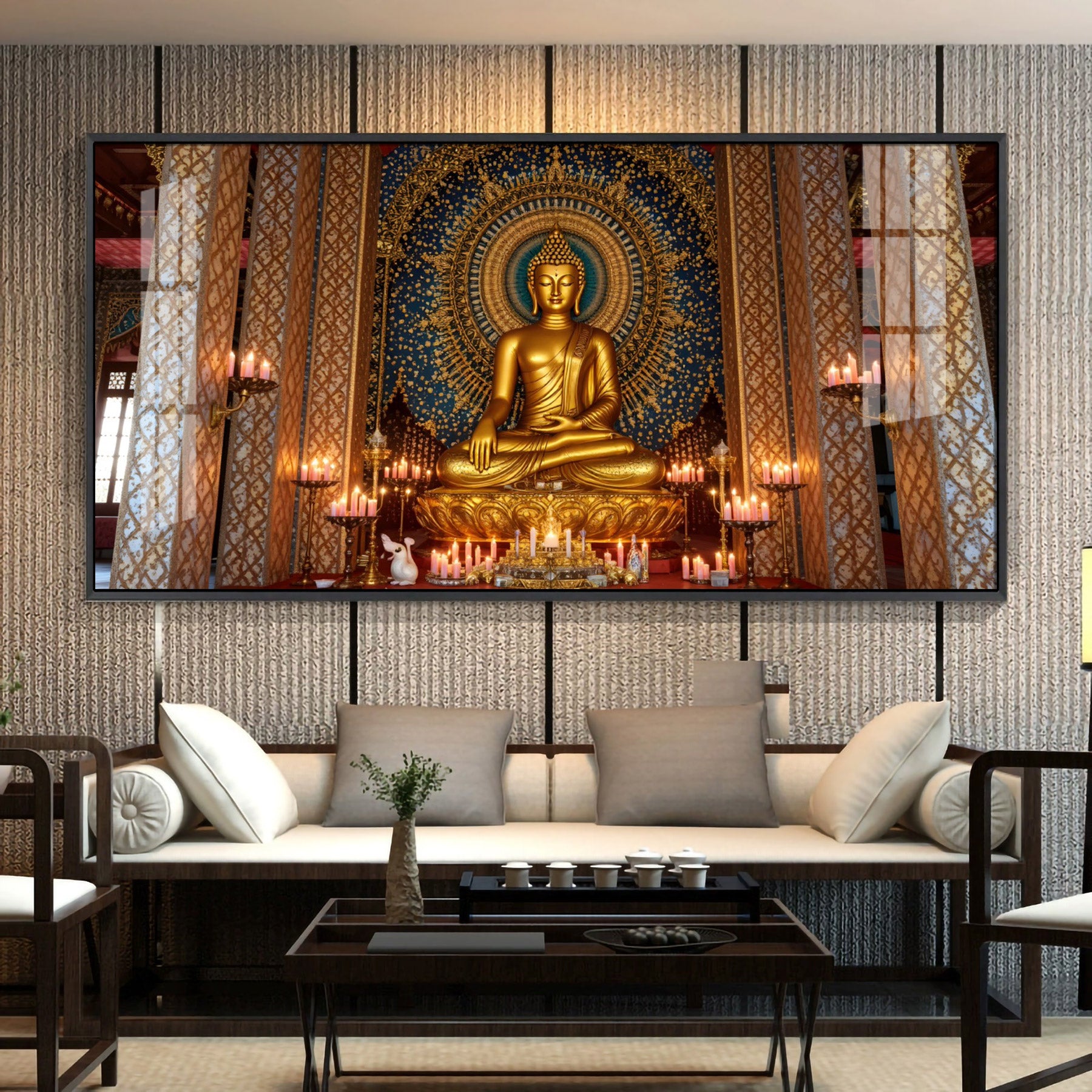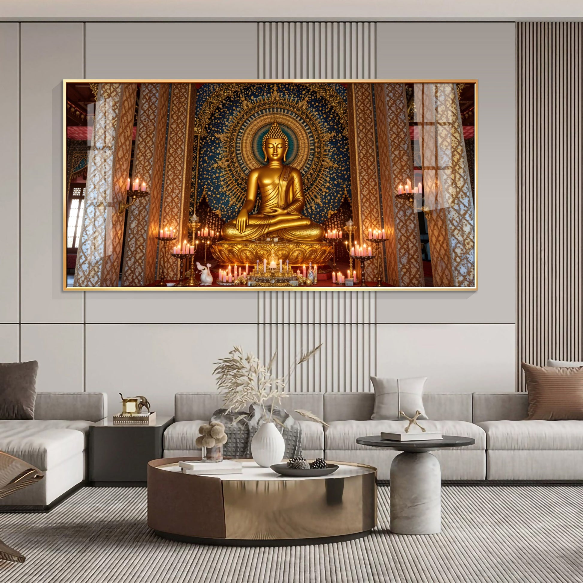 Buddha In Golden Incarnation Glass Finish Horizontal Wall Art