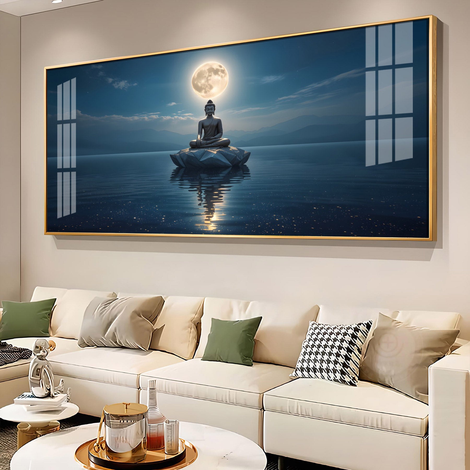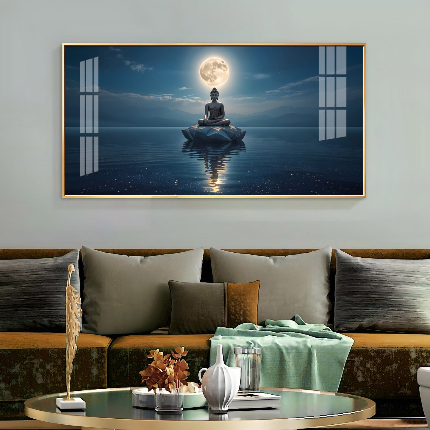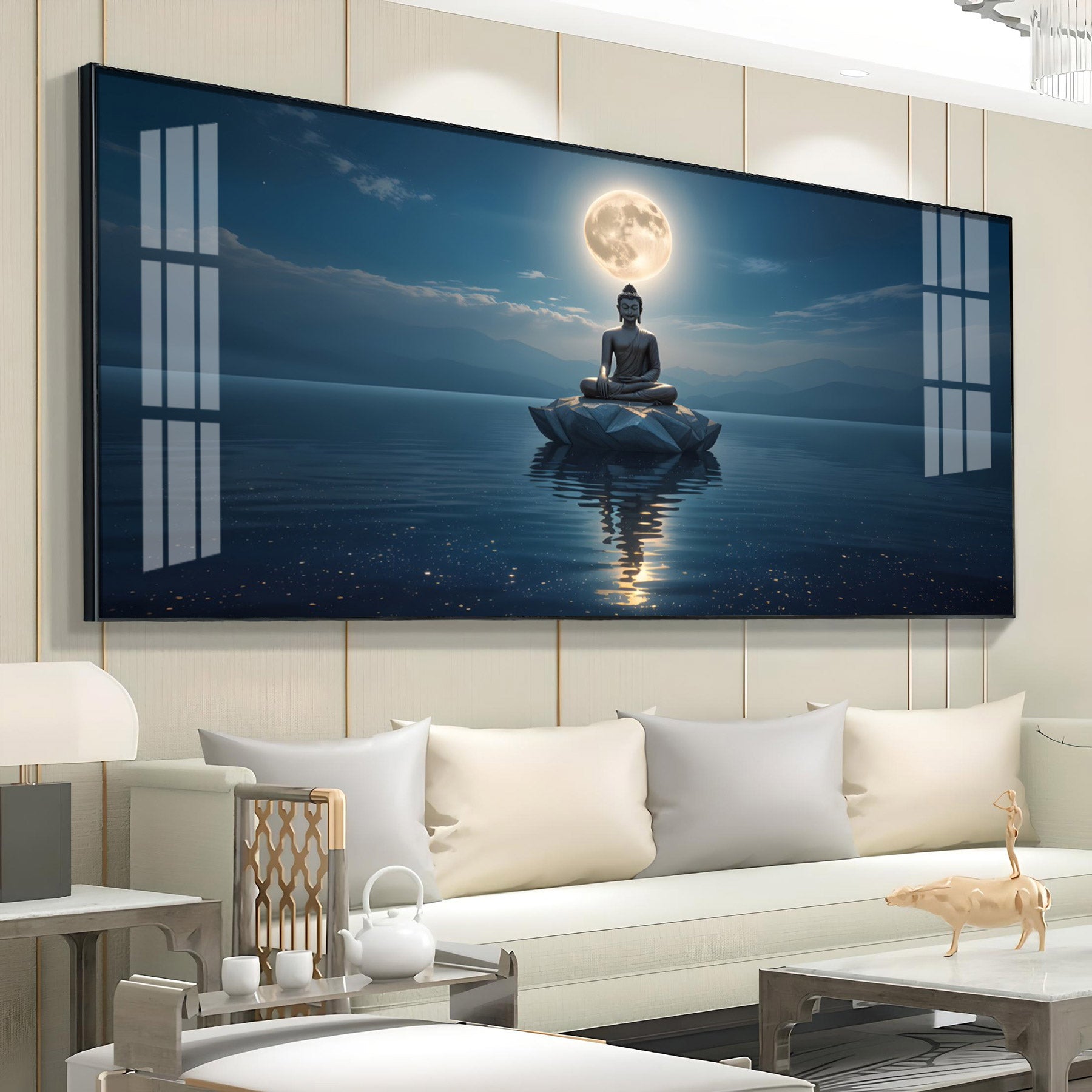 Buddha In Littoral land Glass Finish Horizontal Wall Art