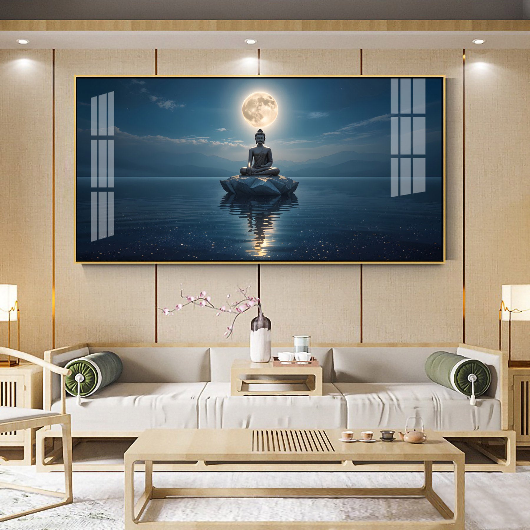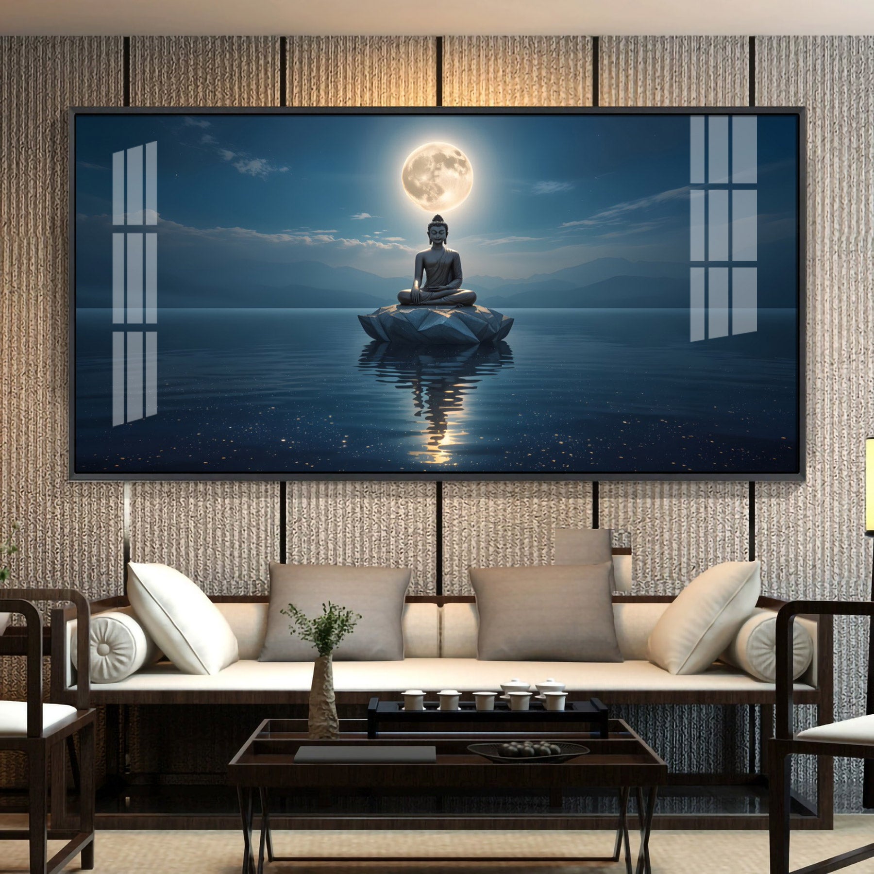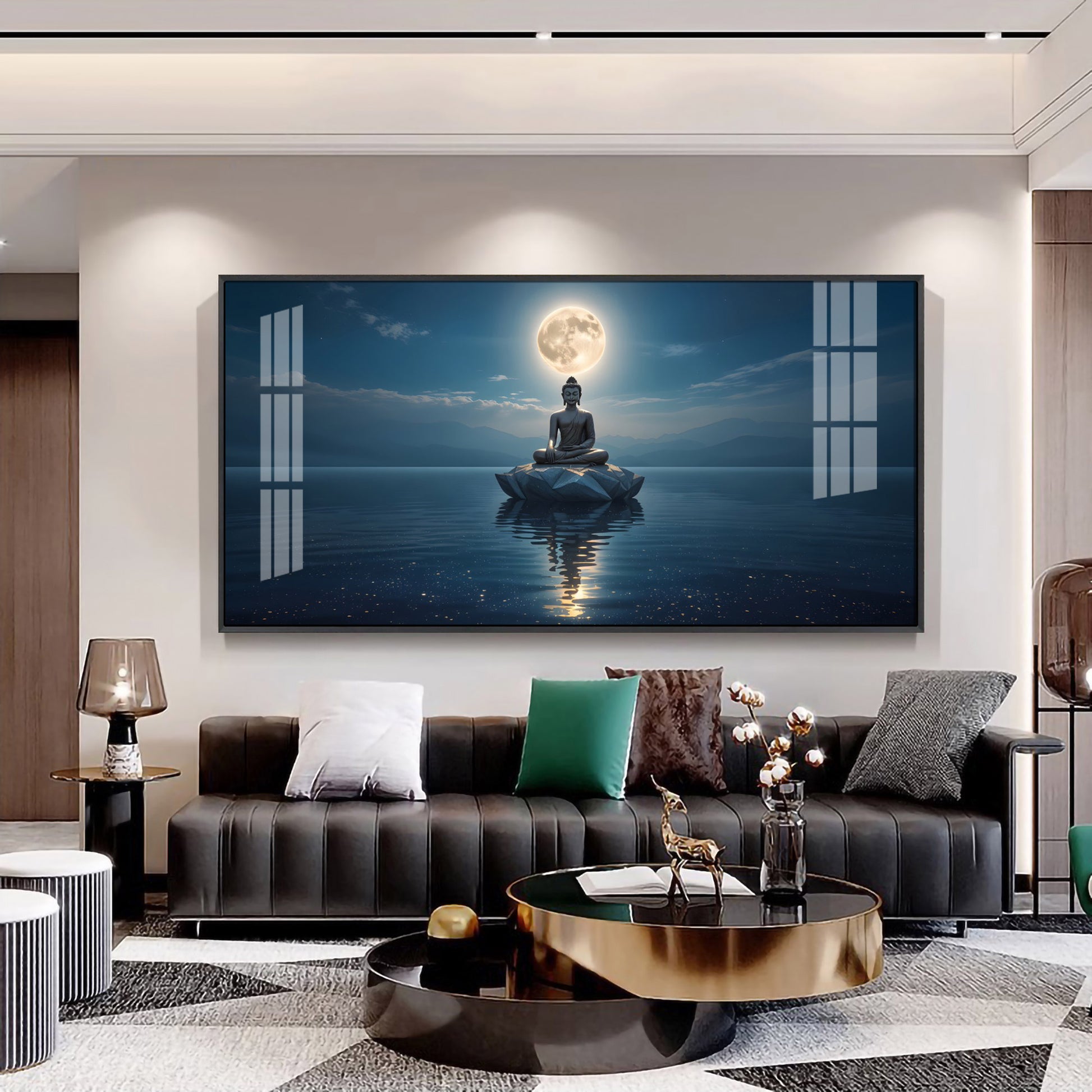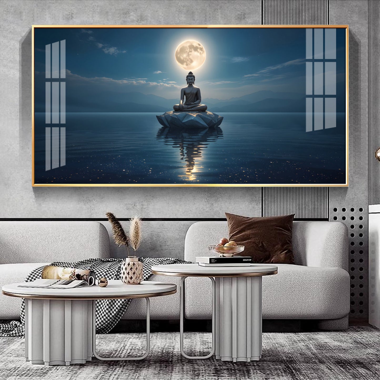 Buddha In Littoral land Glass Finish Horizontal Wall Art