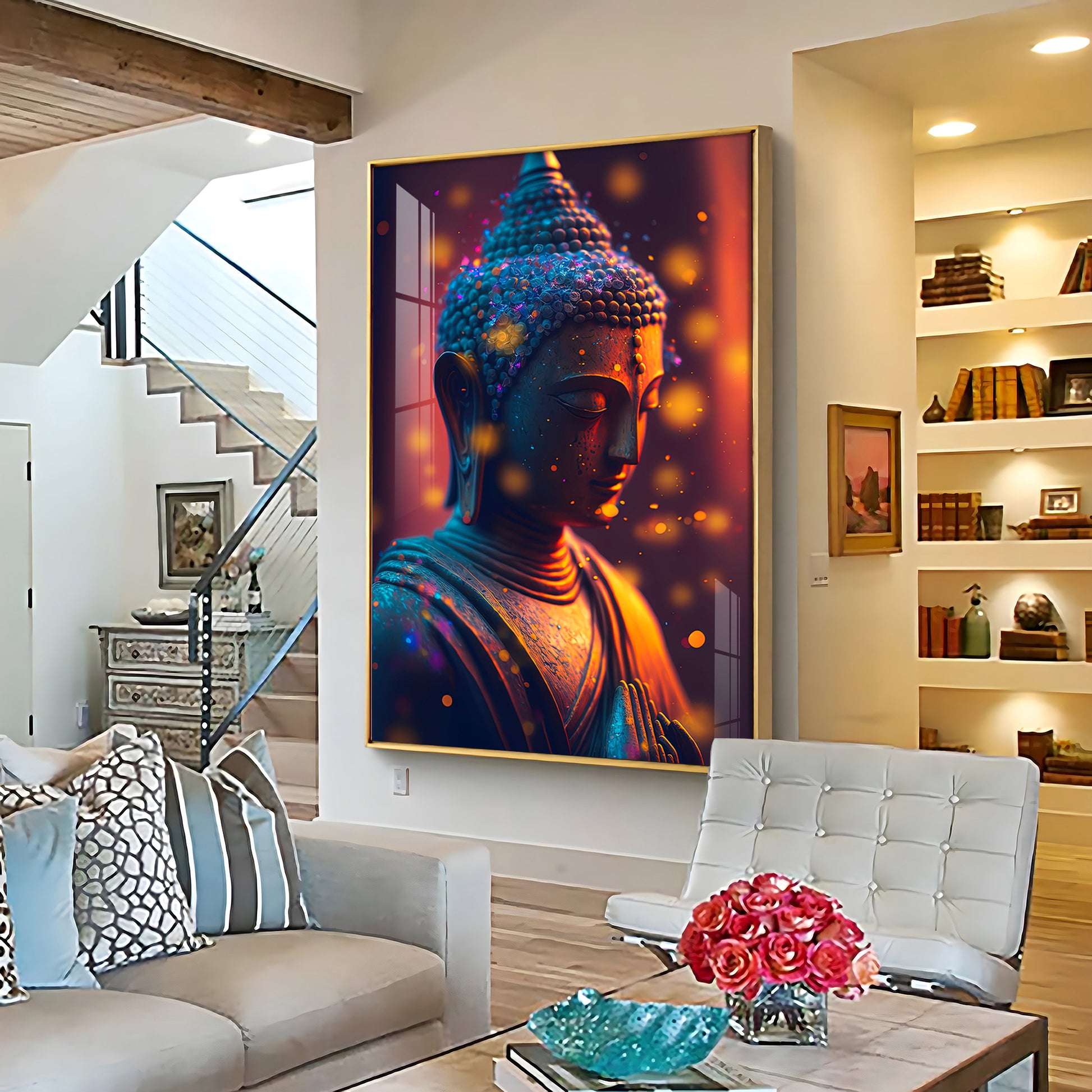 Buddha Radiant Tranquility Glass Finish Vertical Wall Art