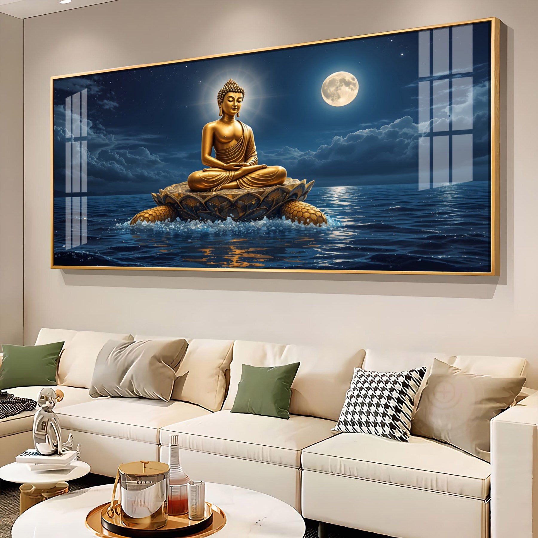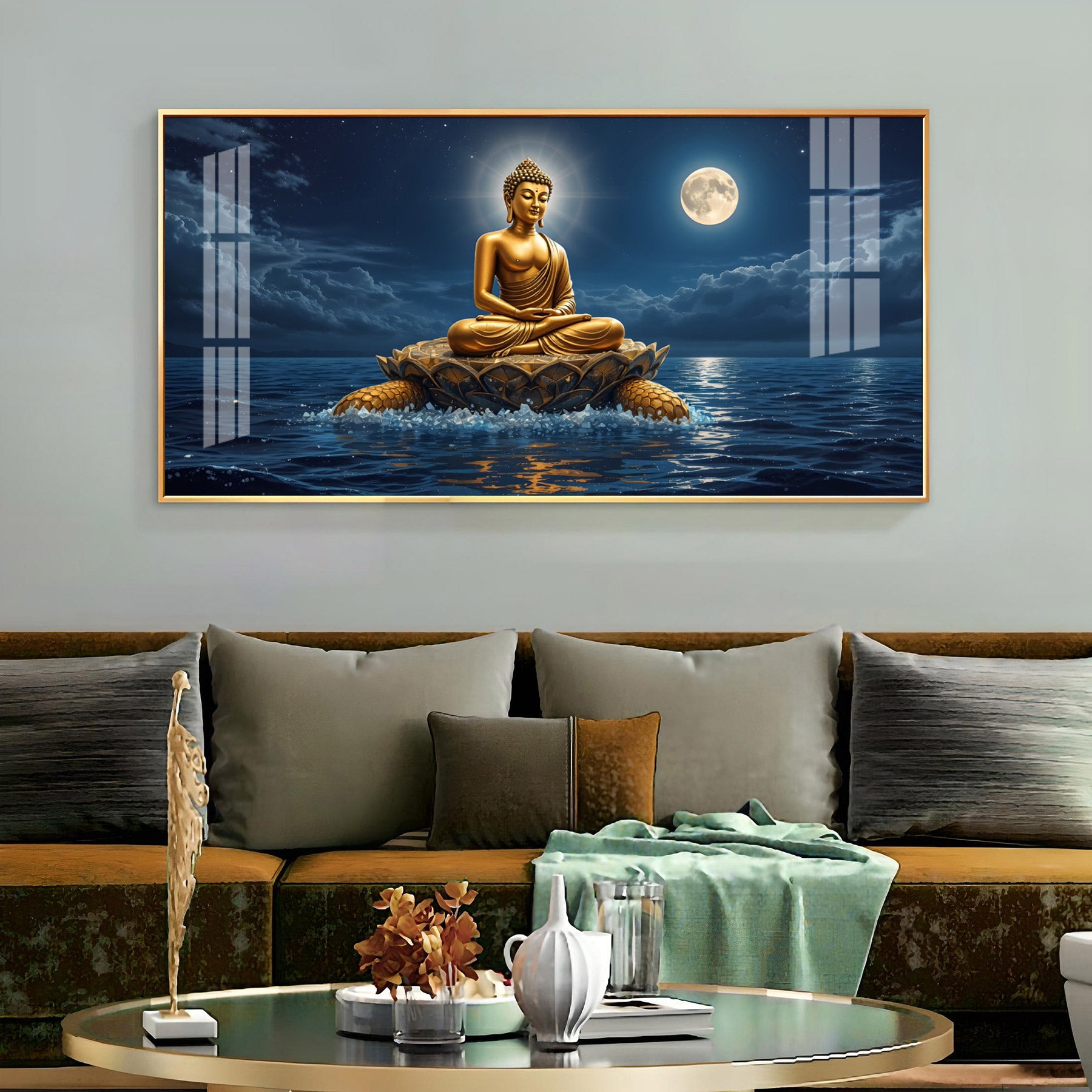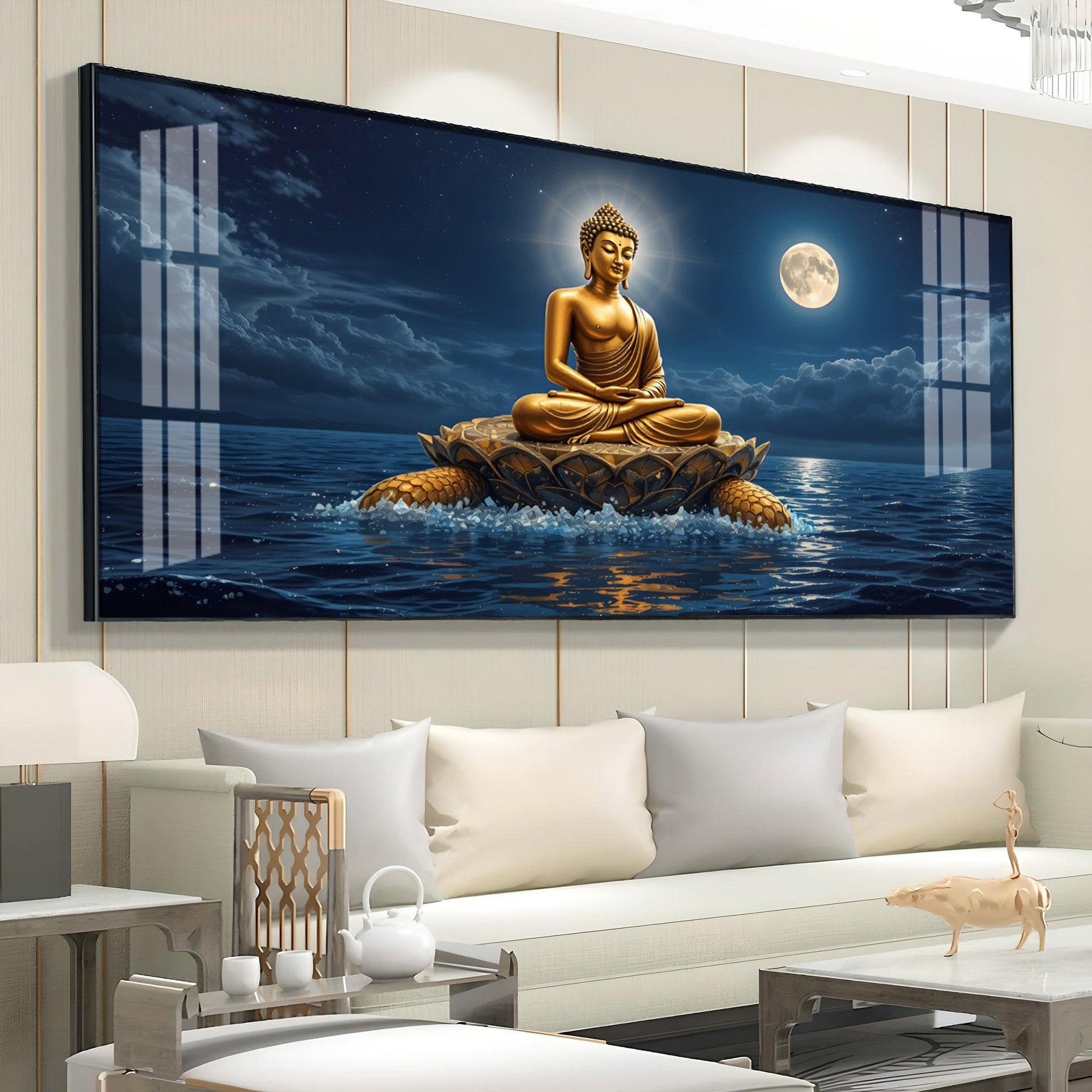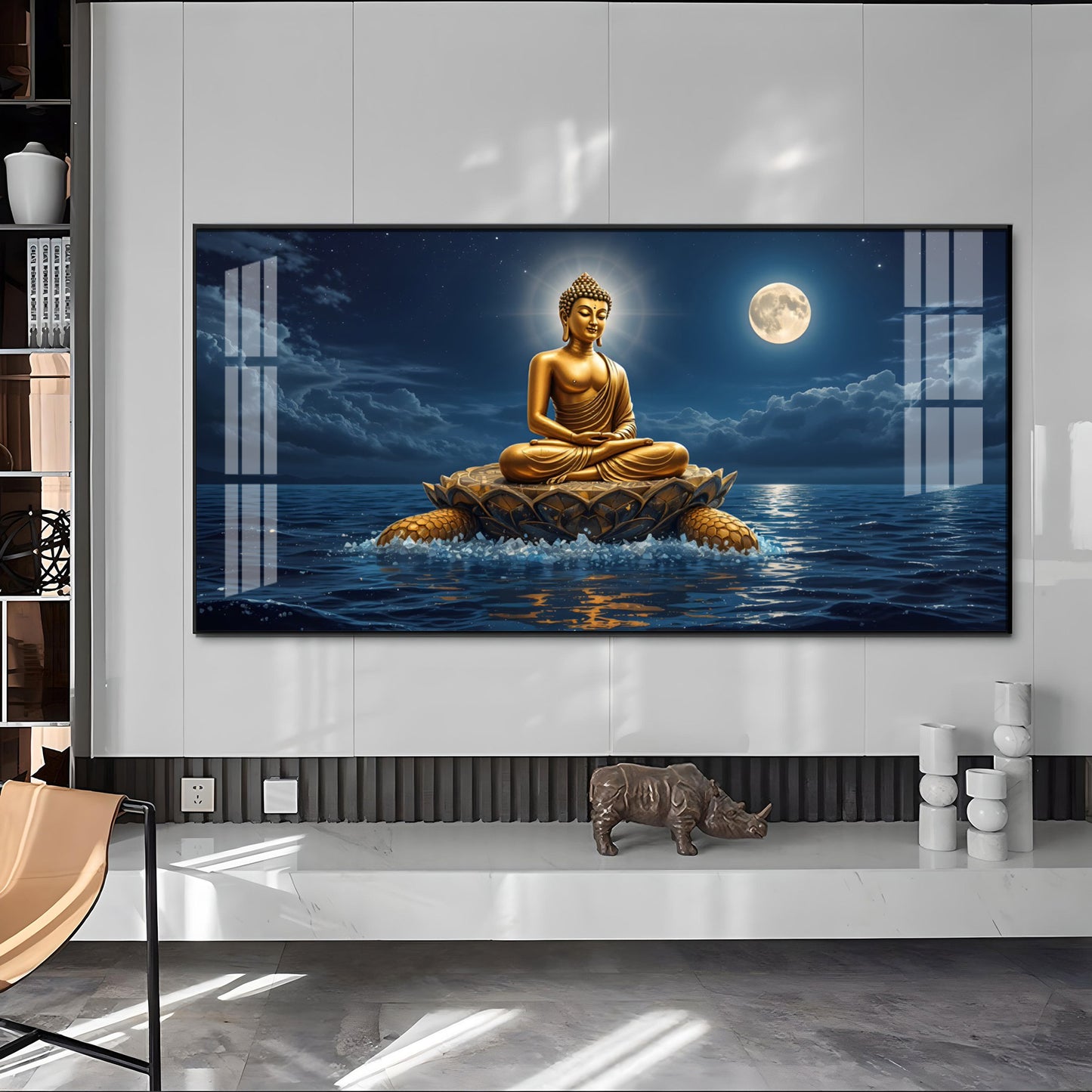 Buddha Sitting Peacfully Glass Finish Horizontal Wall Art