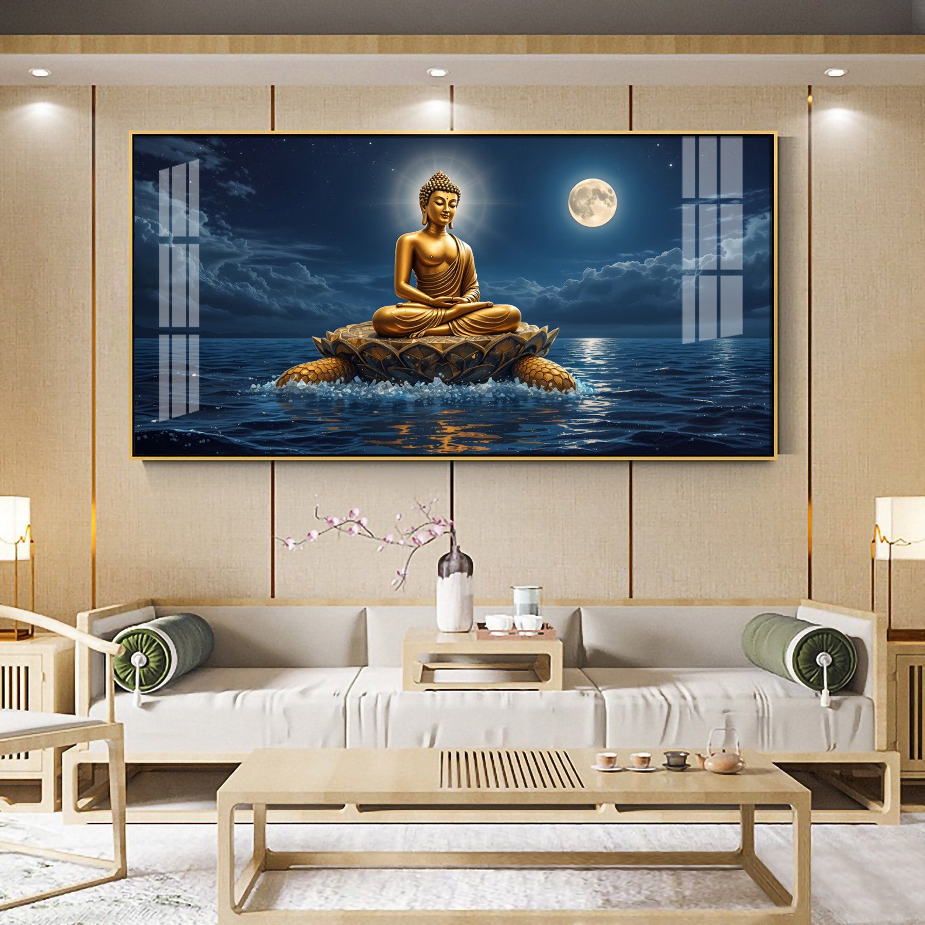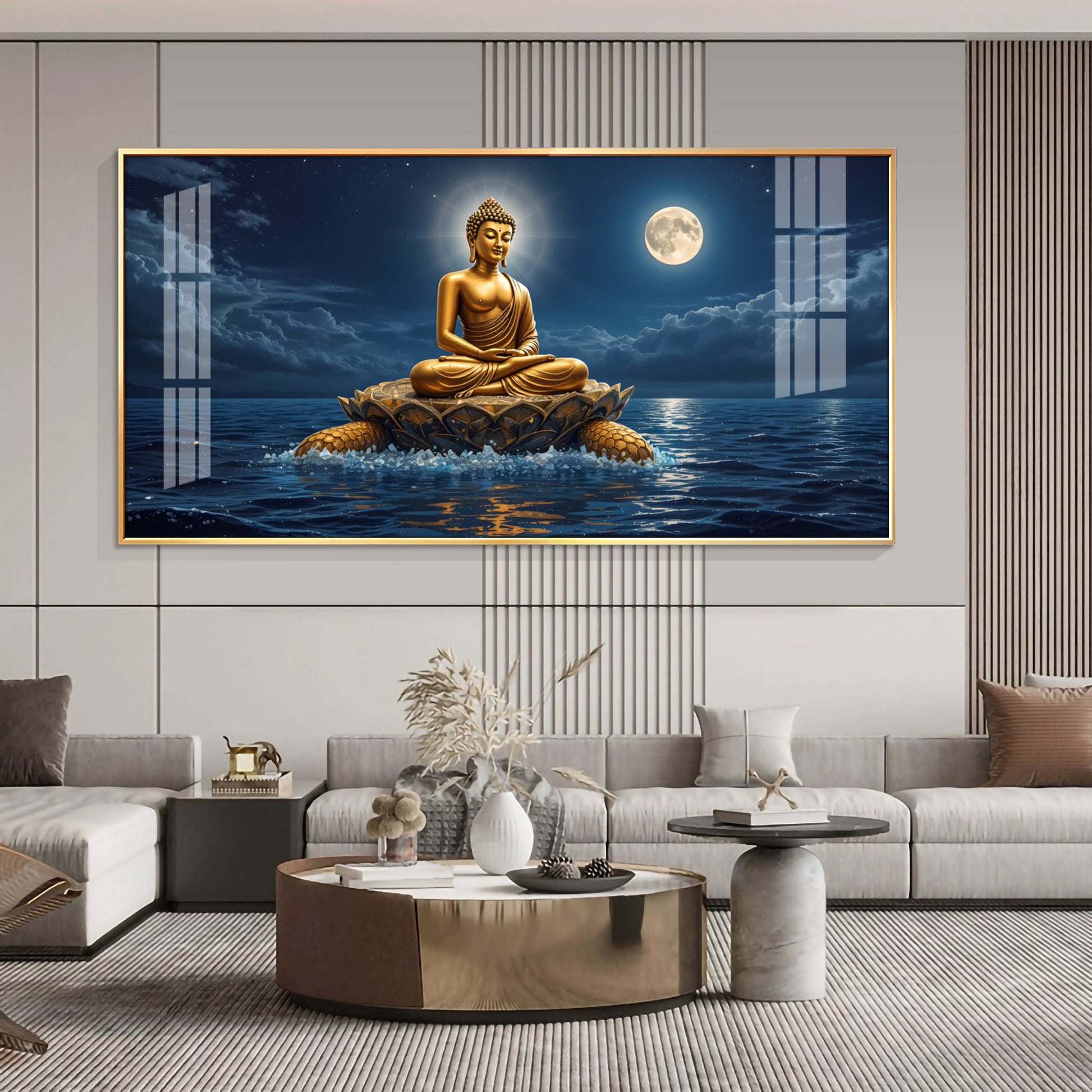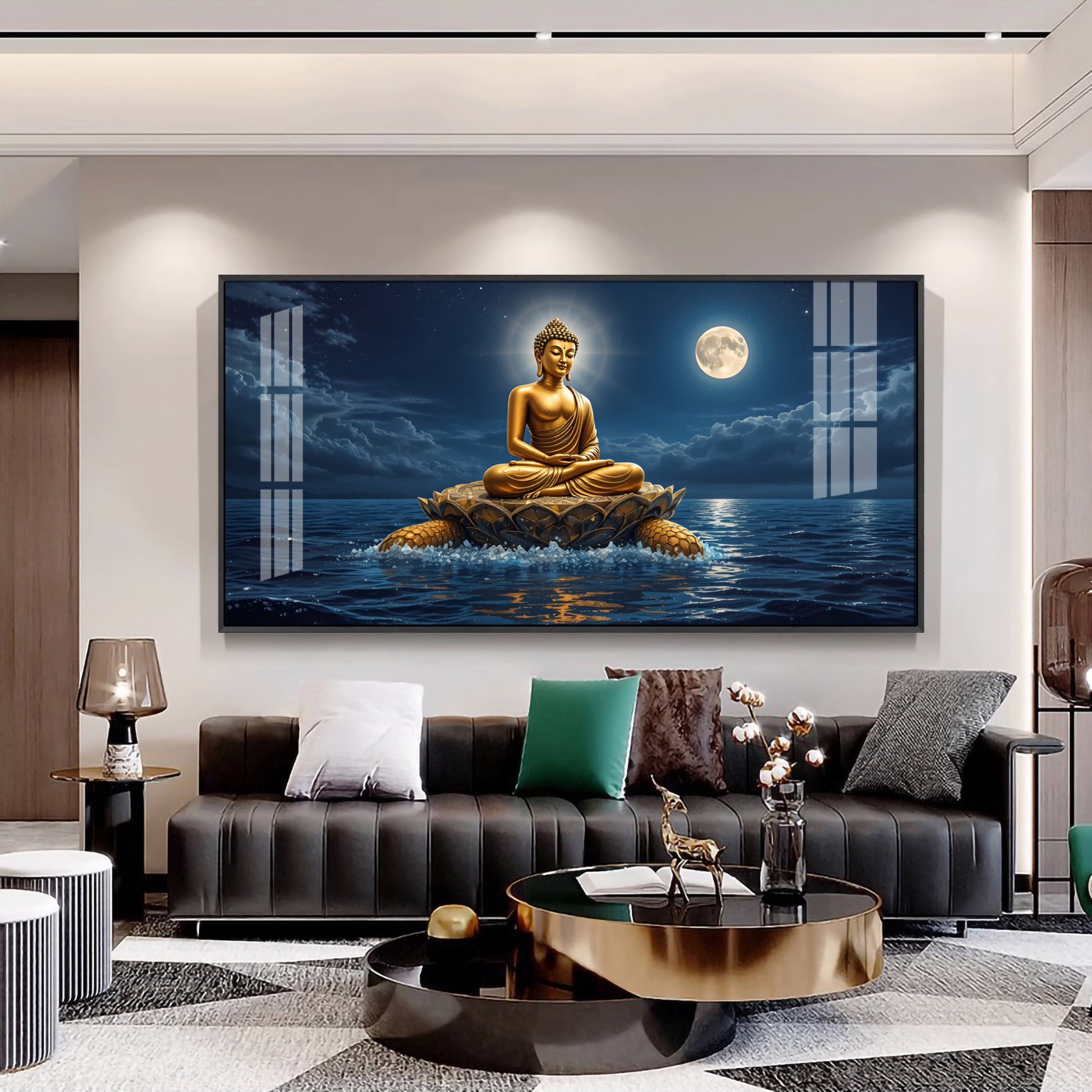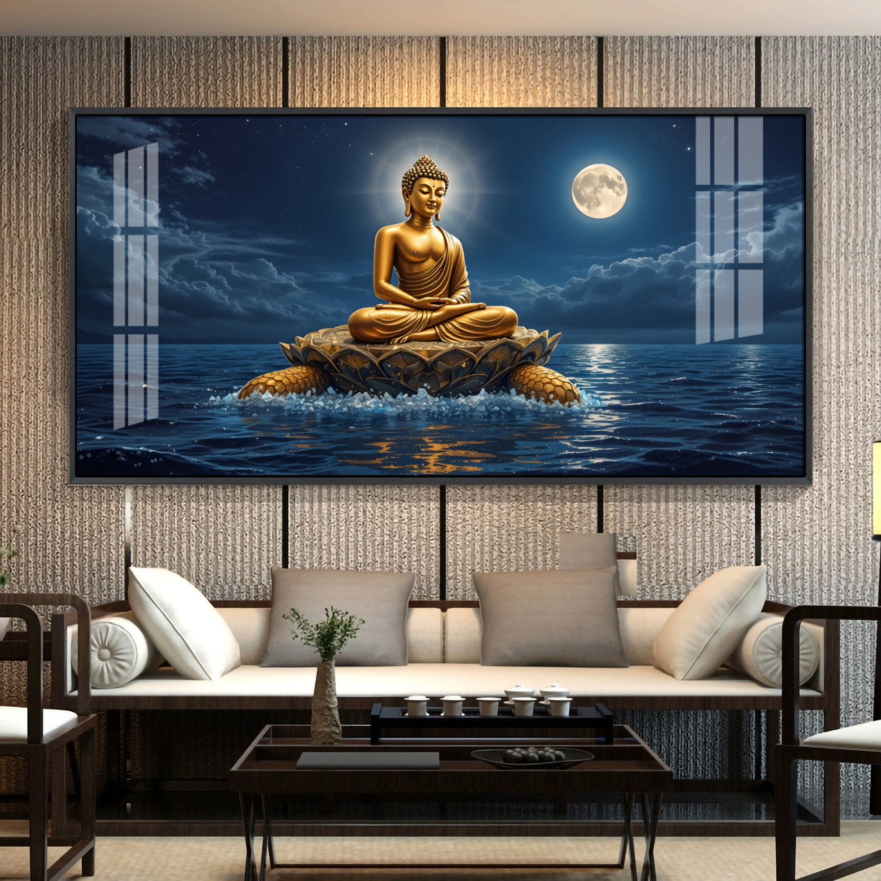 Buddha Sitting Peacfully Glass Finish Horizontal Wall Art
