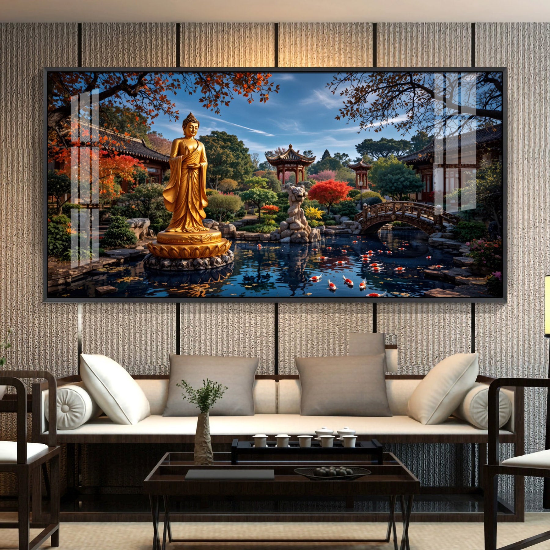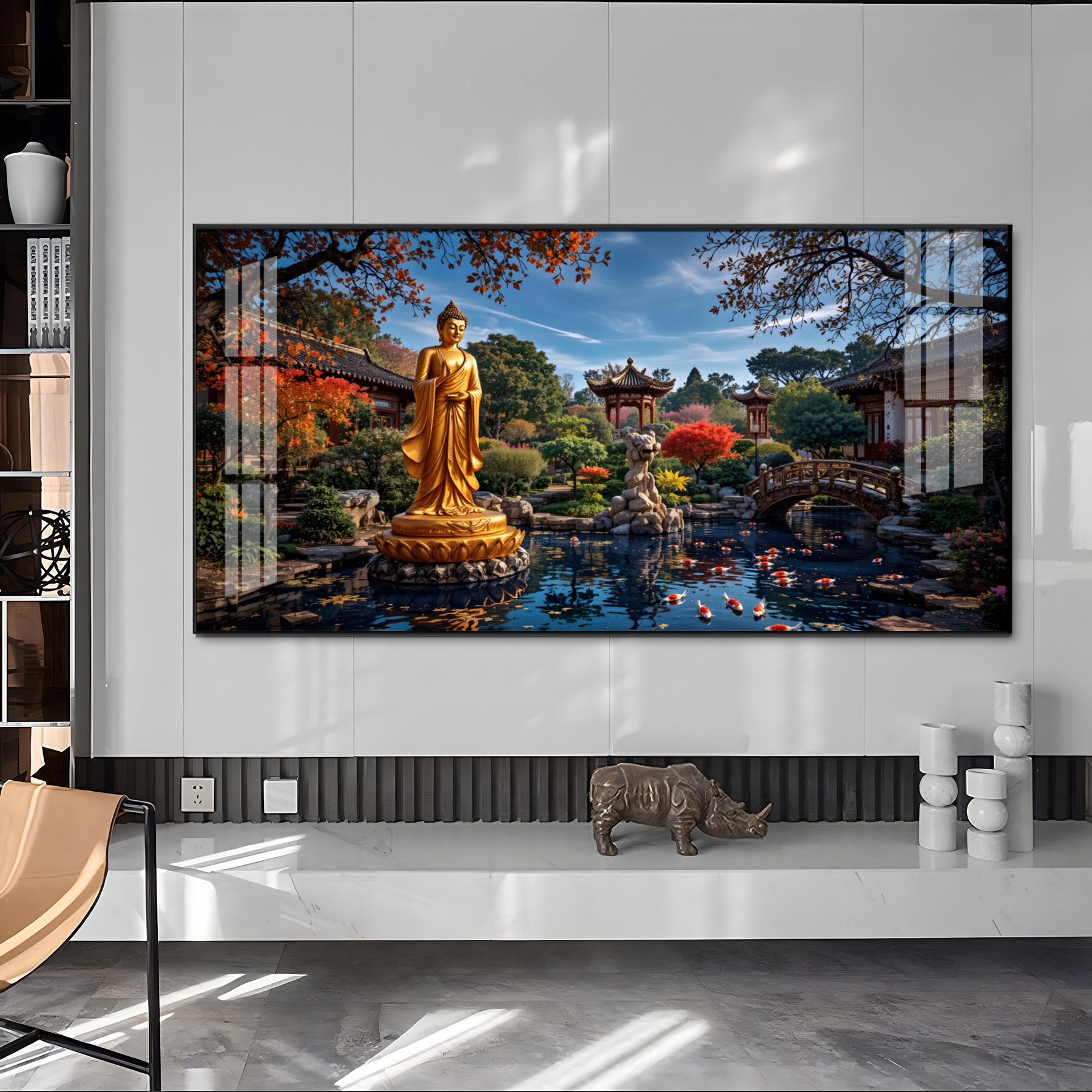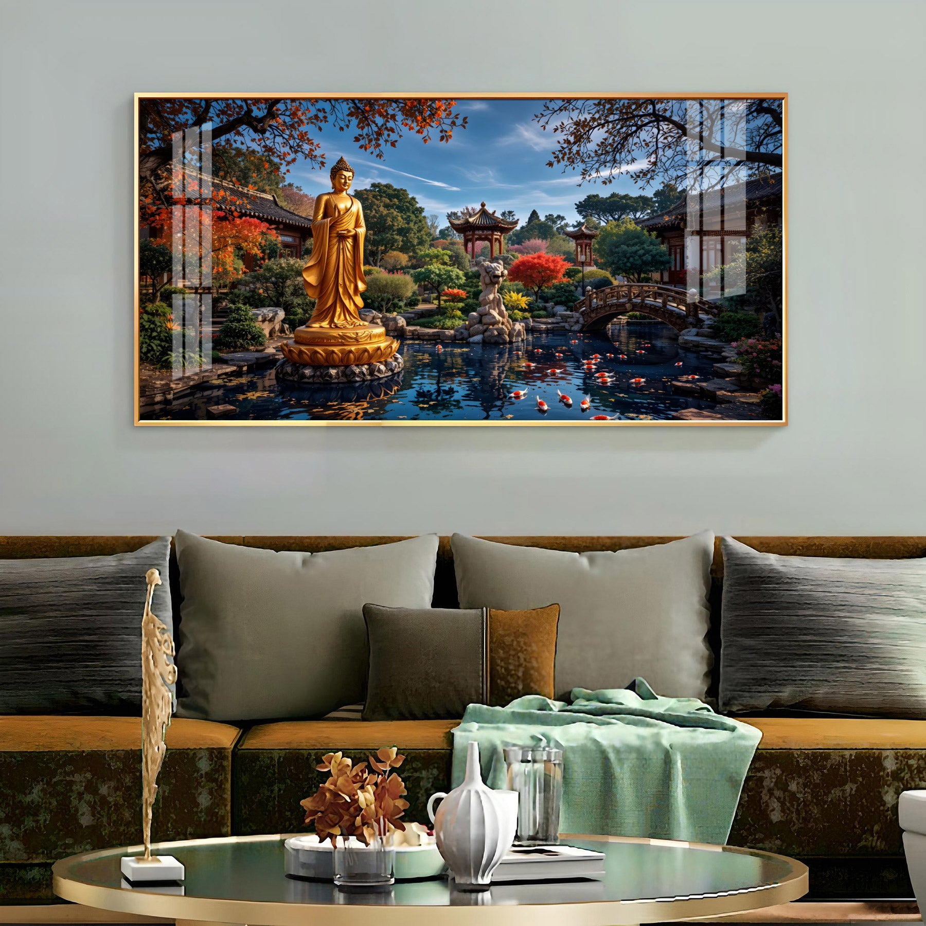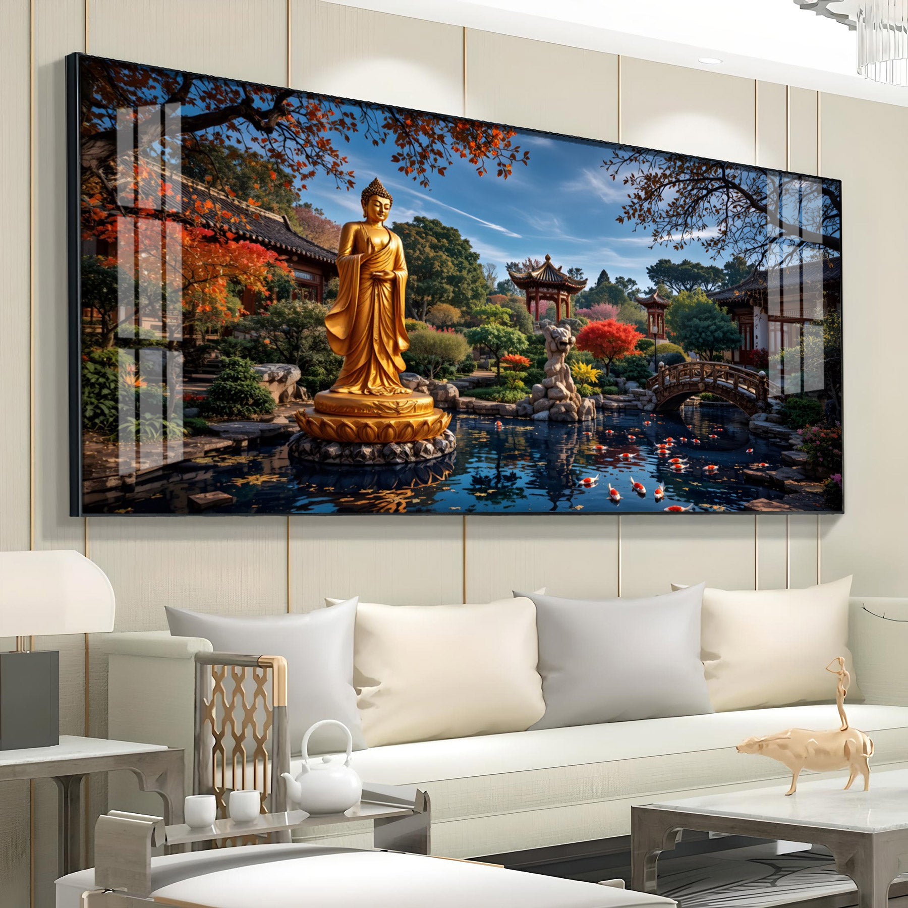 Buddha Statue In Historic Glass Finish Horizontal Wall Art