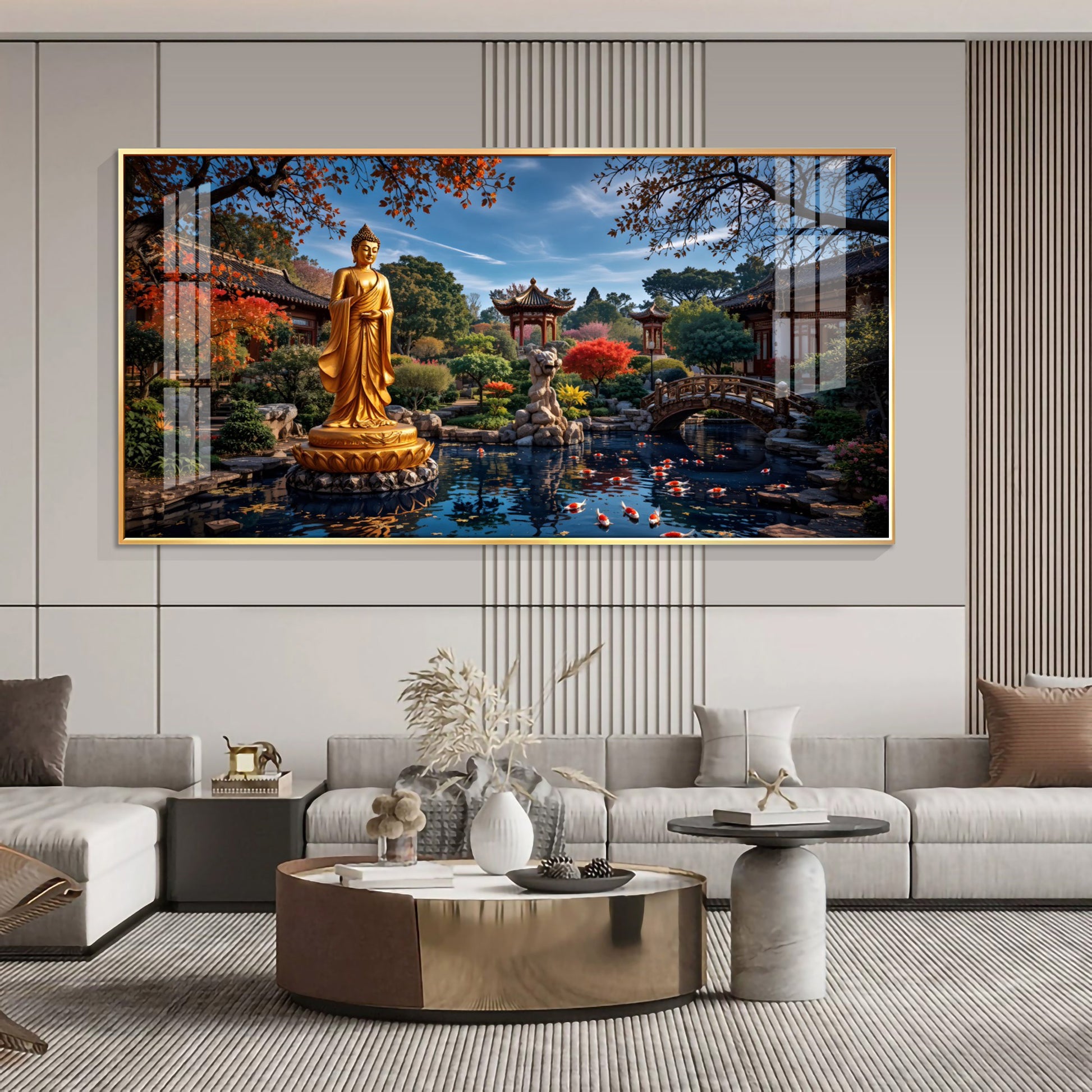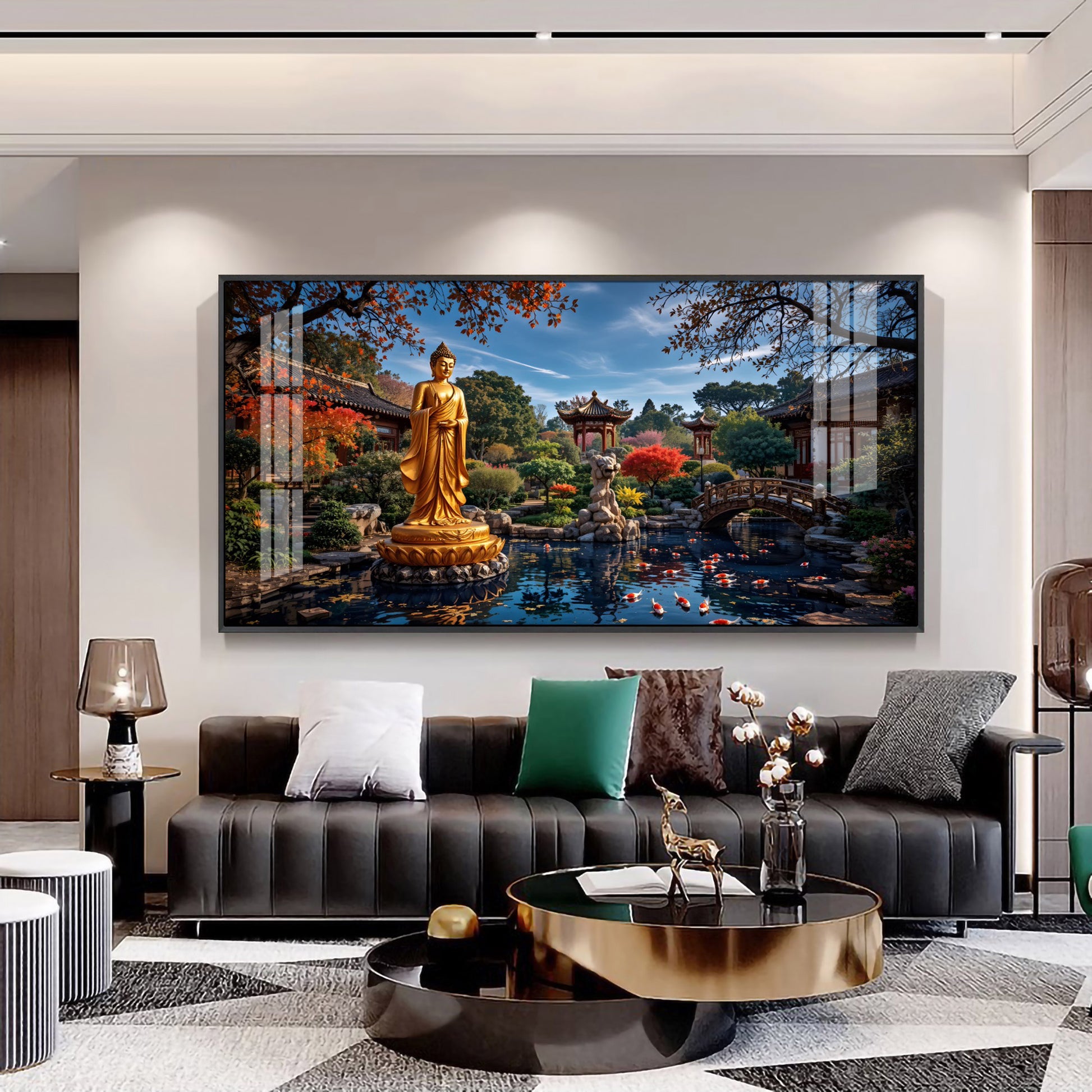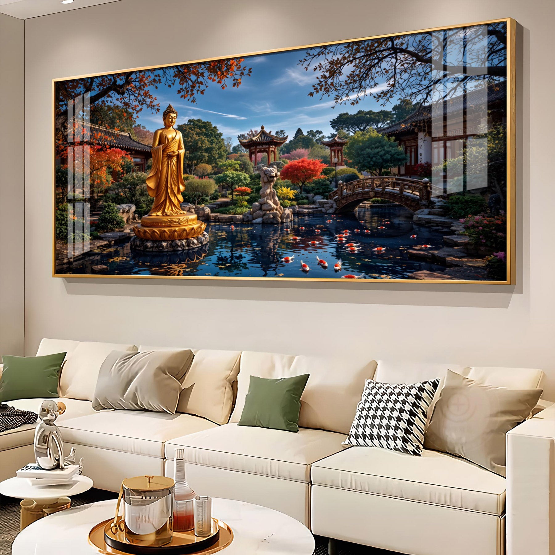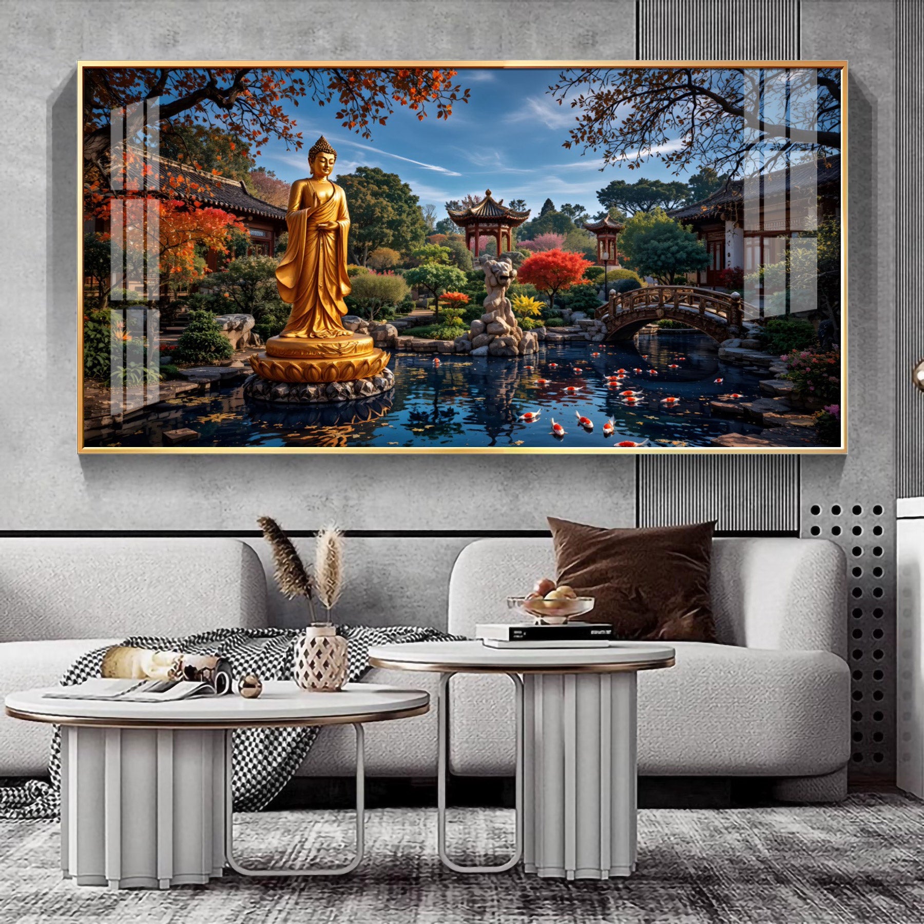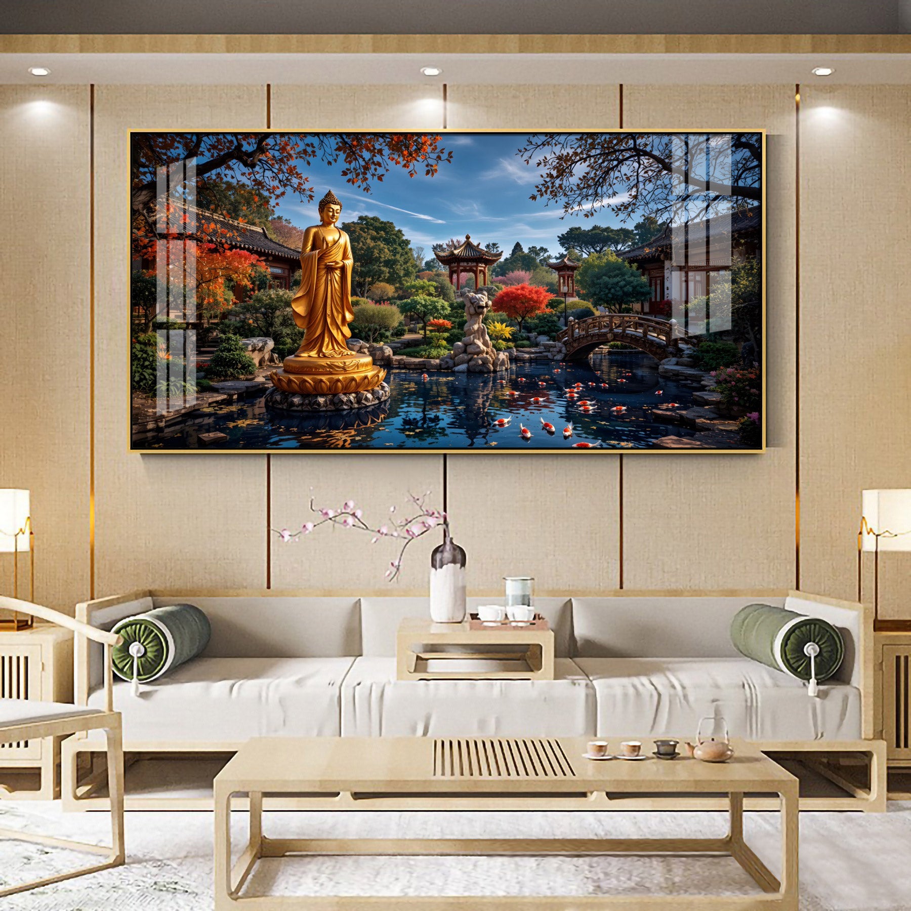 Buddha Statue In Historic Glass Finish Horizontal Wall Art
