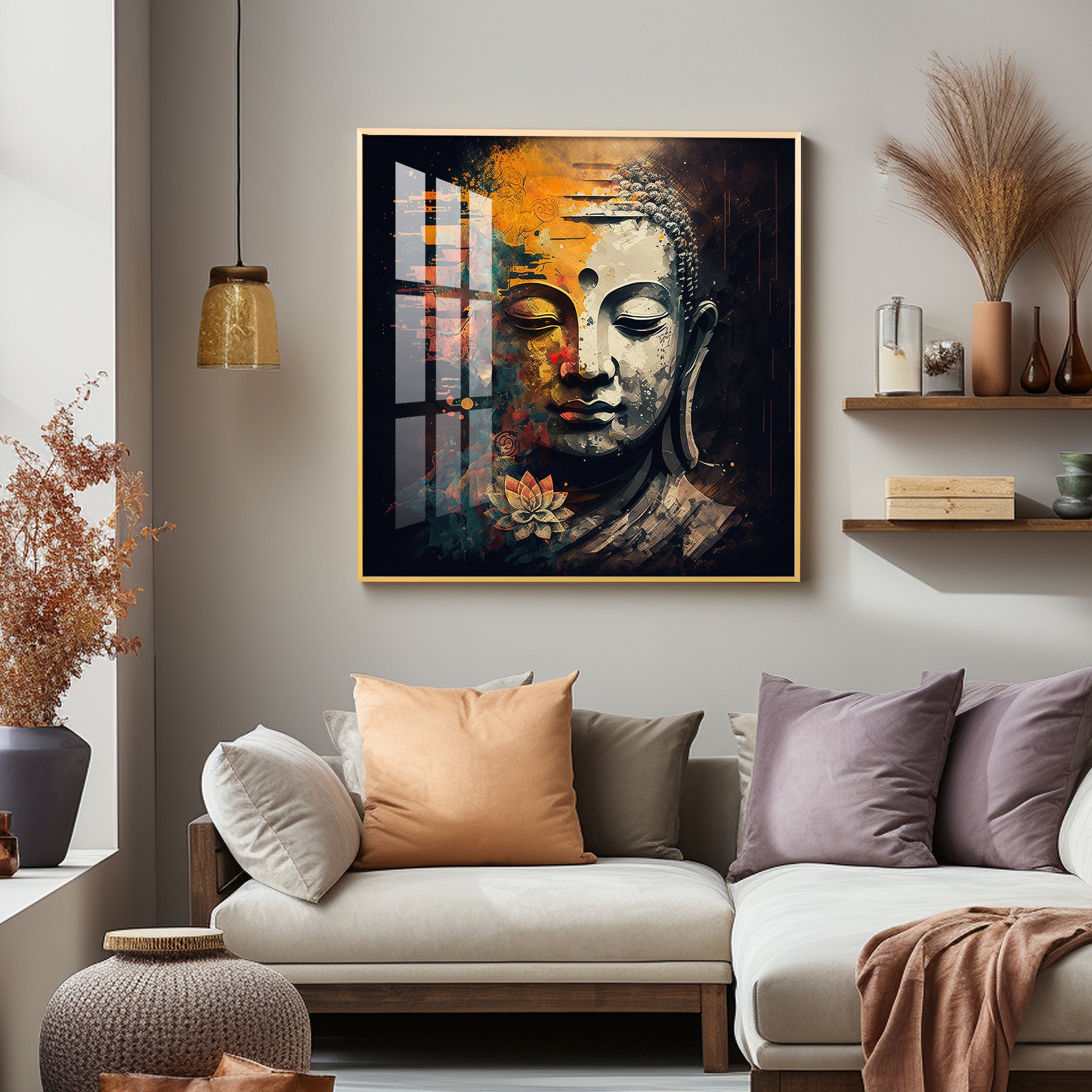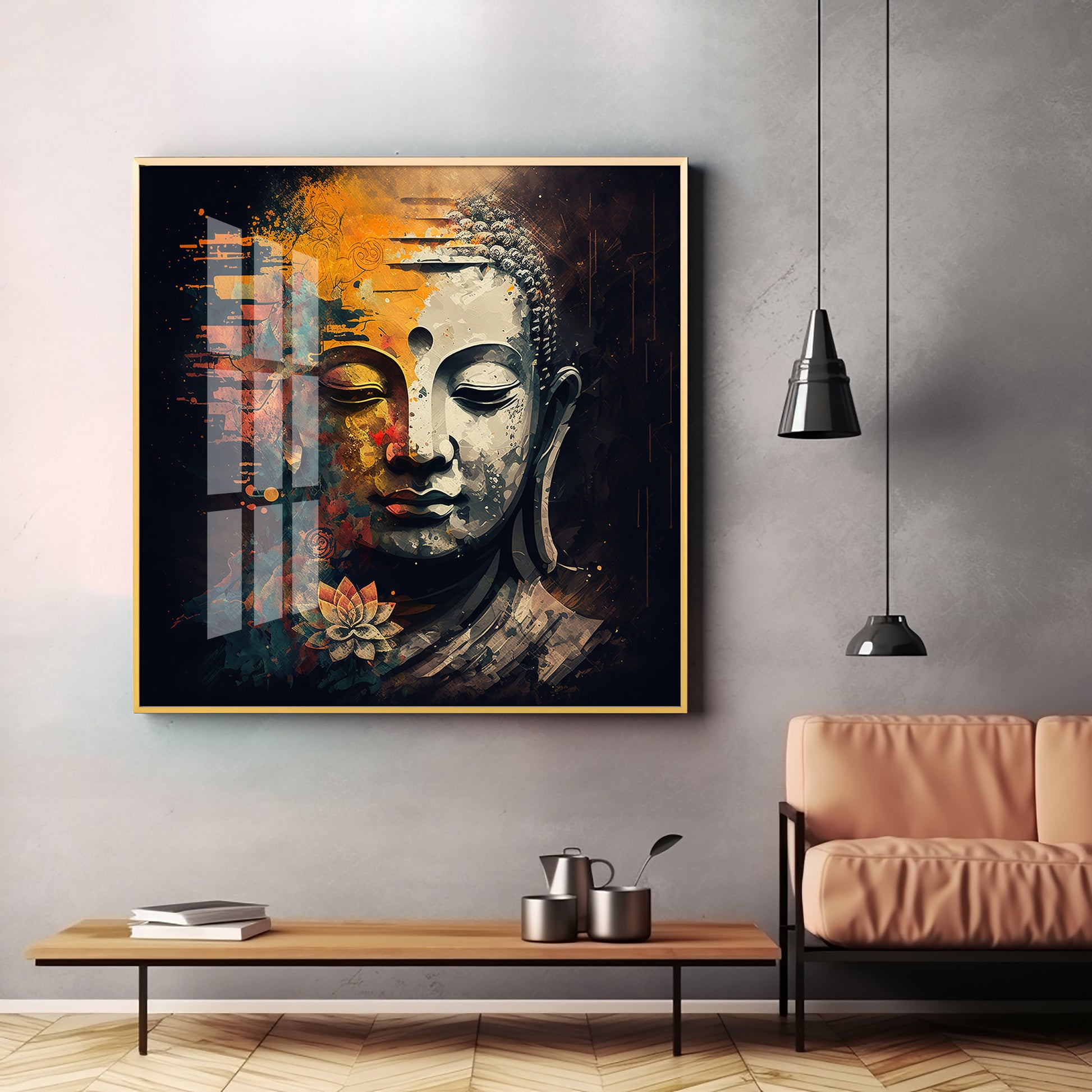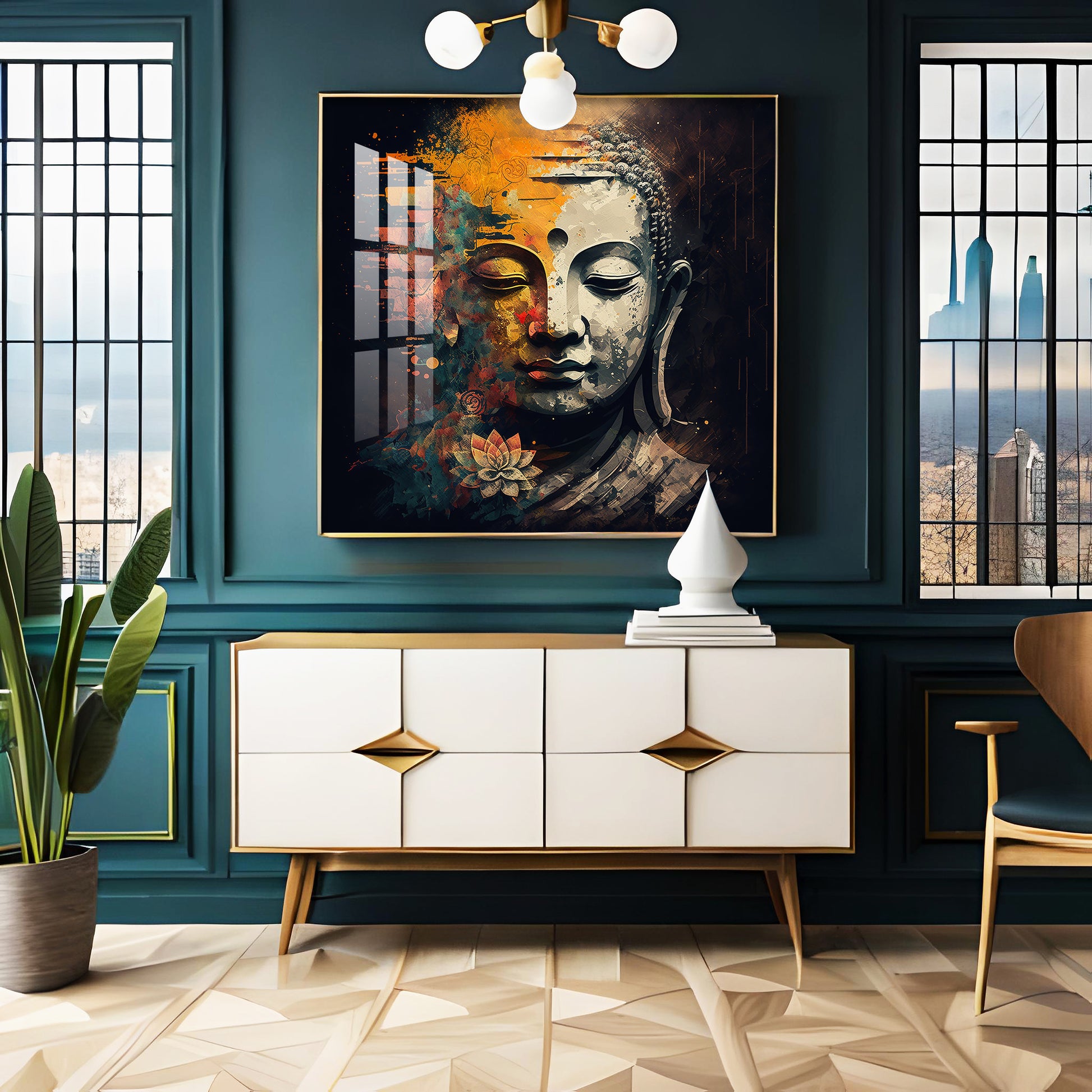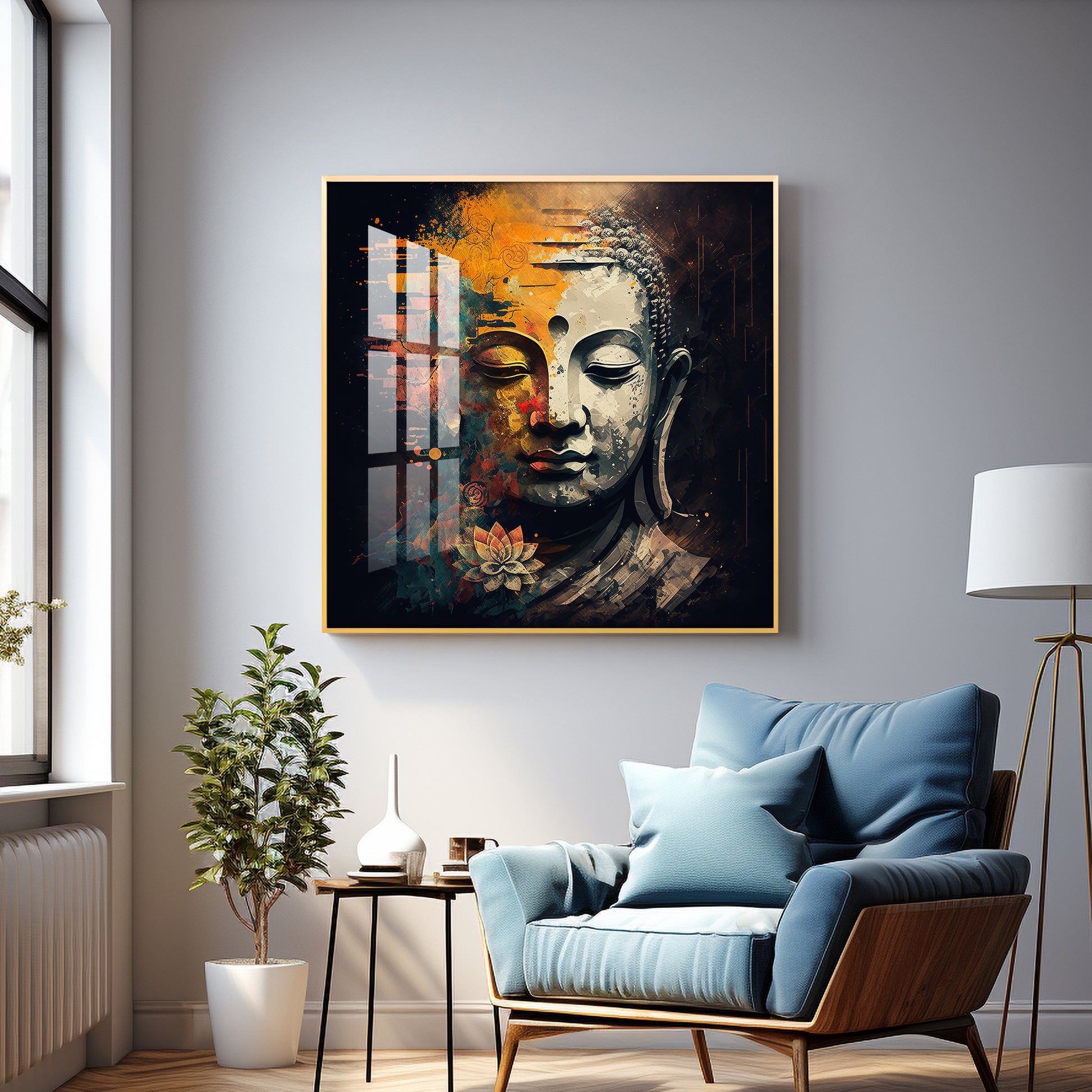 Buddha's Tranquil Essence Glass Finish Square Wall Art