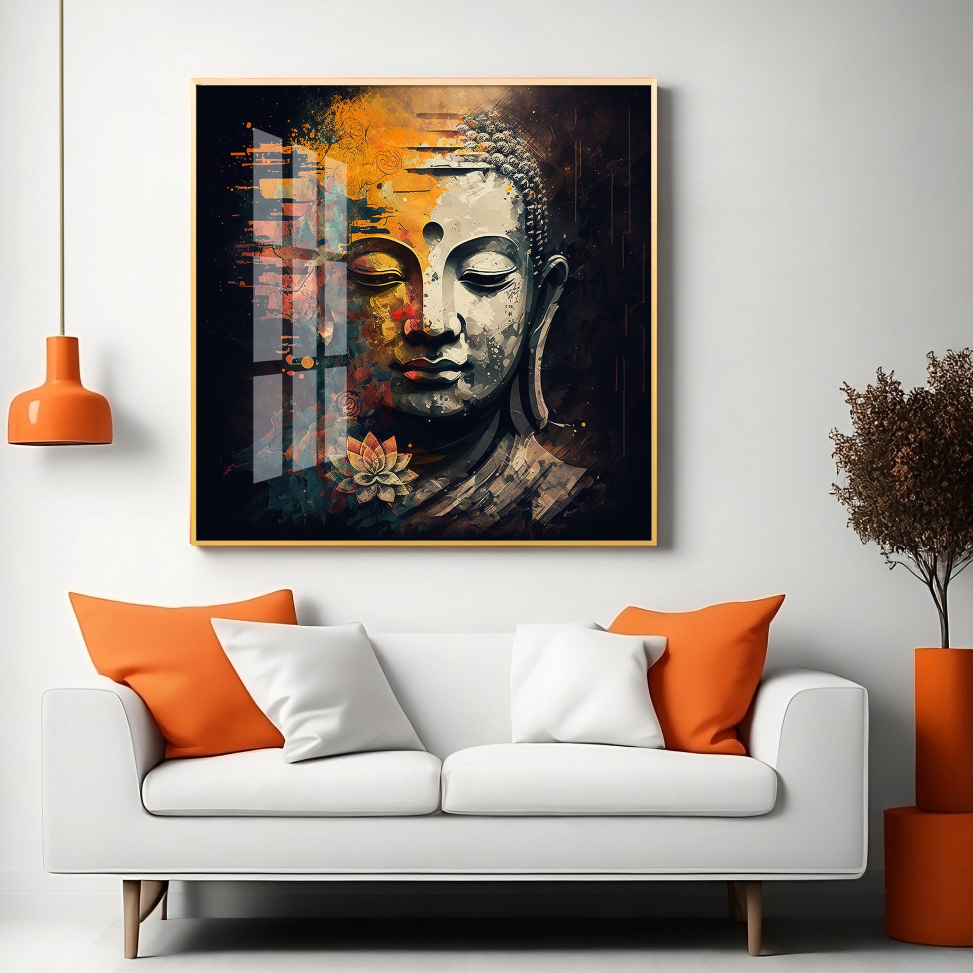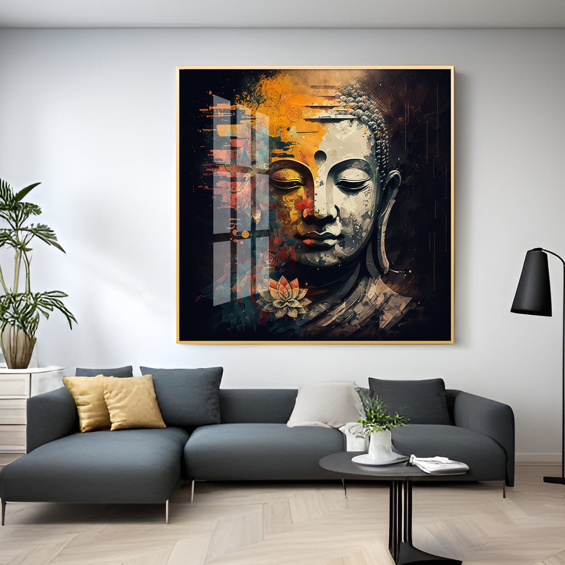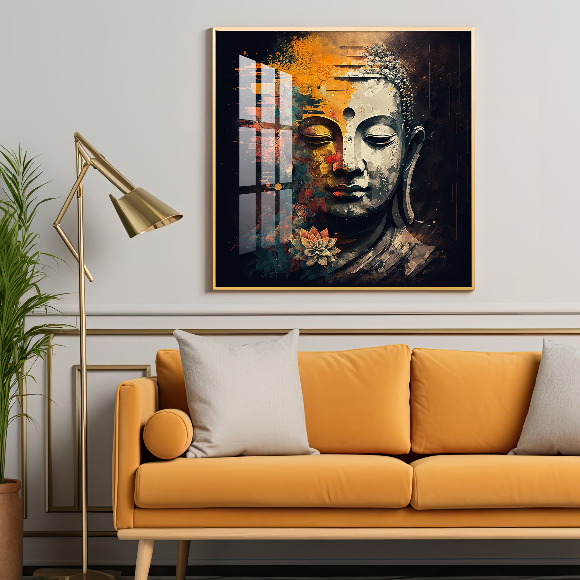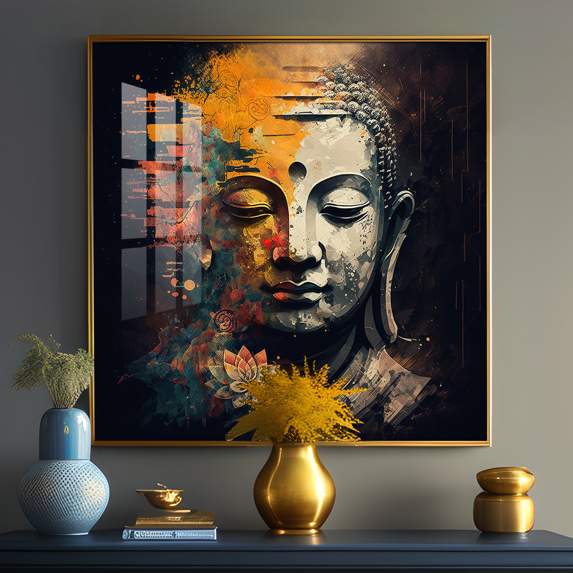 Buddha's Tranquil Essence Glass Finish Square Wall Art