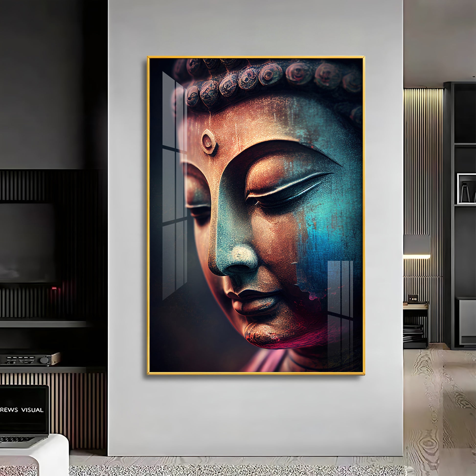 Buddha's Whisper Glass Finish Vertical Wall Art