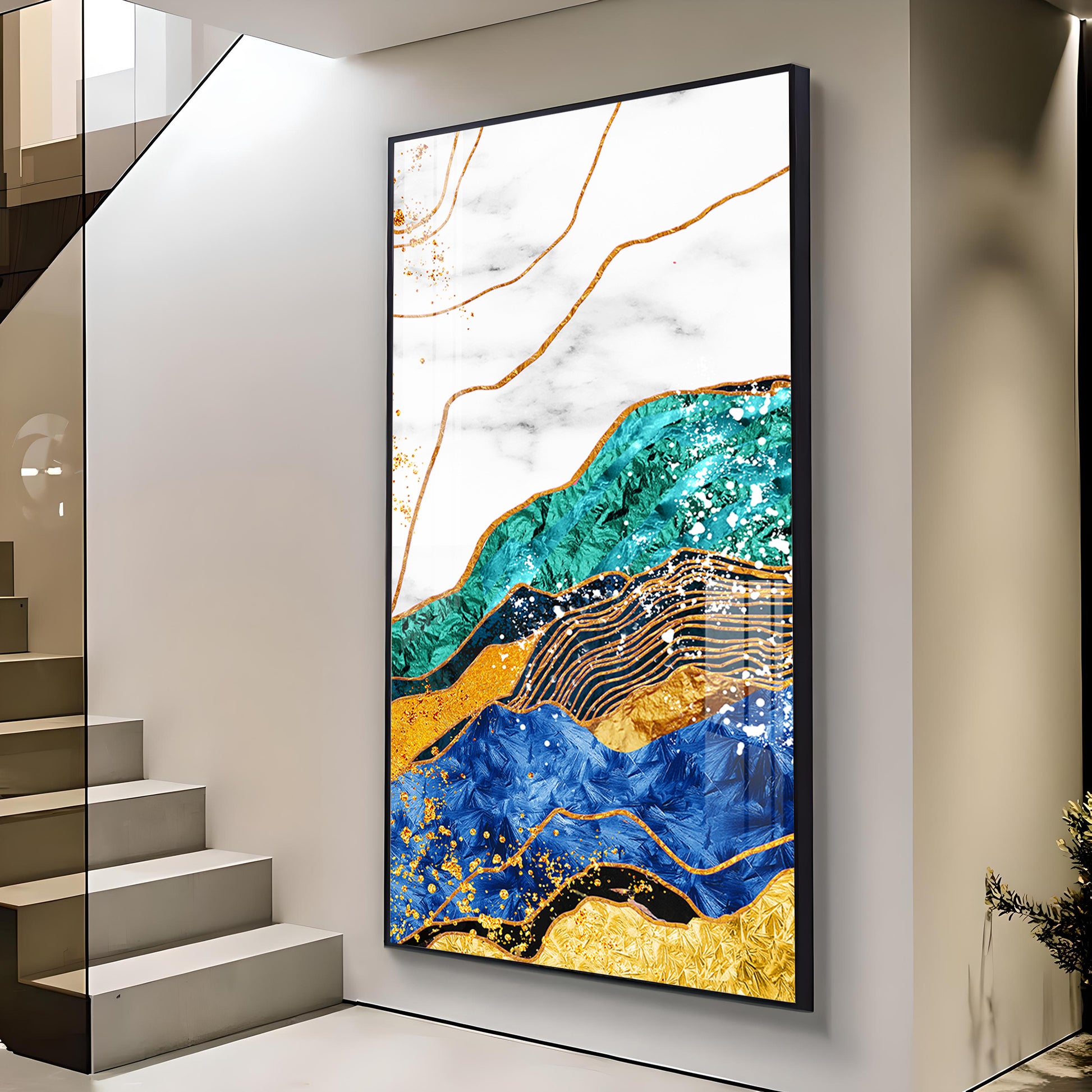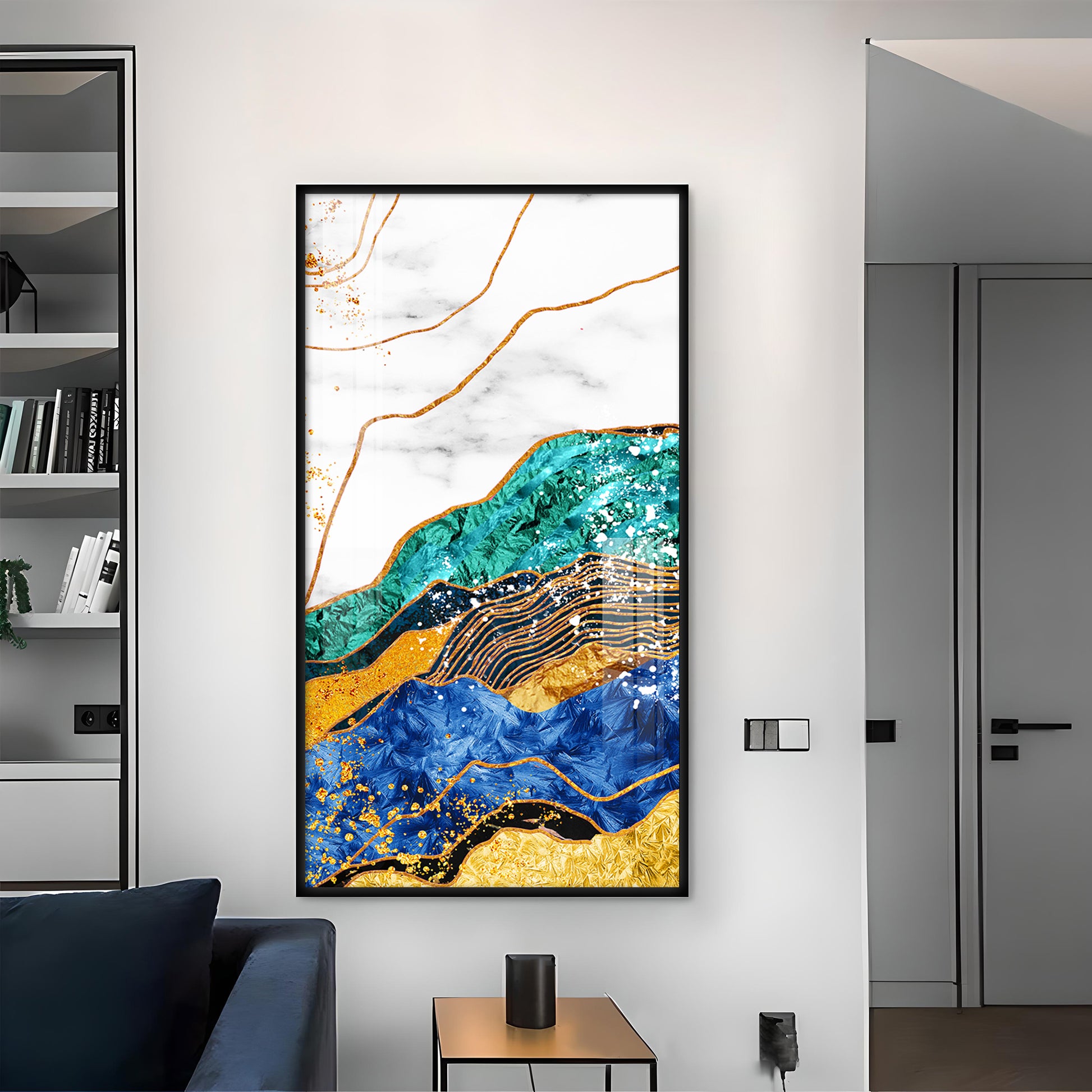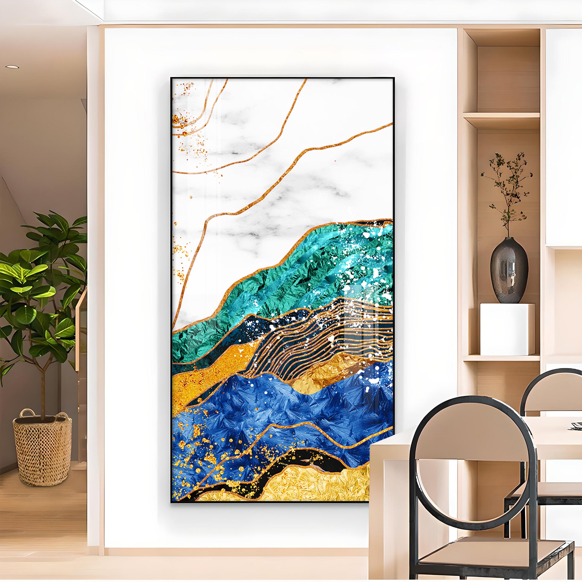 Celestial Marble Fusion Glass Finish Vertical Wall Art