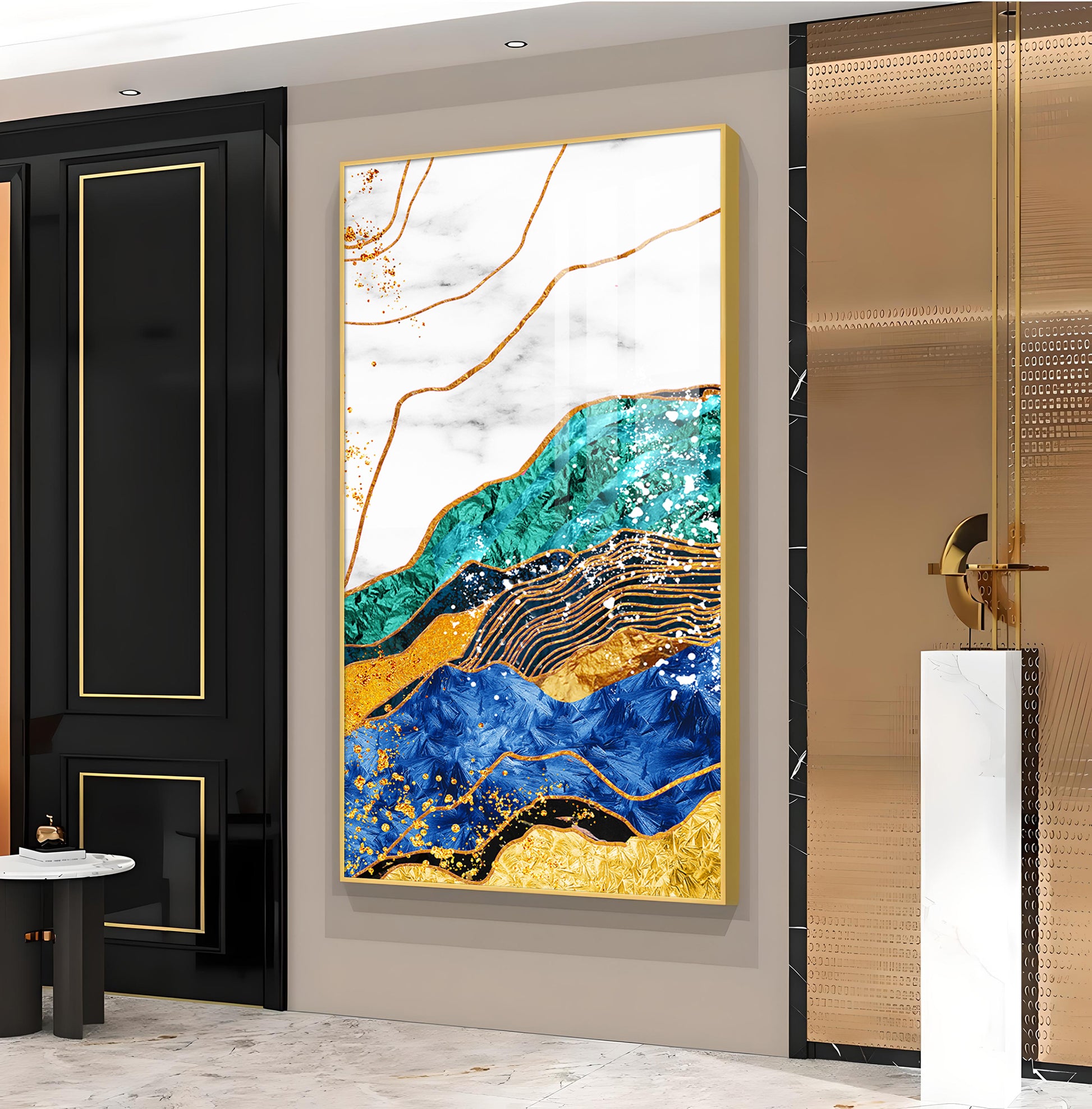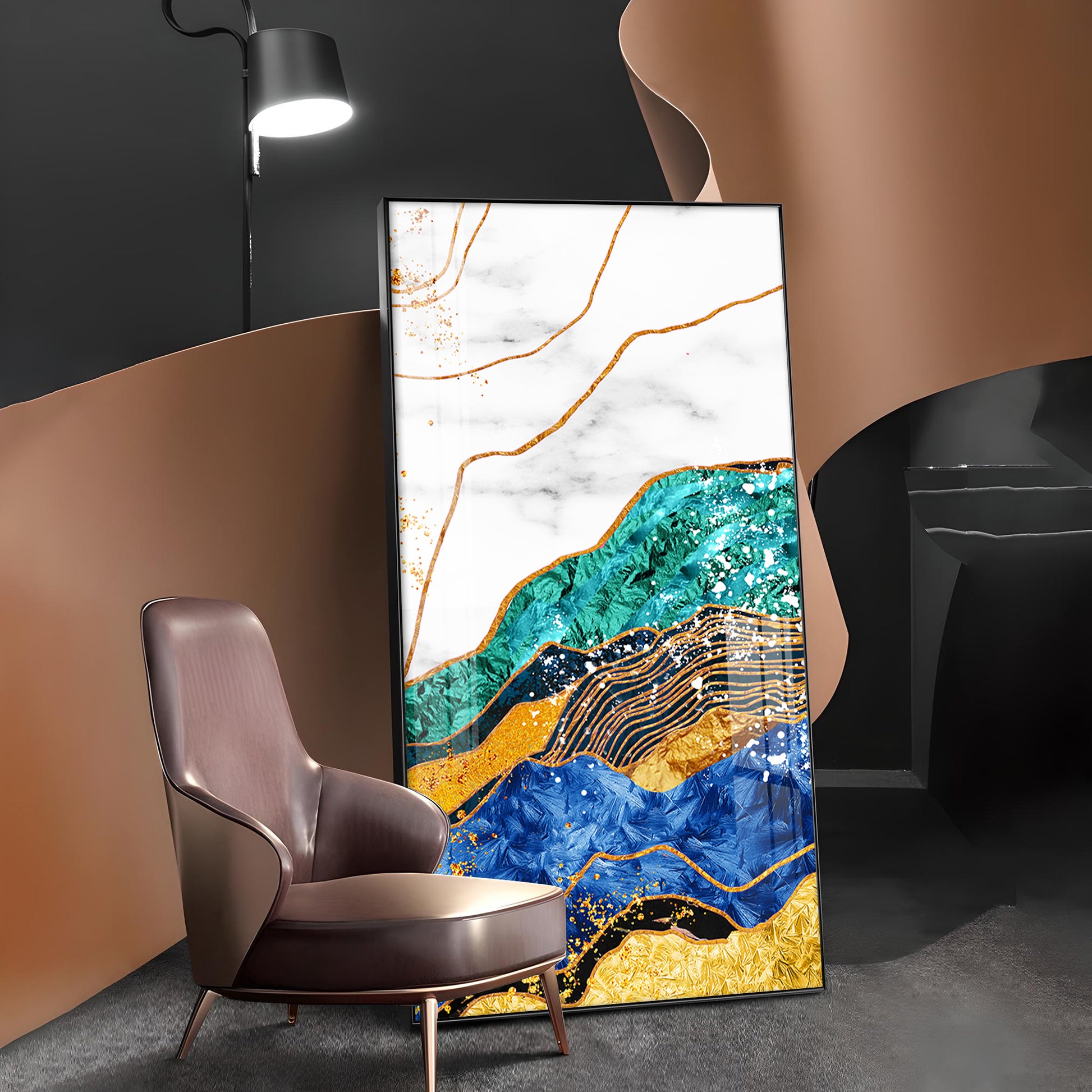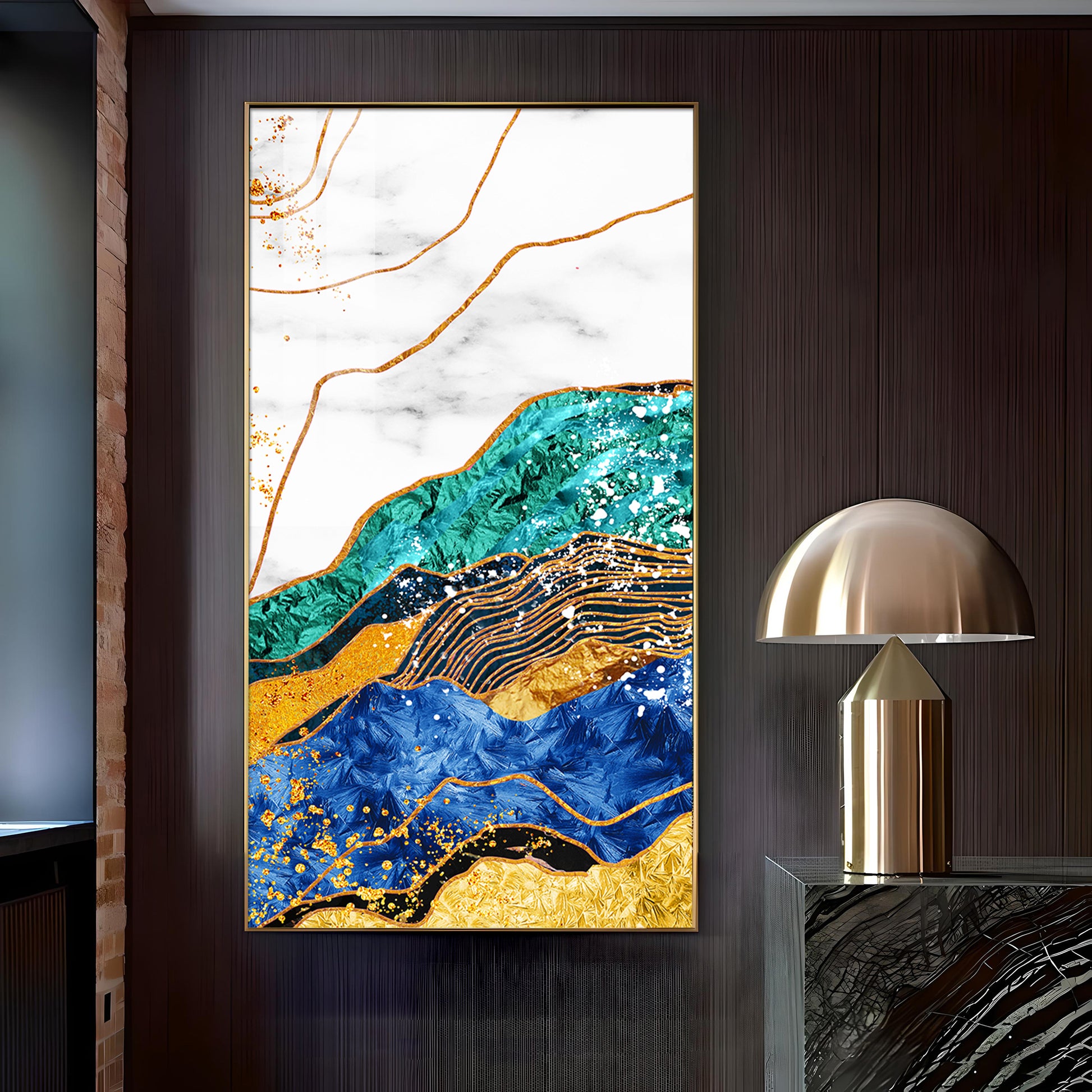 Celestial Marble Fusion Glass Finish Vertical Wall Art