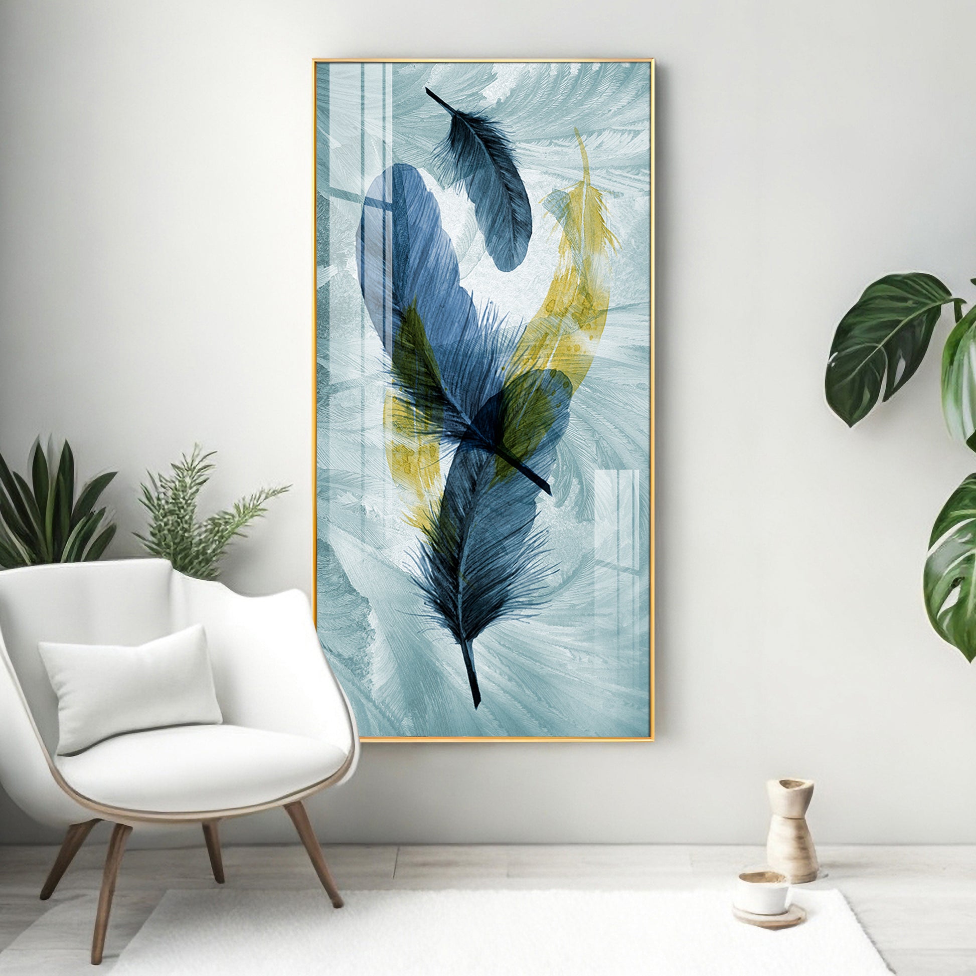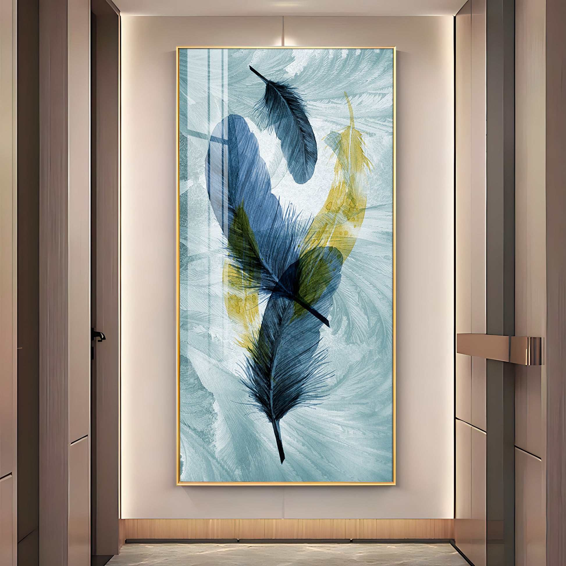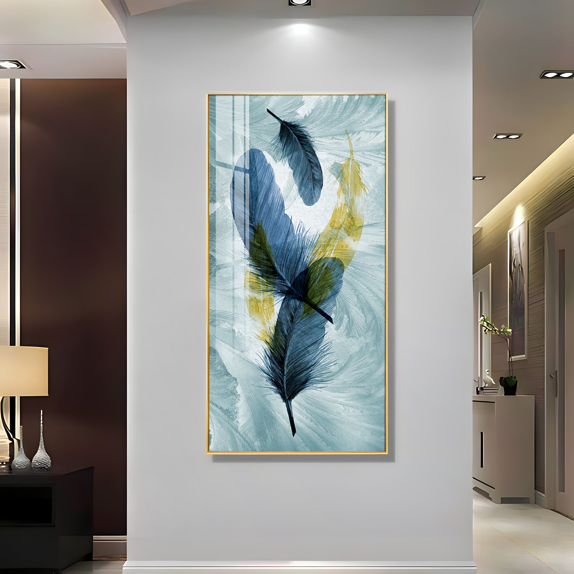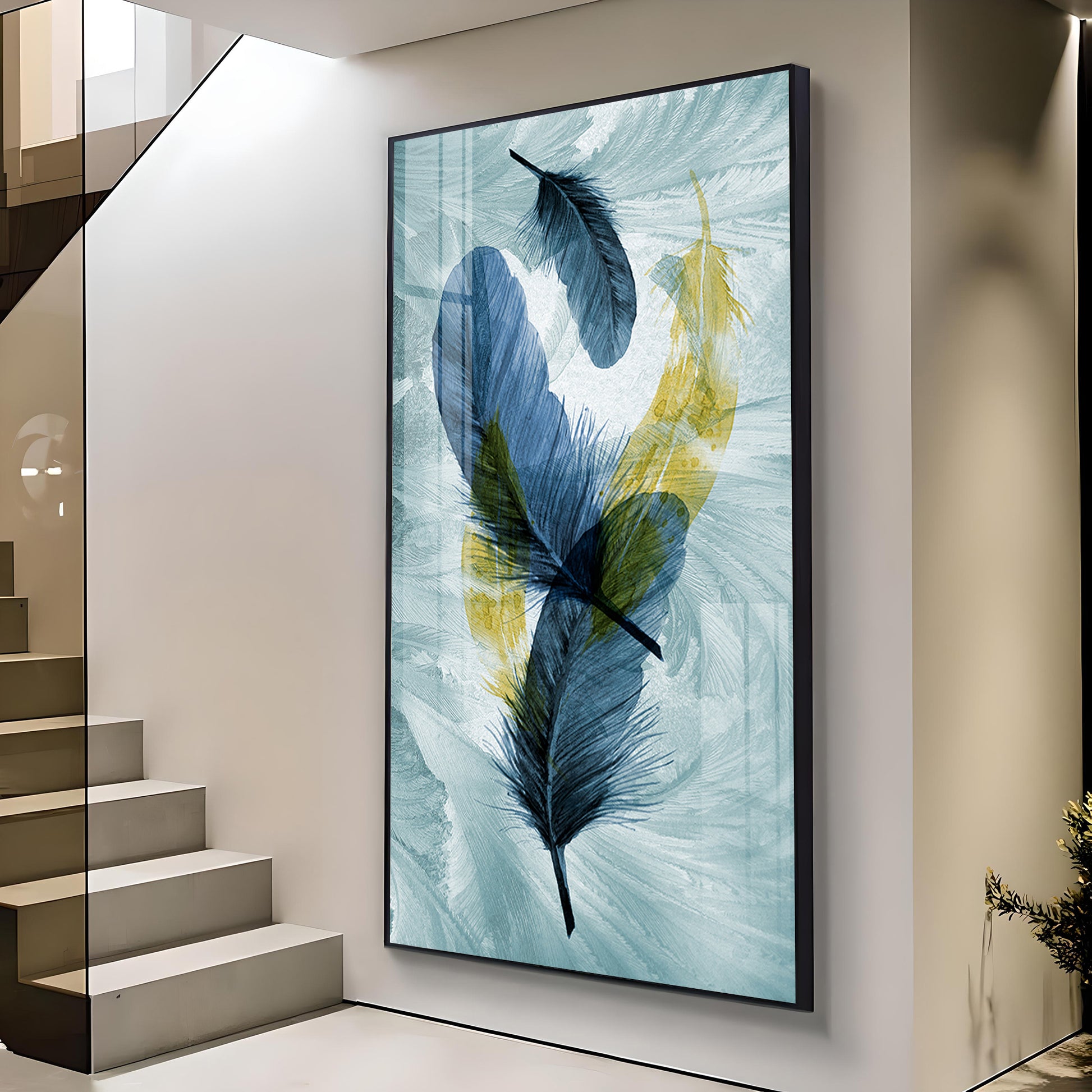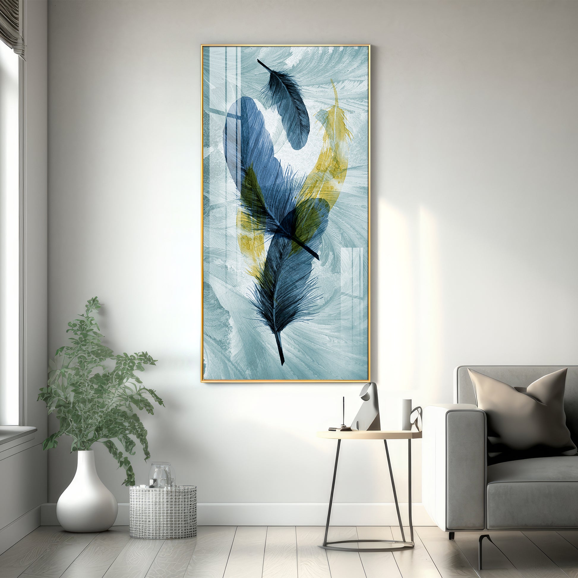 Celestial Plume Glass Finish Vertical Wall Art