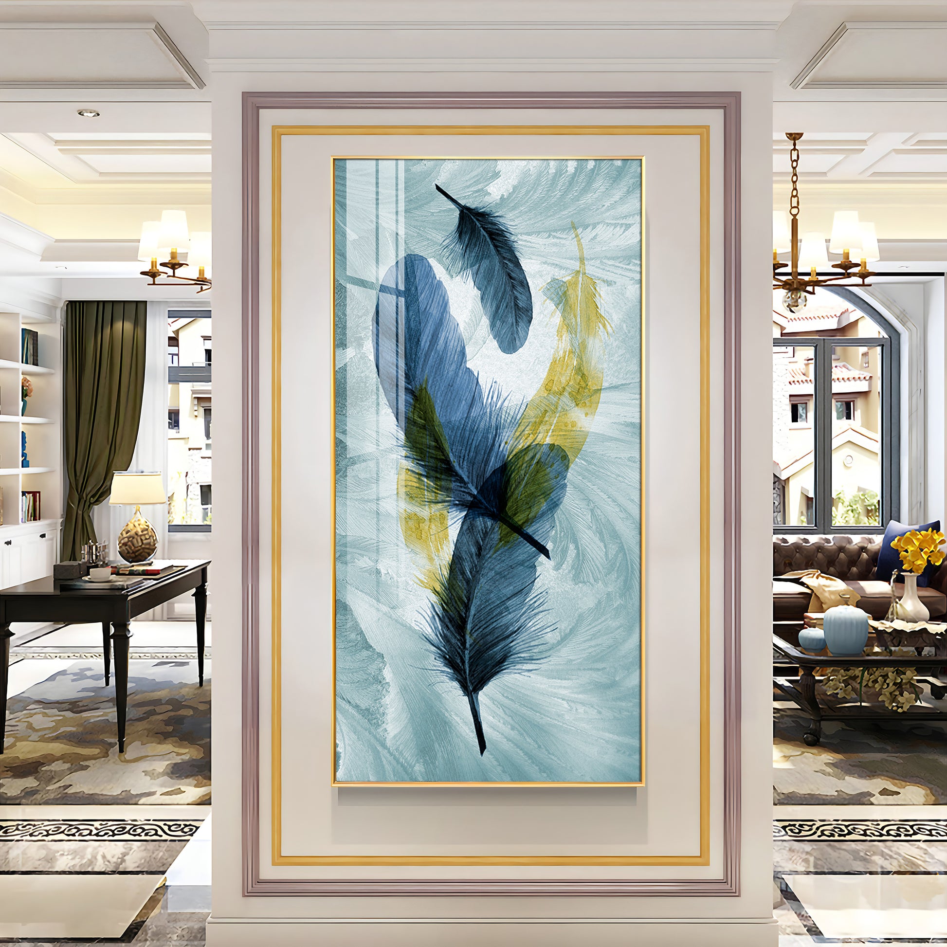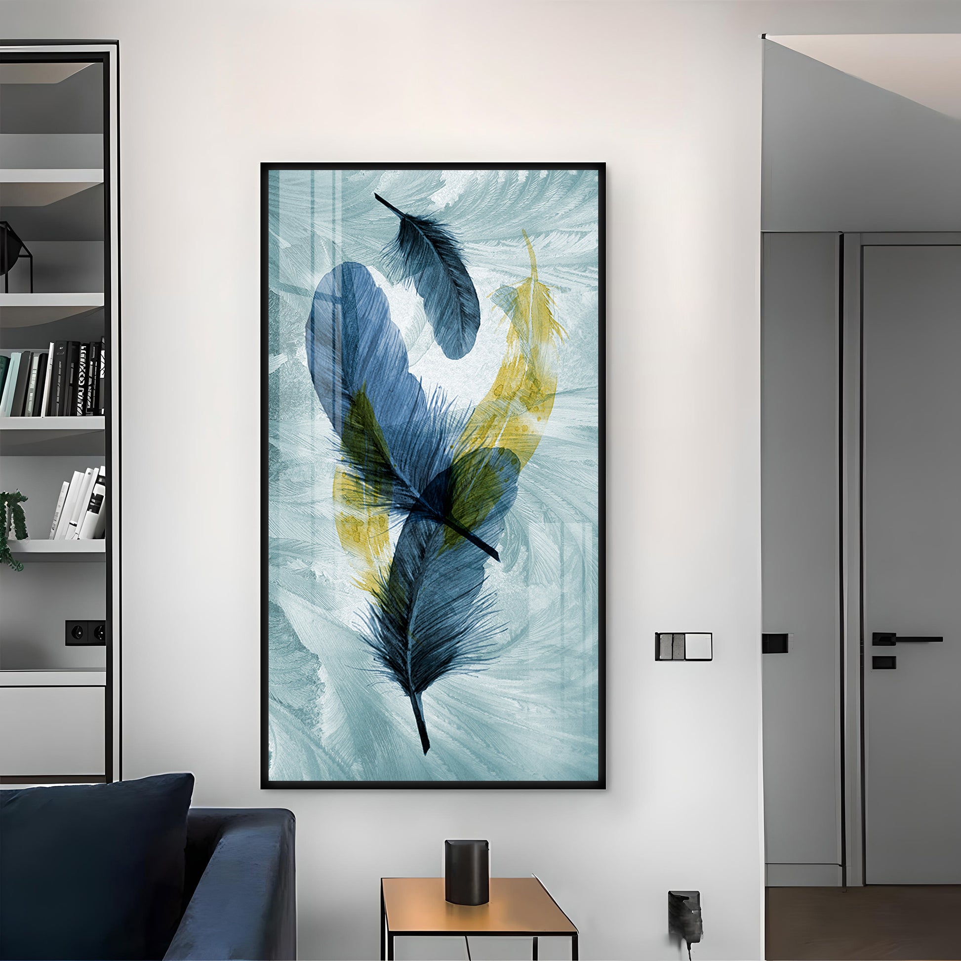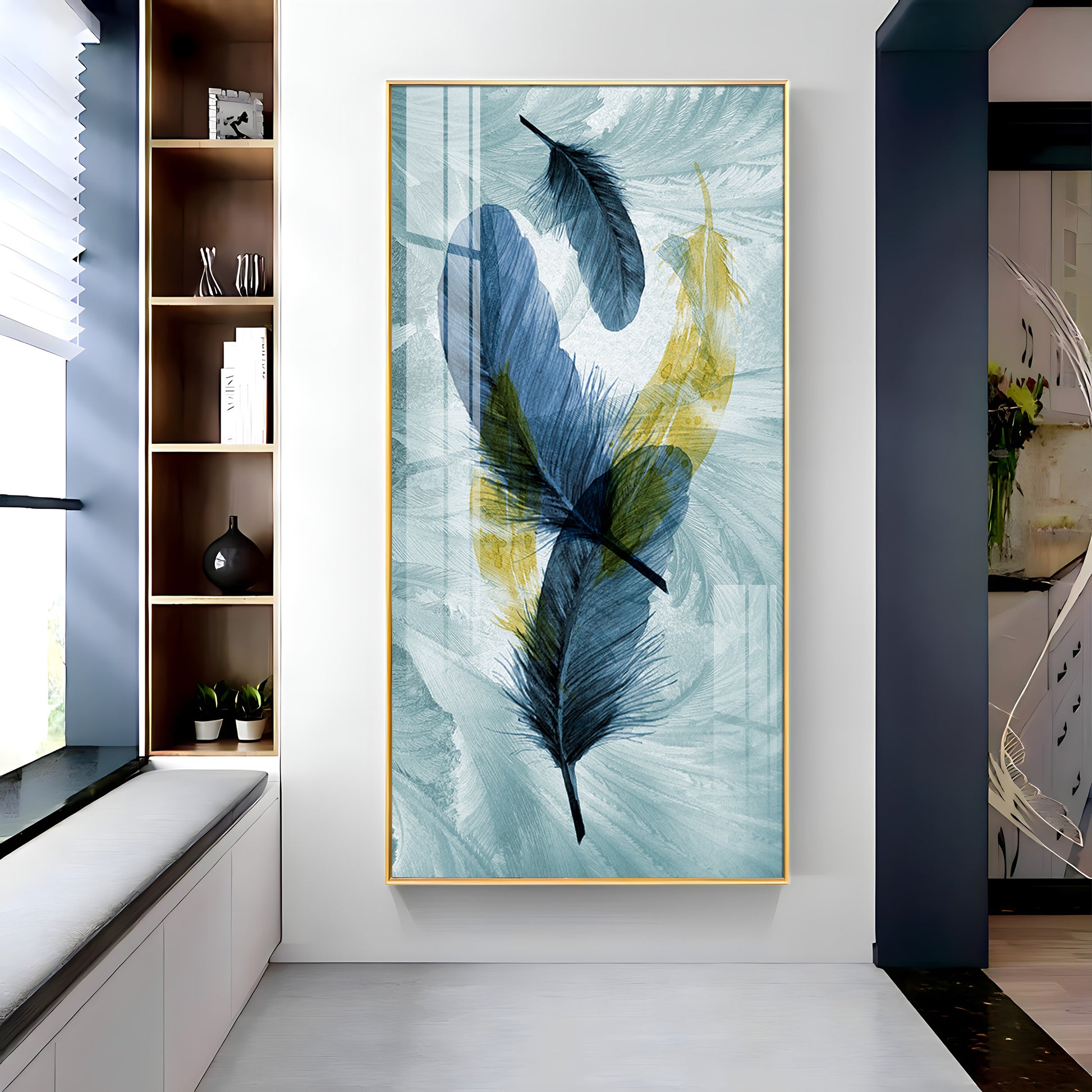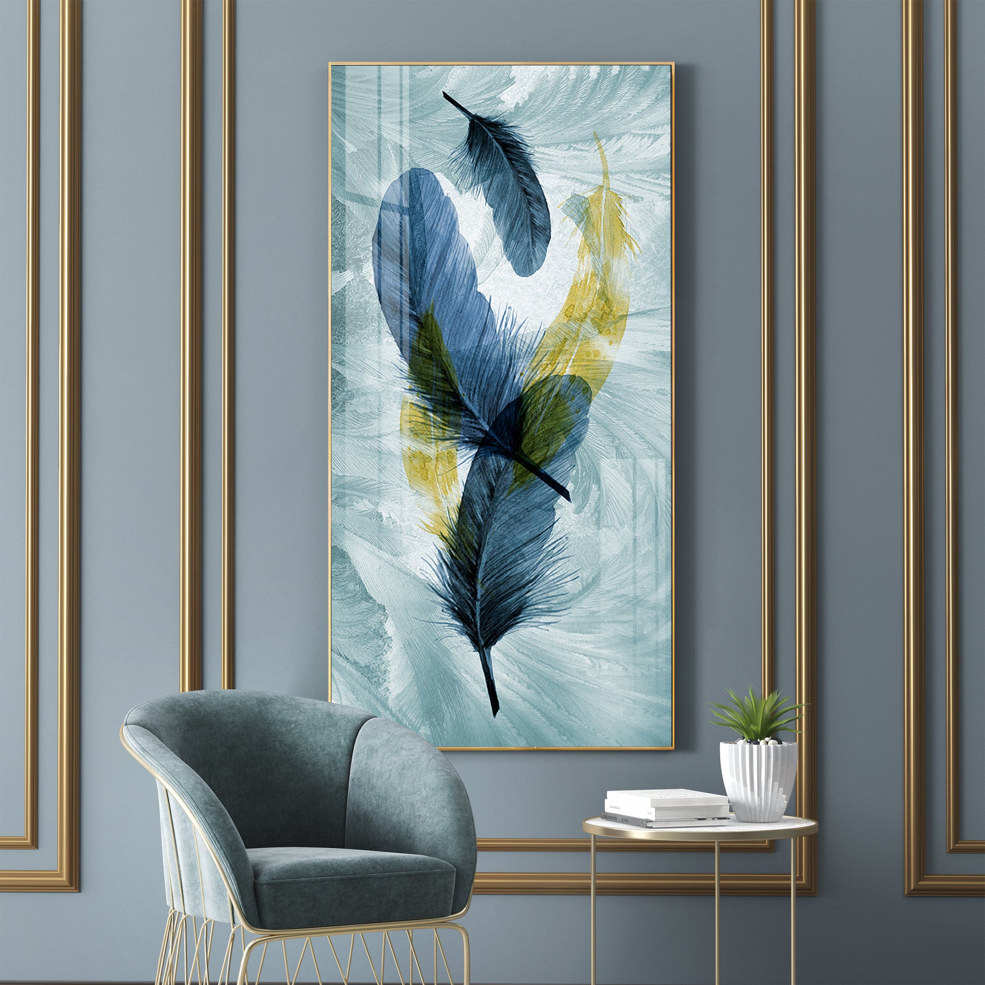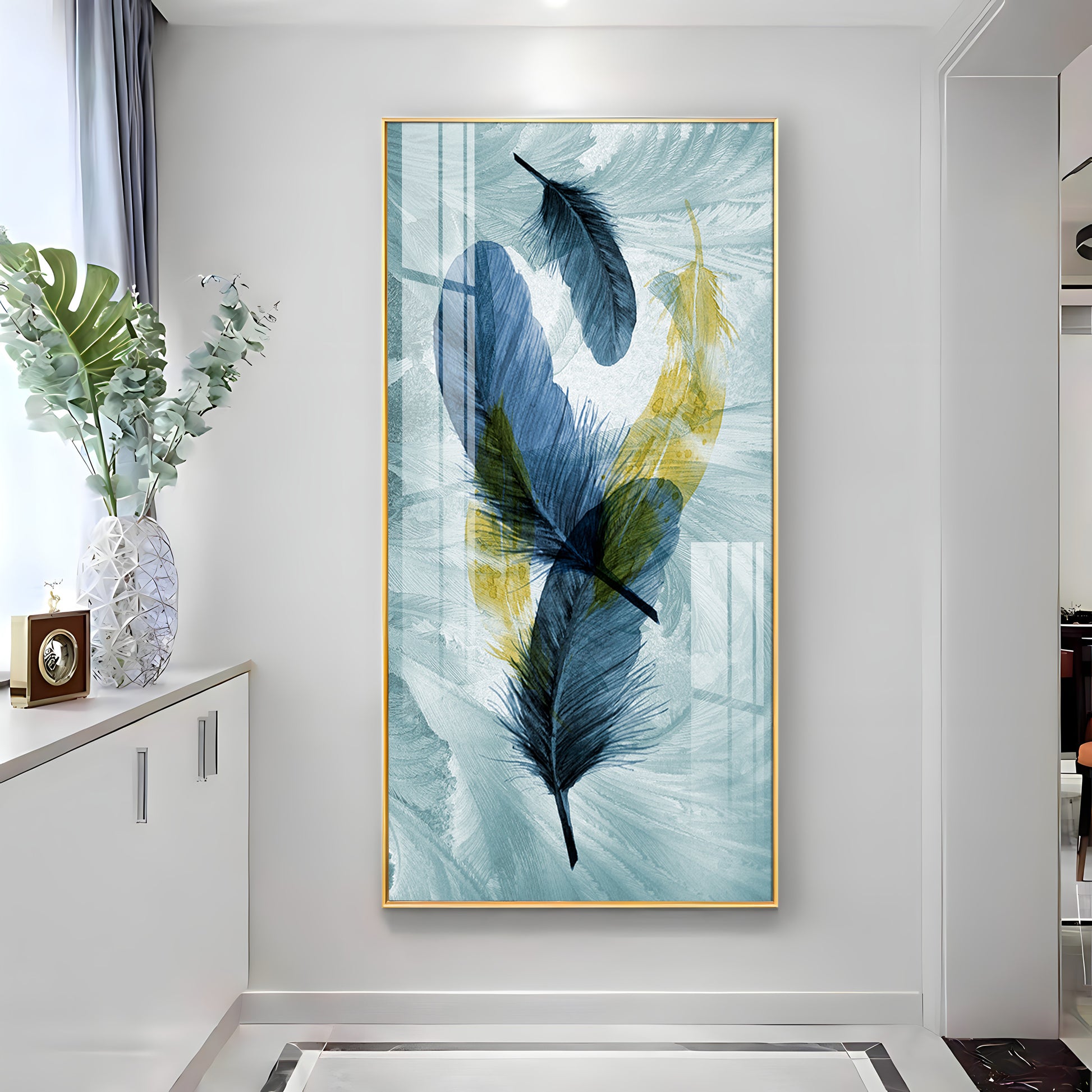 Celestial Plume Glass Finish Vertical Wall Art