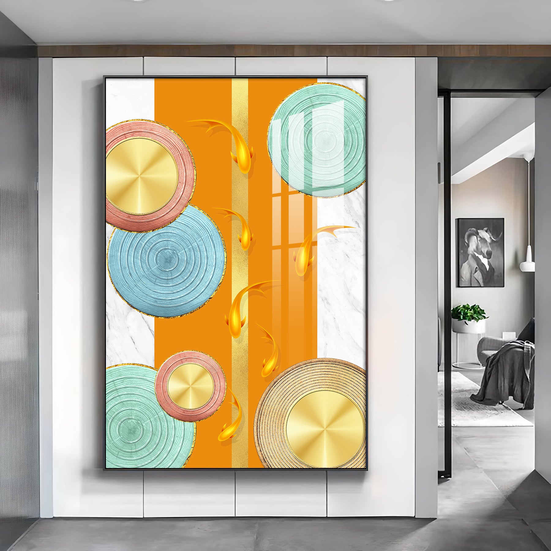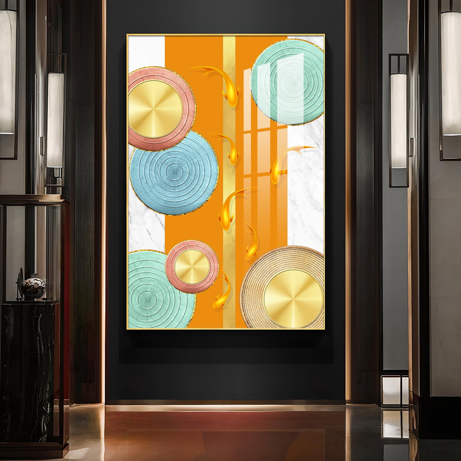 Chromatic Orb Glass Finish Vertical Wall Art