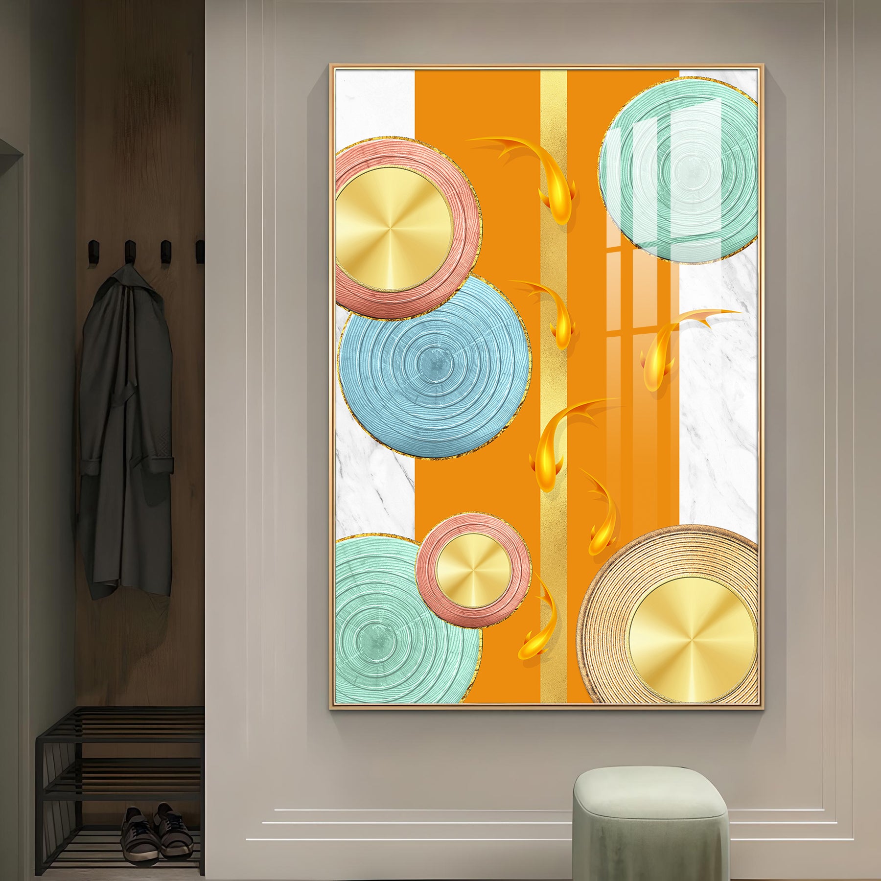 Our Framed glass finish wall art is easy to hang. The metal hooks are included in the box of your ordered wall art. You can simply mount it to the wall you want to place.