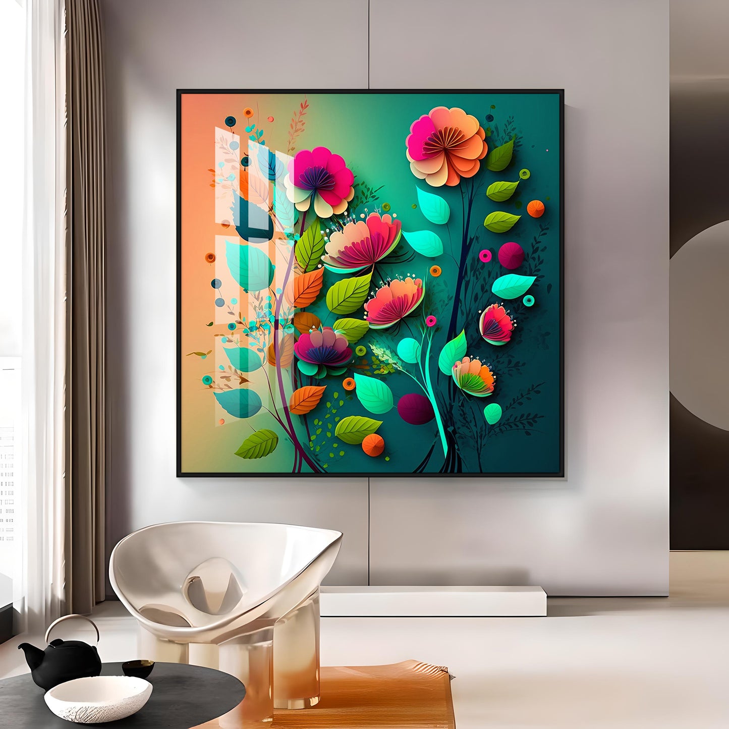 Colorful Bloom Serenity Glass Finish Square Wall Art