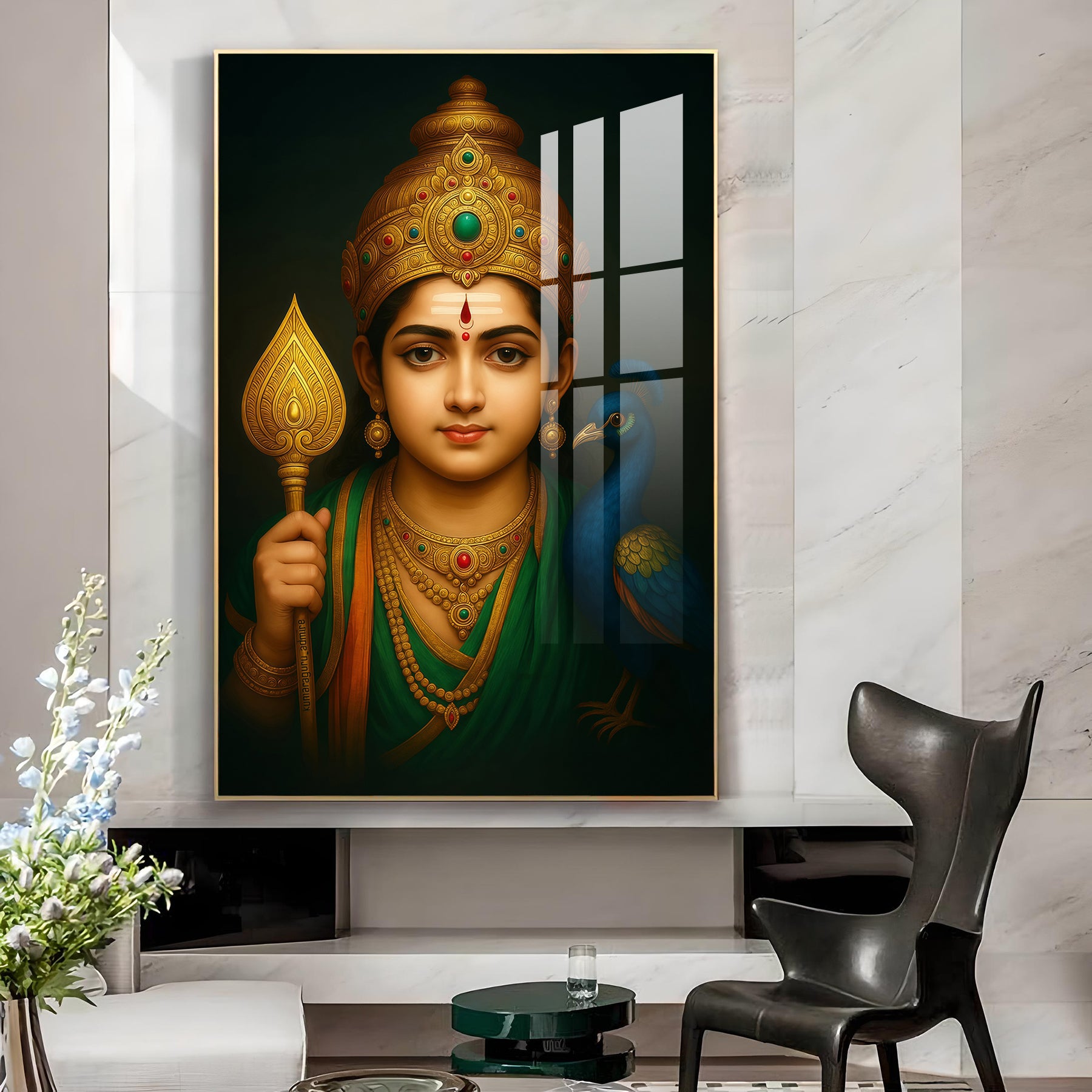 Colorful Kartikey Glass Finish Vertical Wall Art