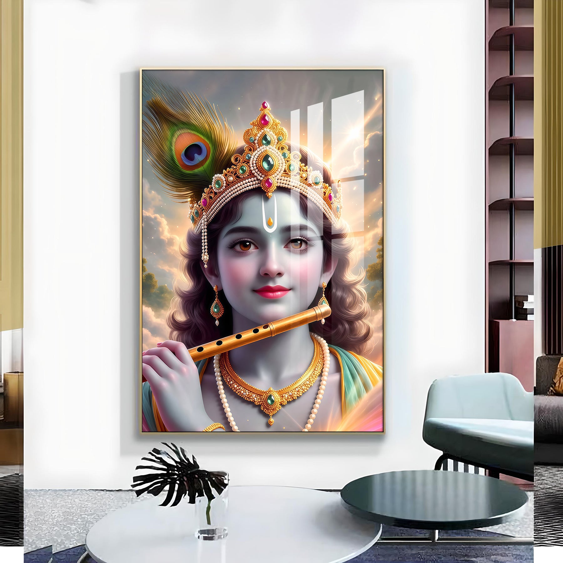 Shri Krishna Ji With Flute Glass Finish Vertical Wall Art