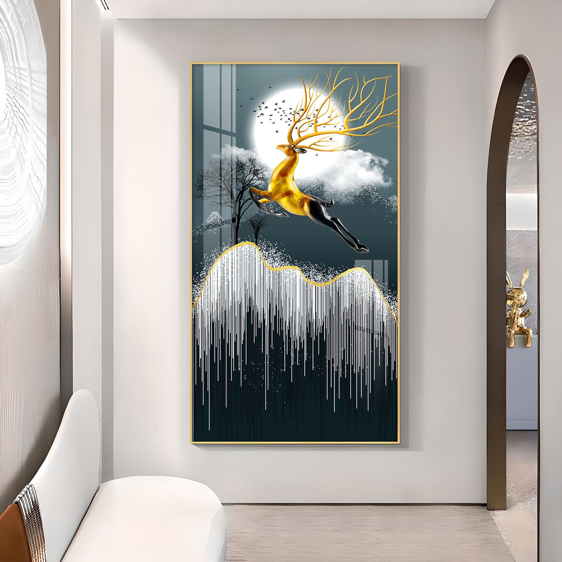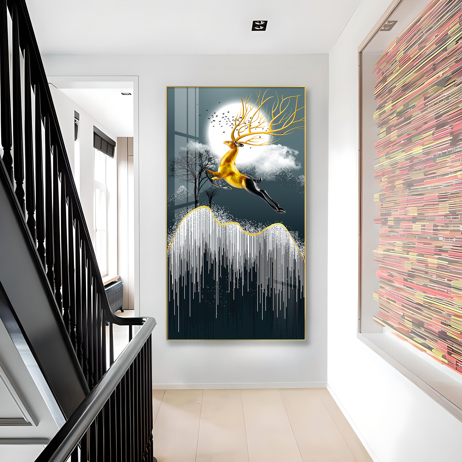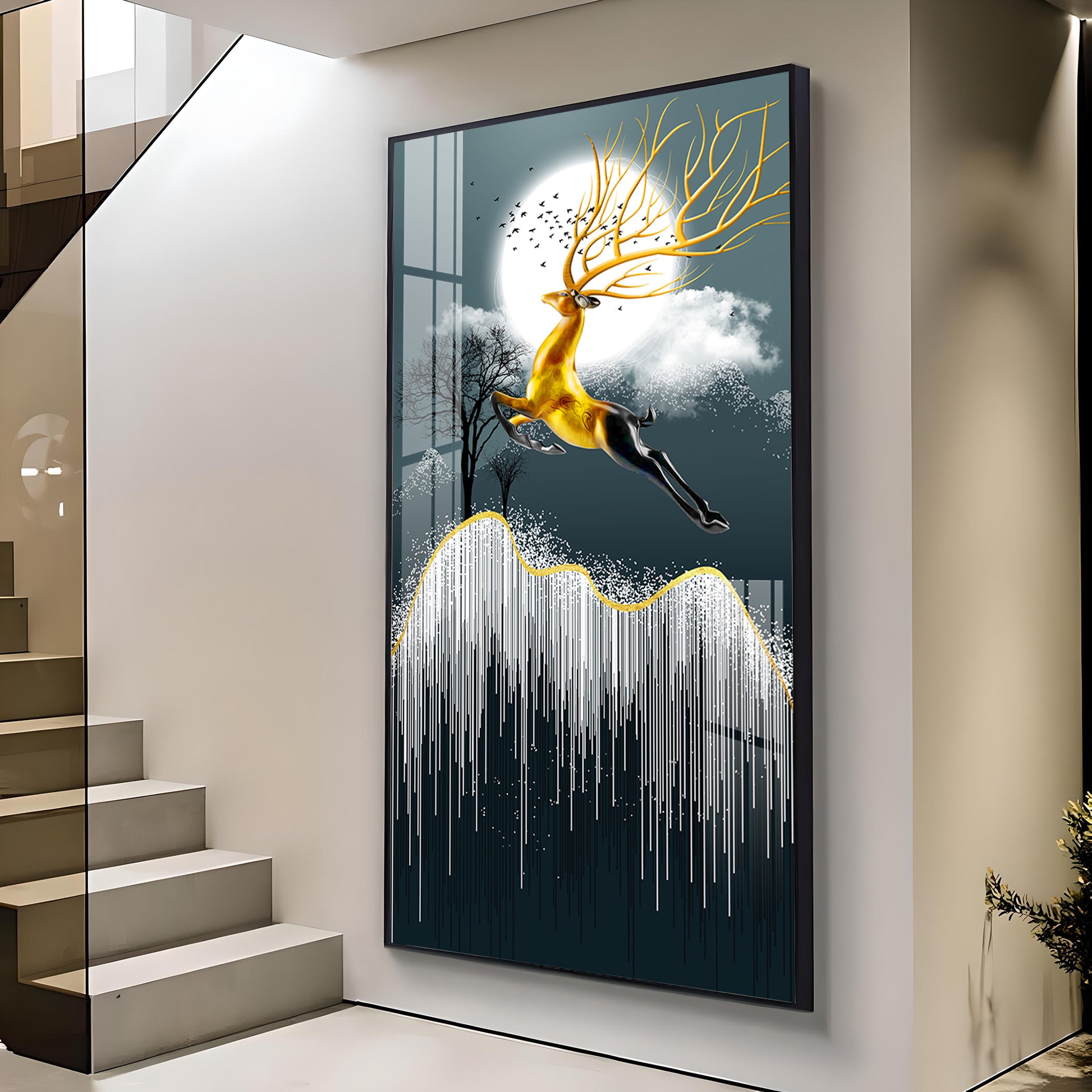 Our Framed glass finish wall art is easy to hang. The metal hooks are included in the box of your ordered wall art. You can simply mount it to the wall you want to place.