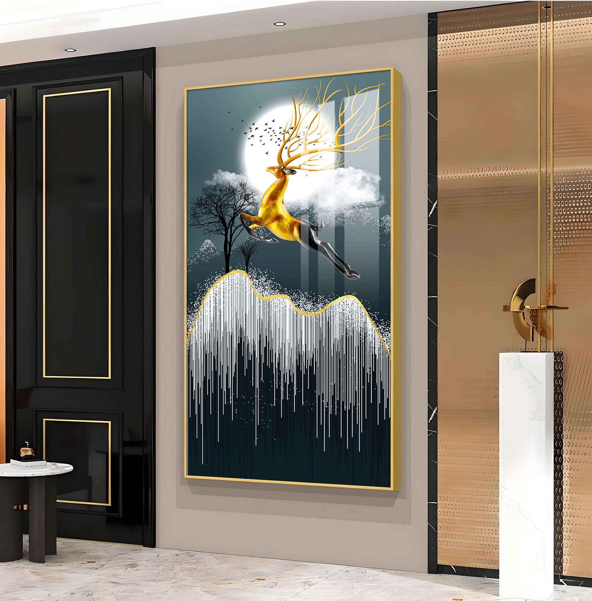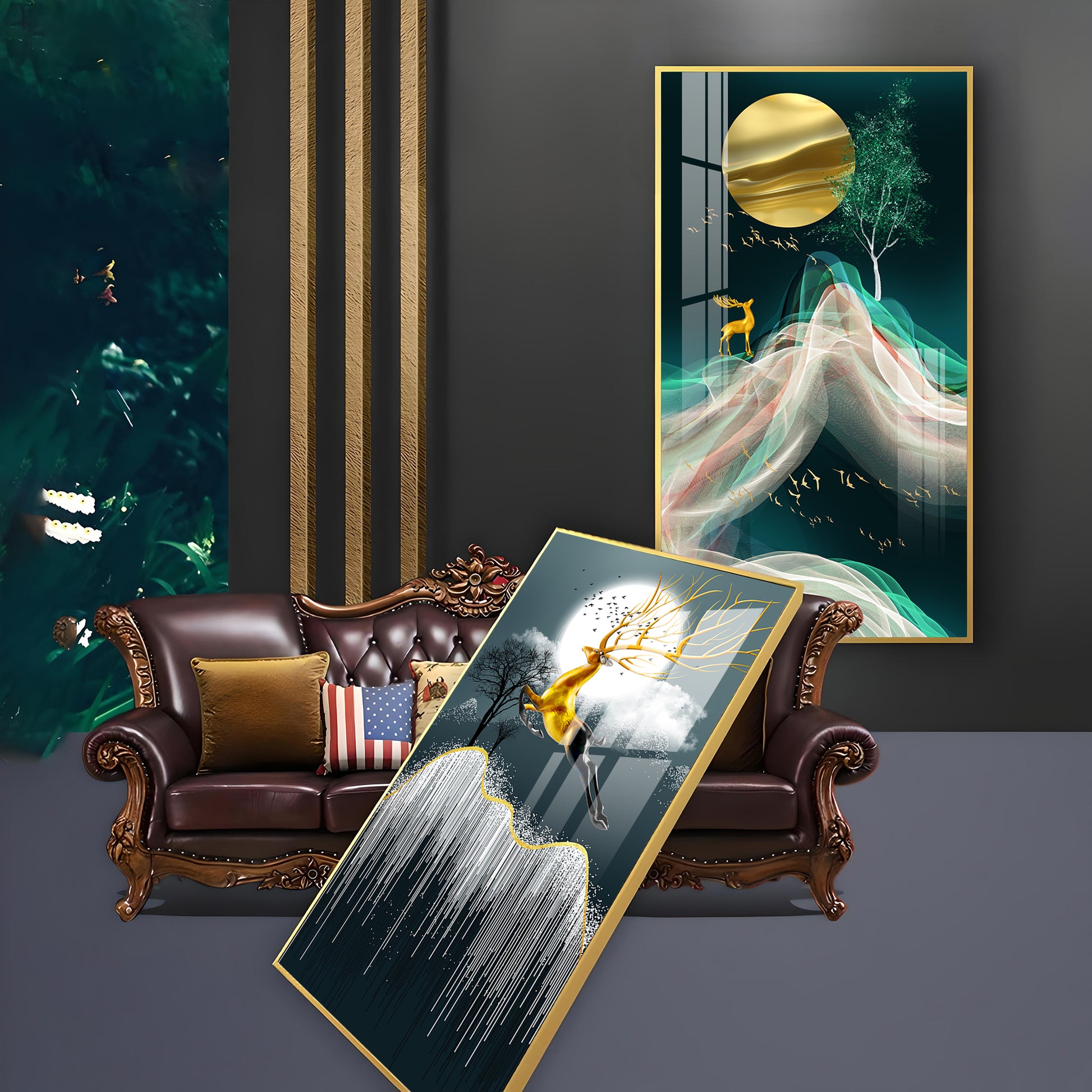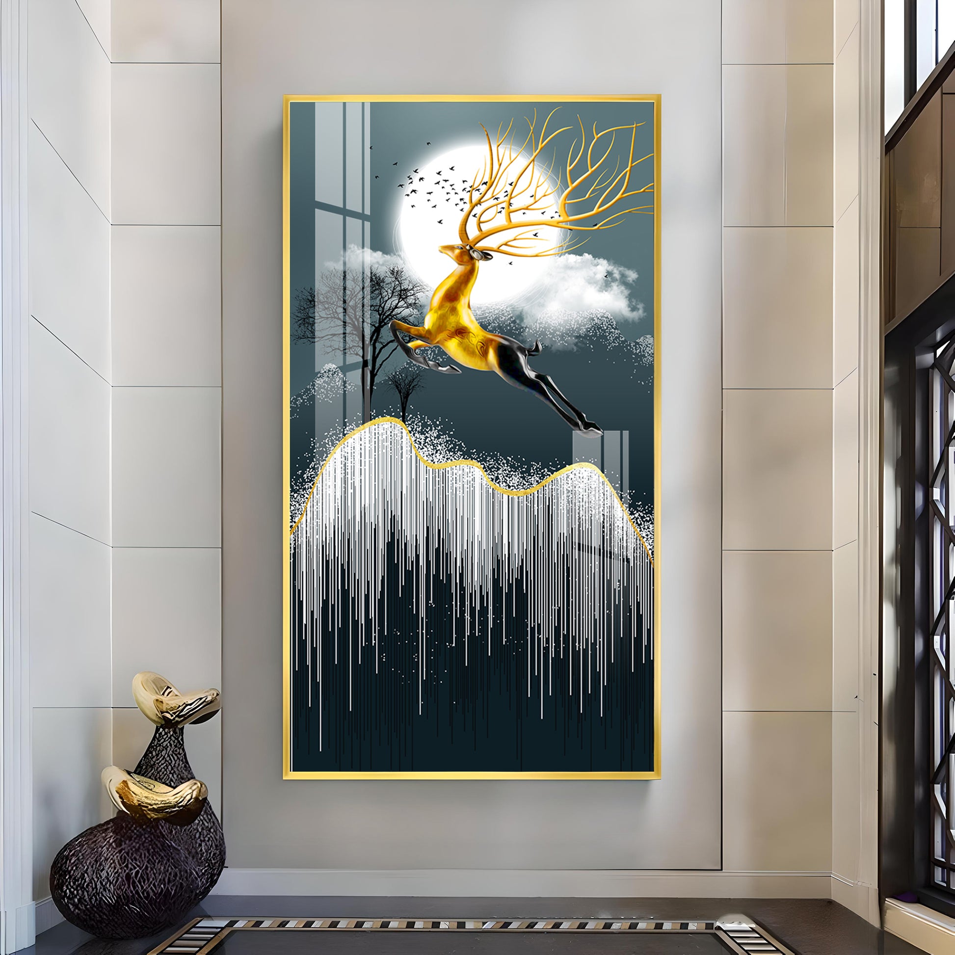 Our Framed glass finish wall art is easy to hang. The metal hooks are included in the box of your ordered wall art. You can simply mount it to the wall you want to place.