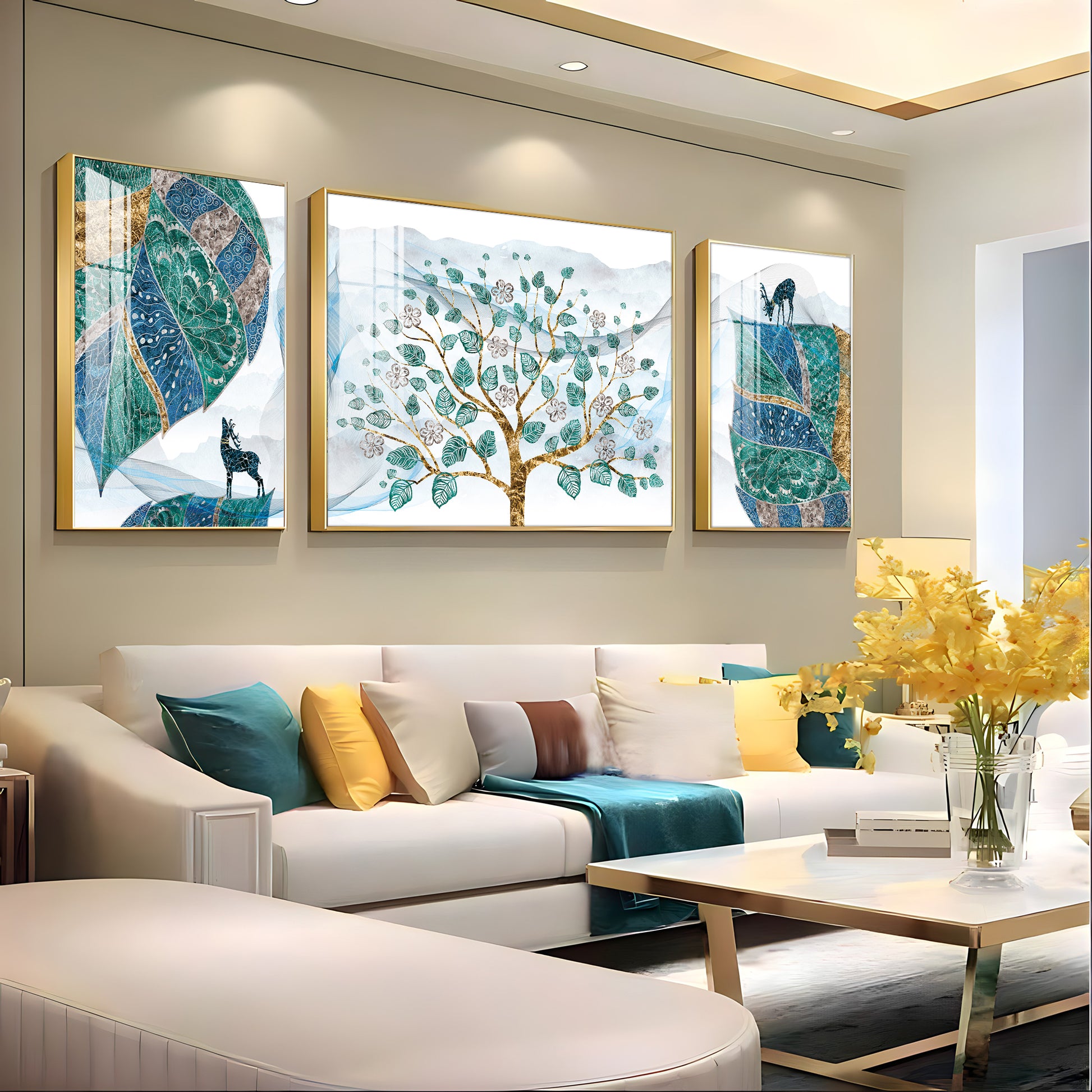 Deer & Tree Elegance Glass Finish Wall Art (Set Of 3)
