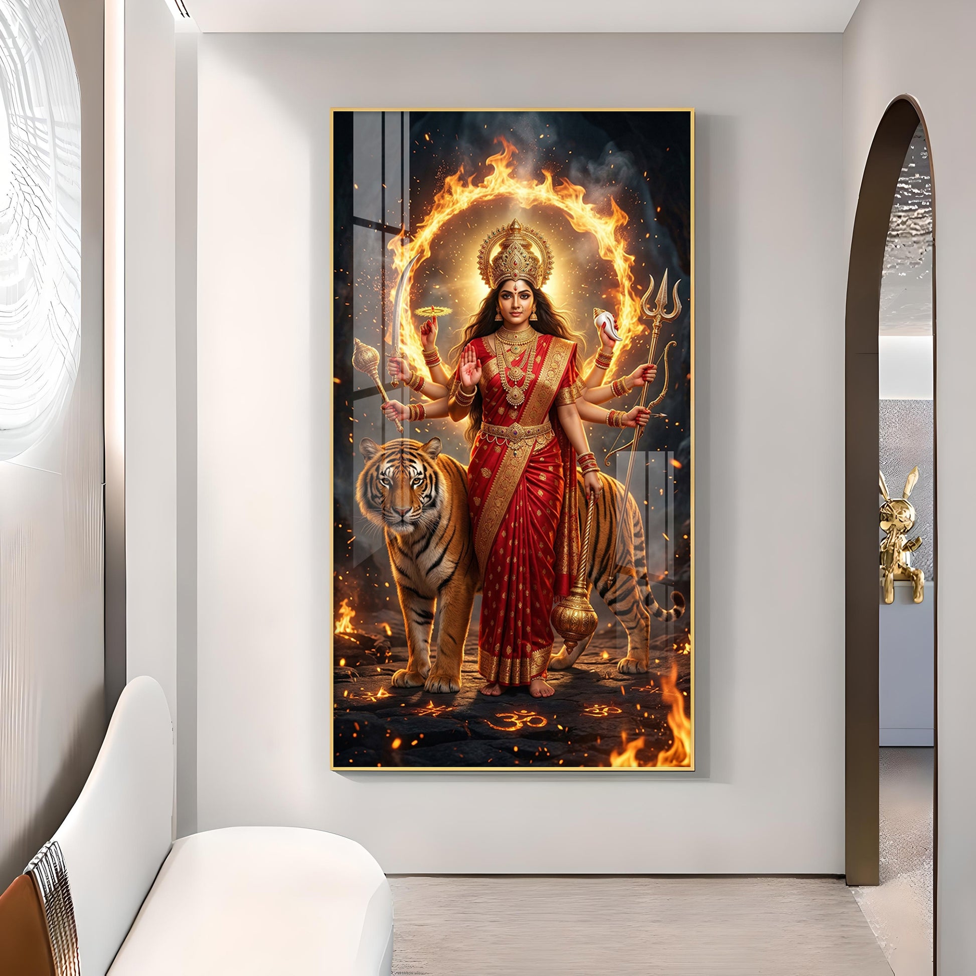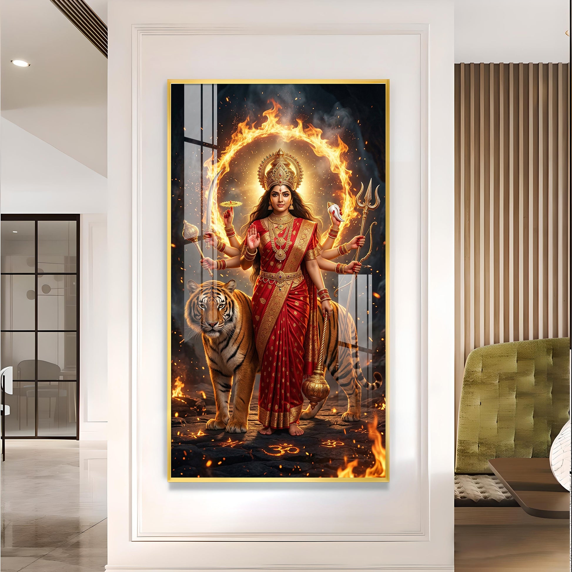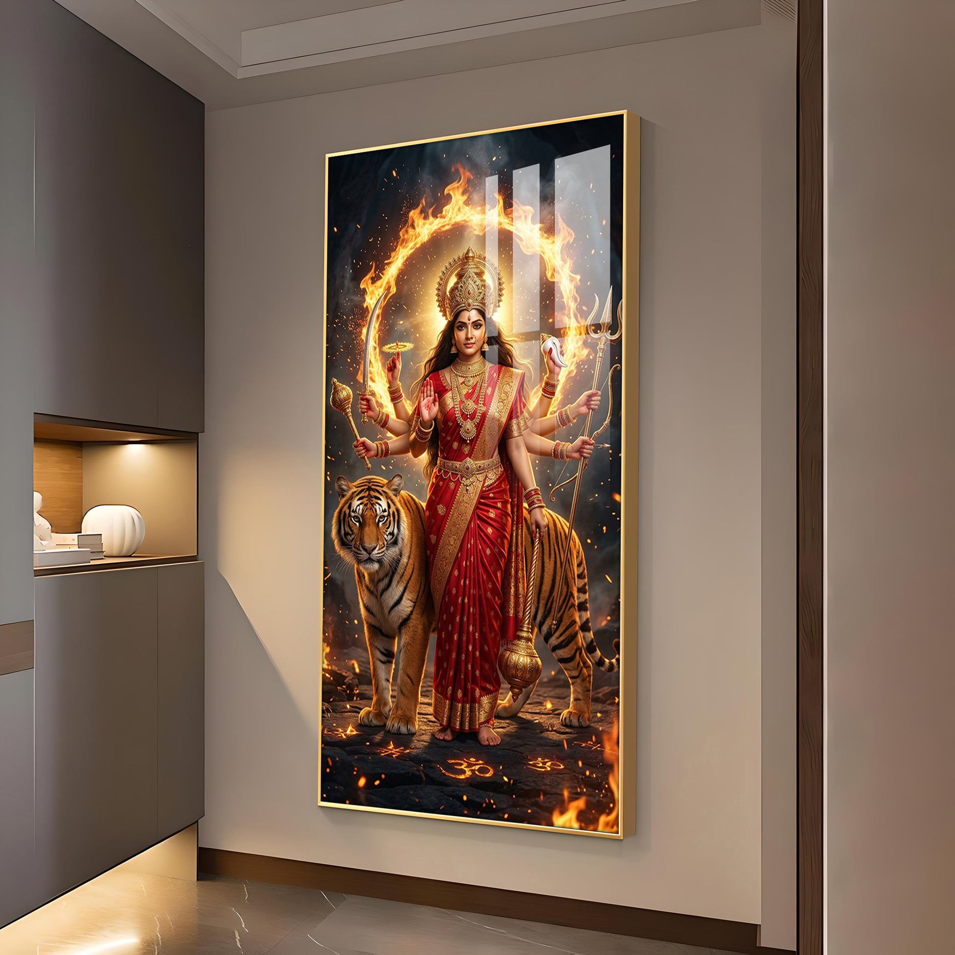 Divine Maa Durga Glass Finish Vertical Wall Art
