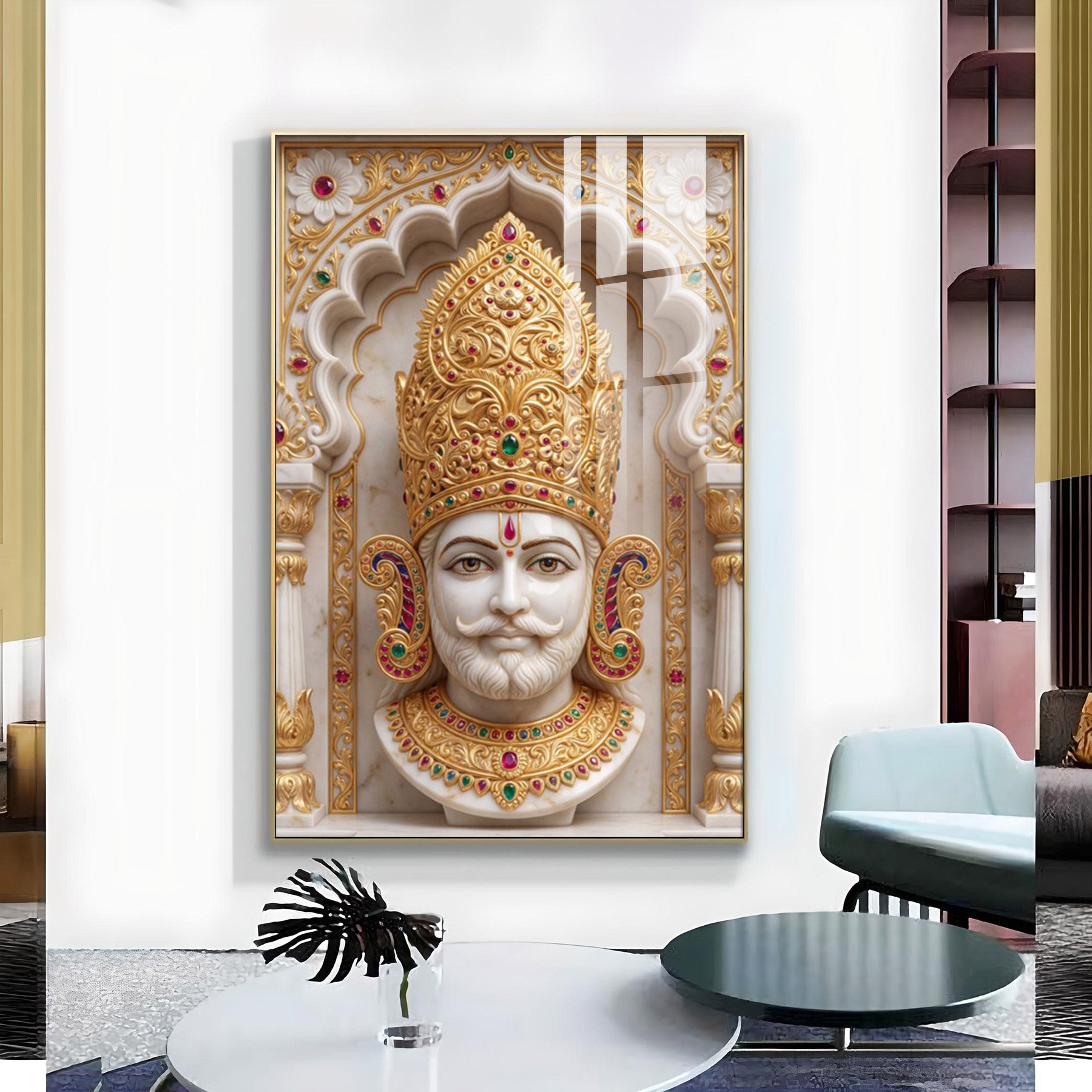 Divine Shyam Baba Glass Finish Vertical Wall Art