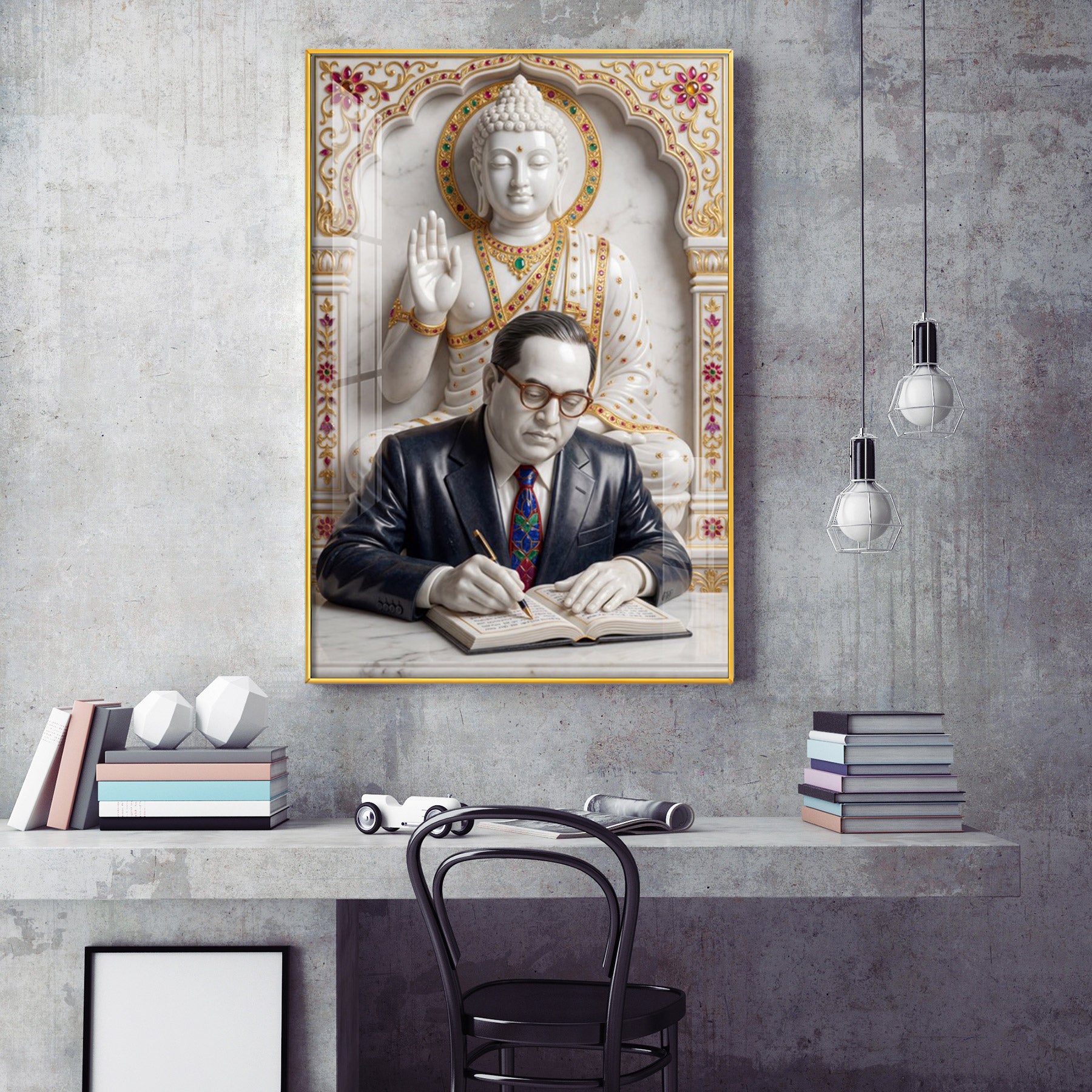 Dr. B.R. Ambedkar and Buddha Glass Finish Vertical Wall Art