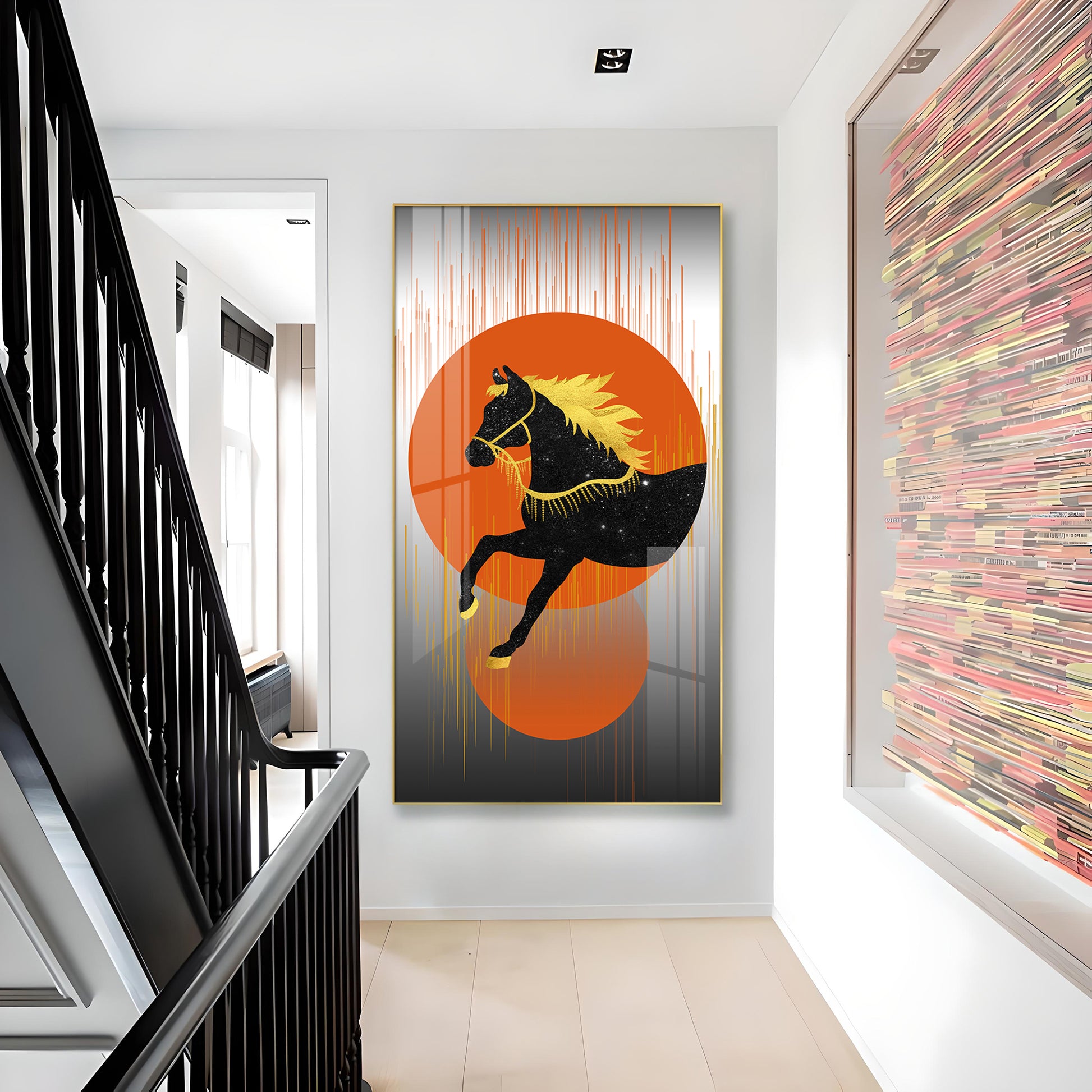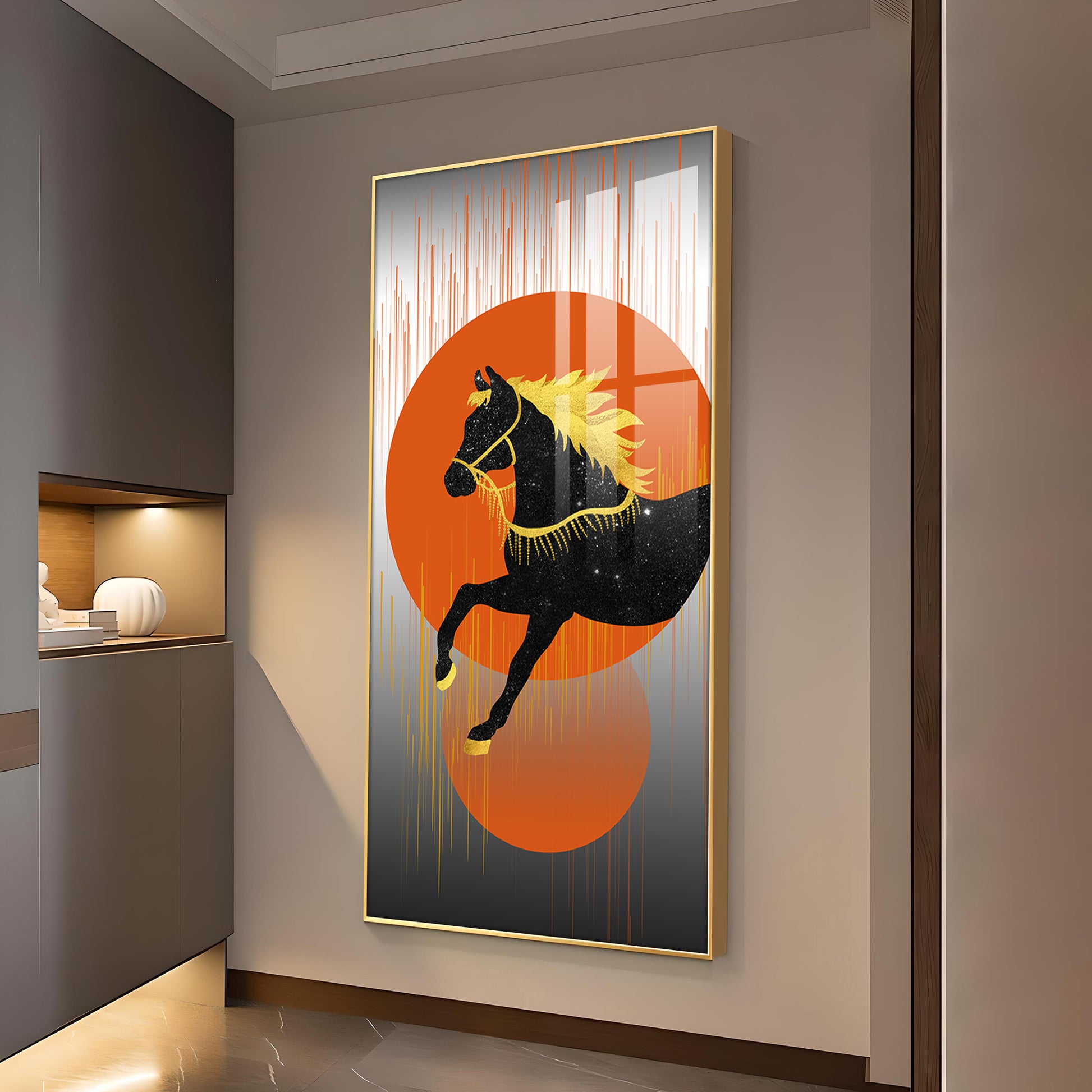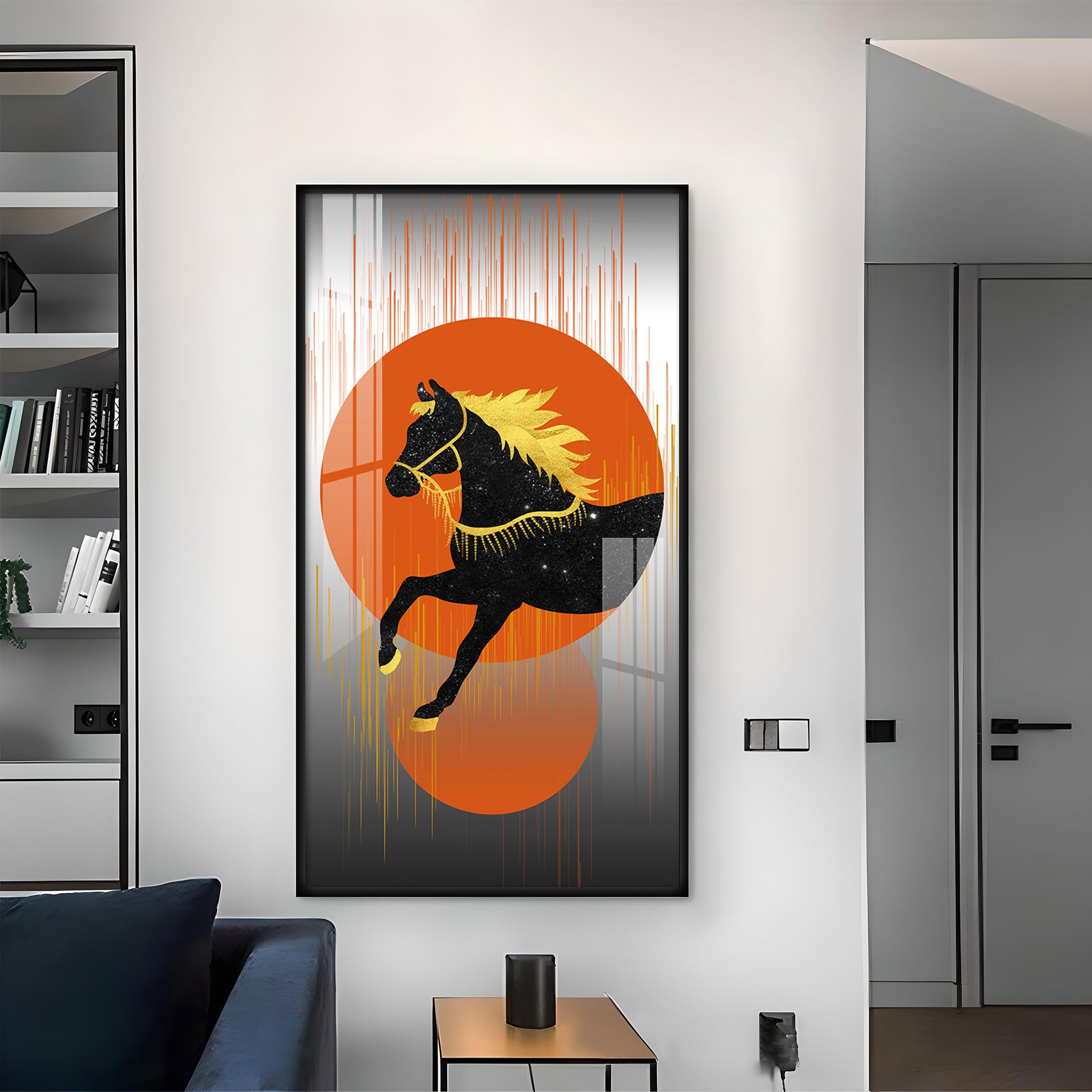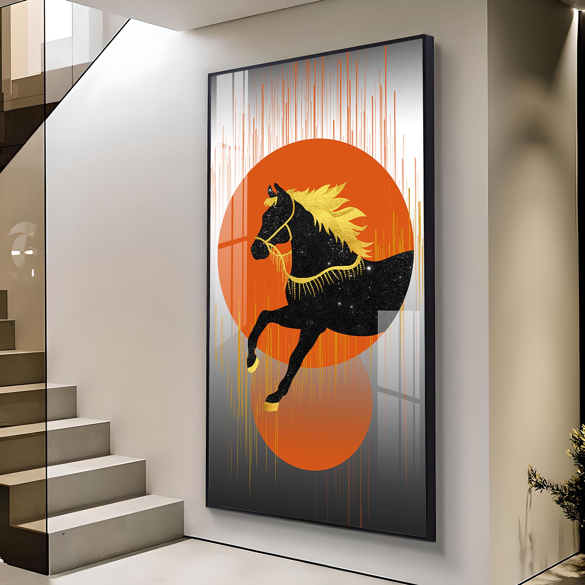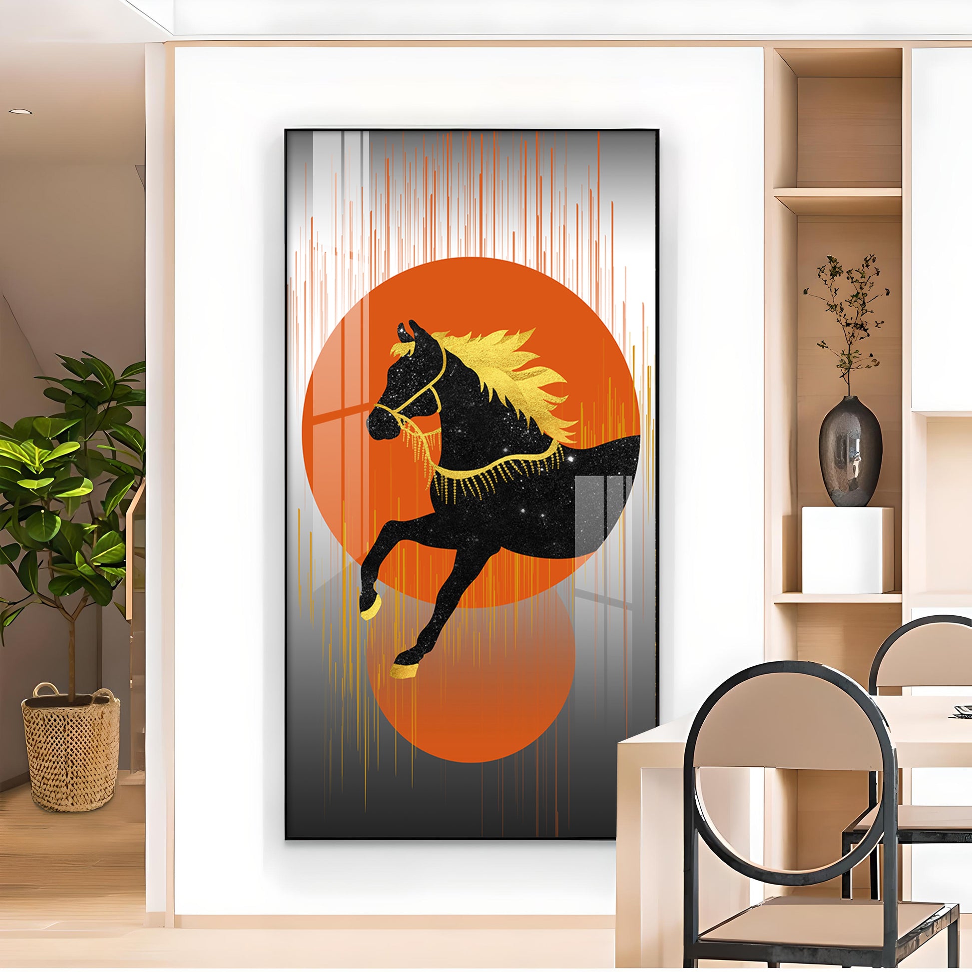 Dual Mane Horse Series Glass Finish Vertical Wall Art