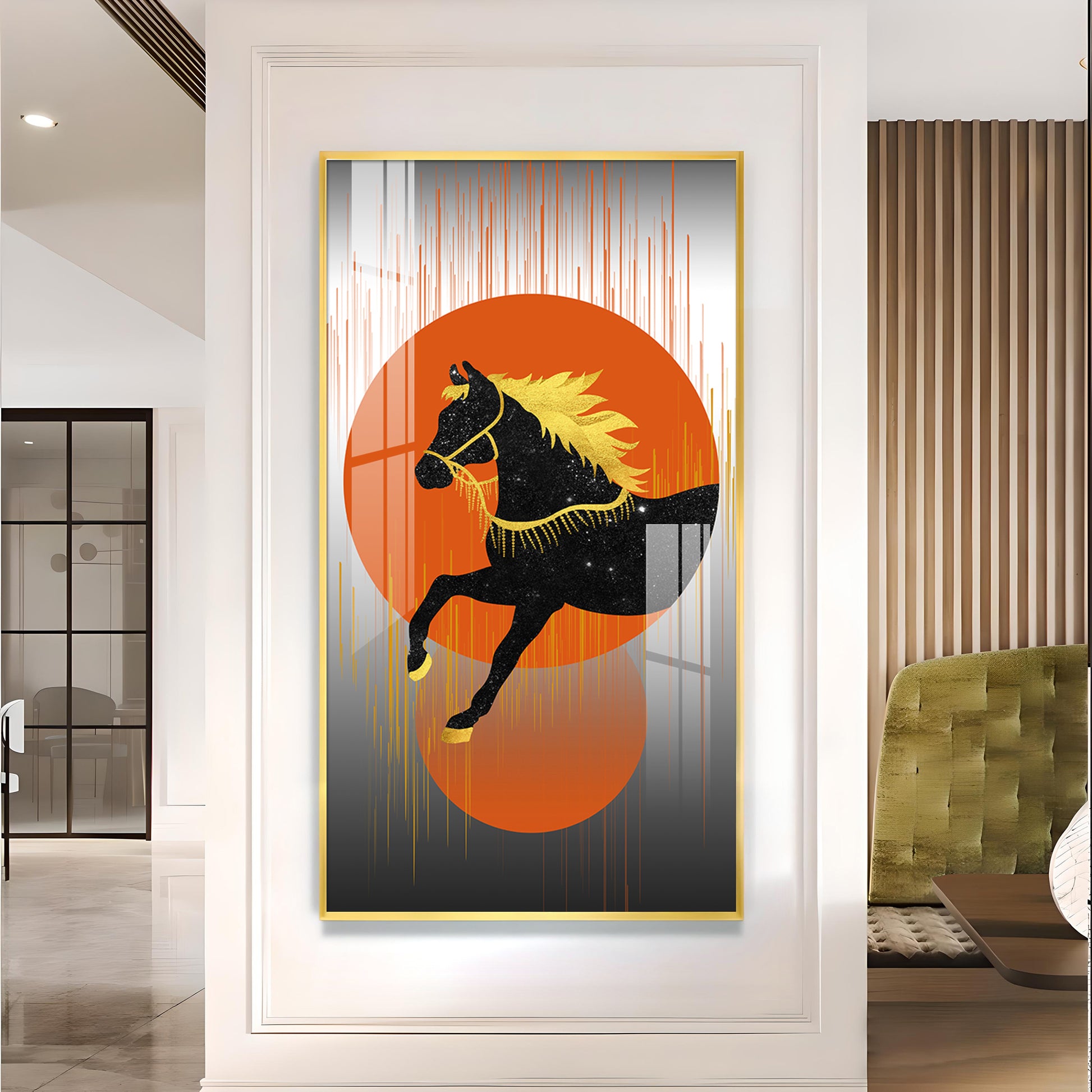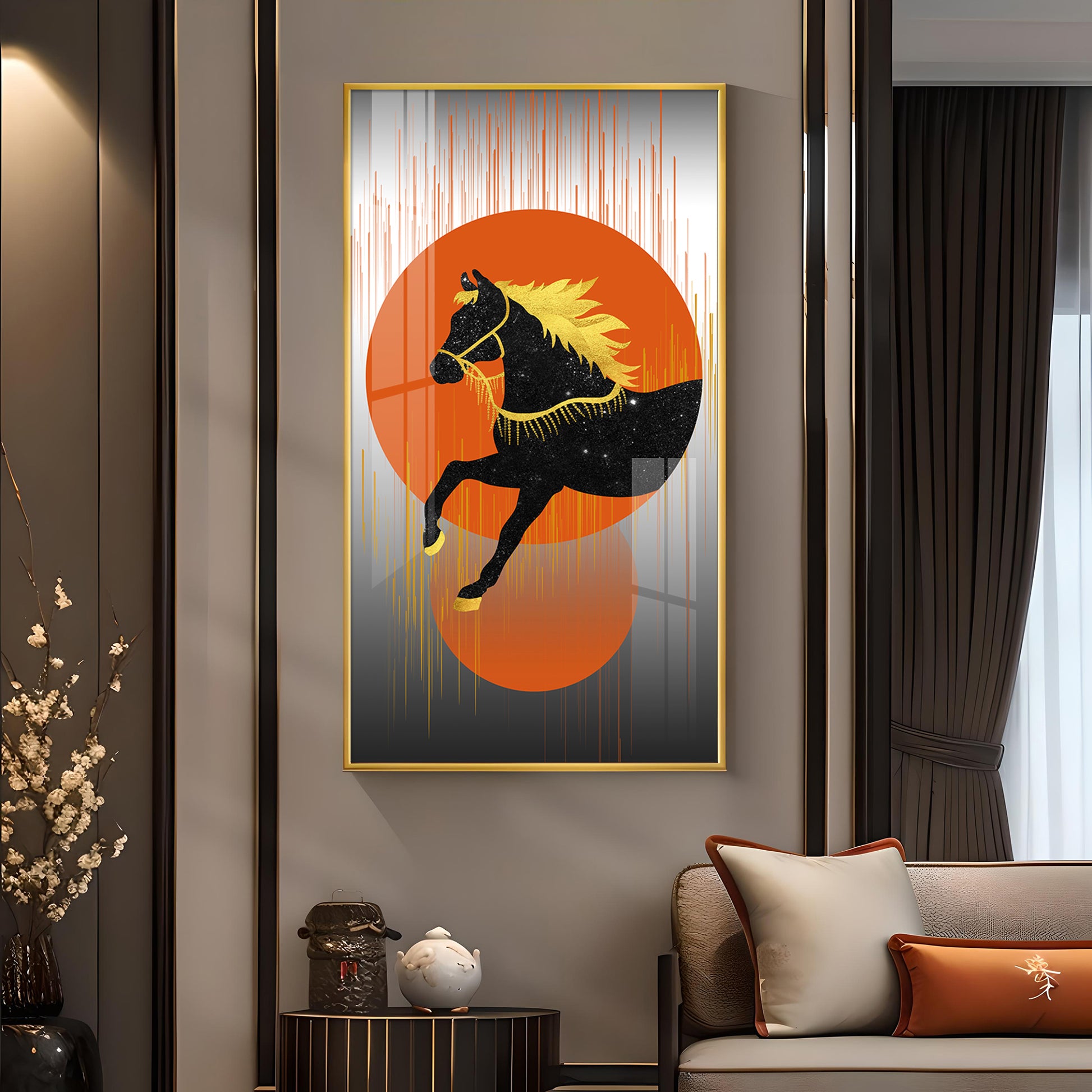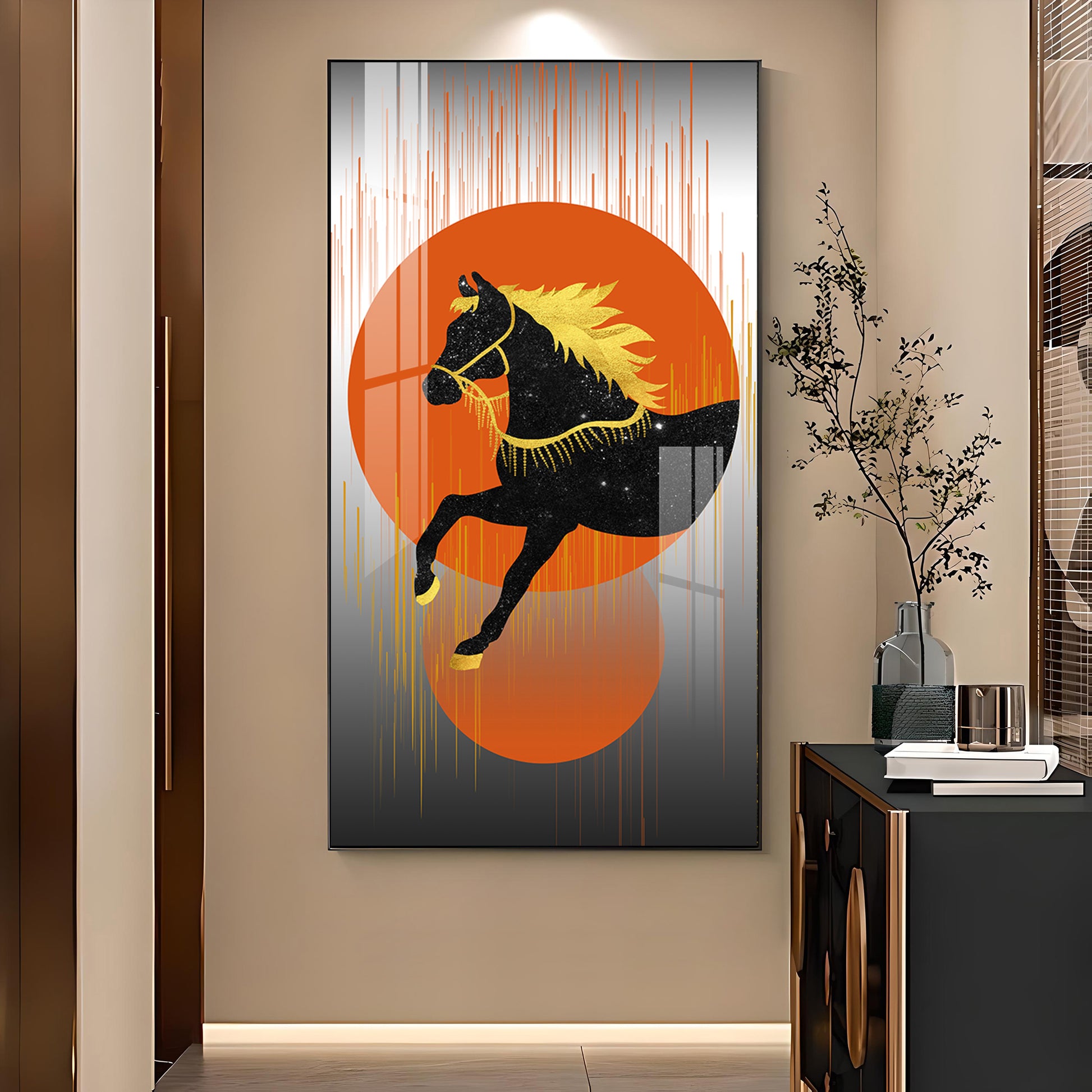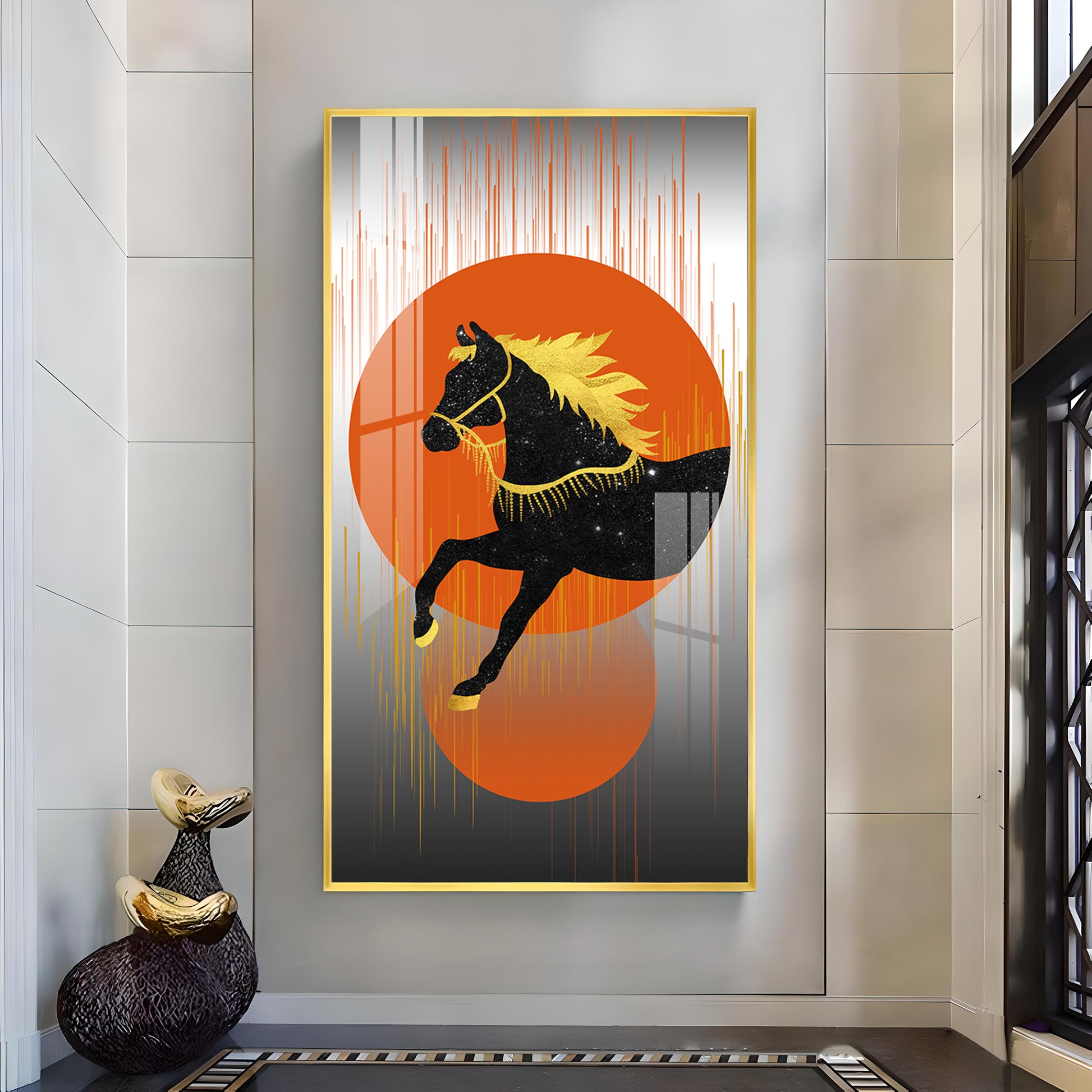 Dual Mane Horse Series Glass Finish Vertical Wall Art