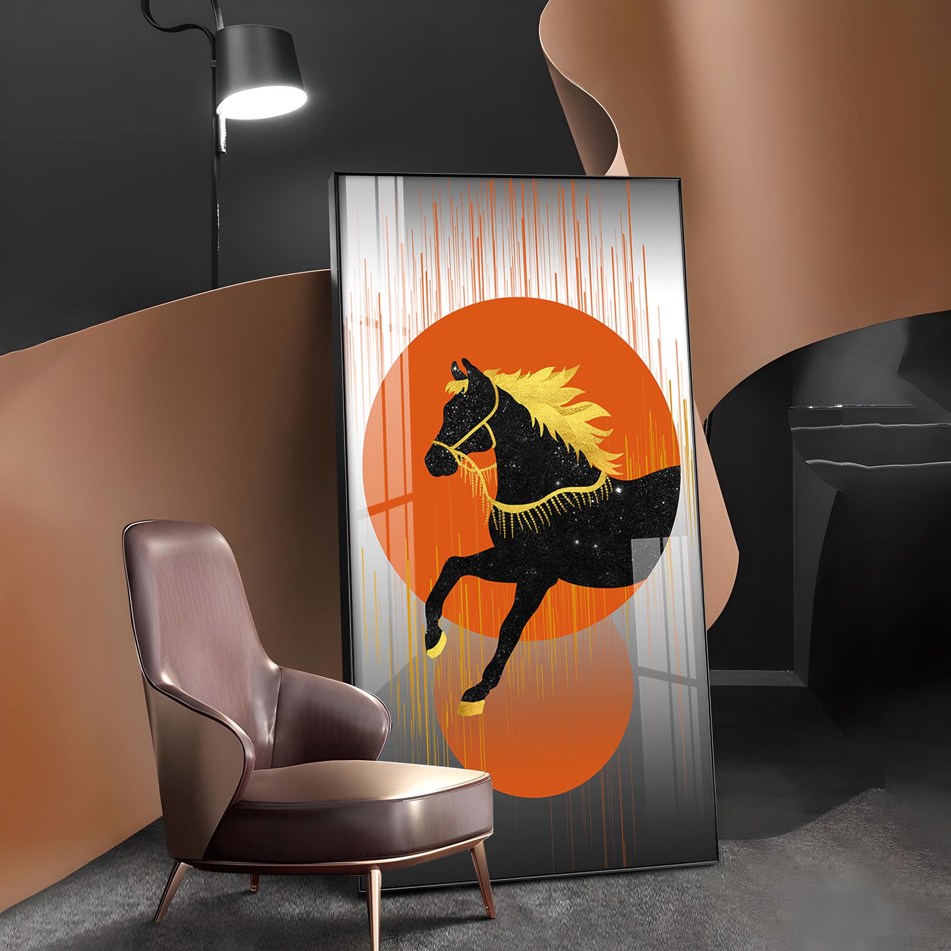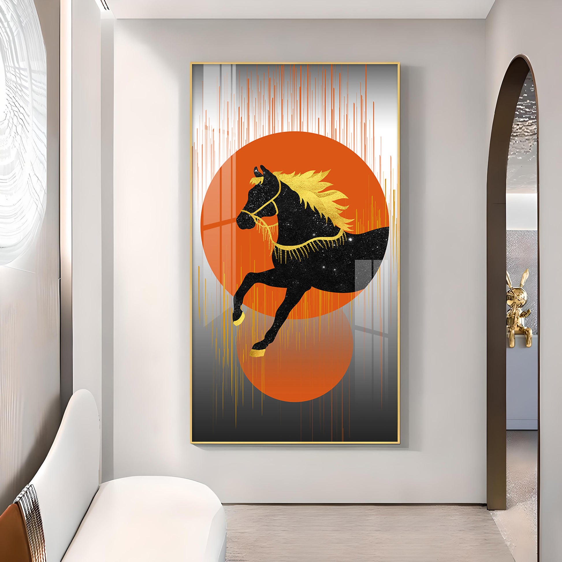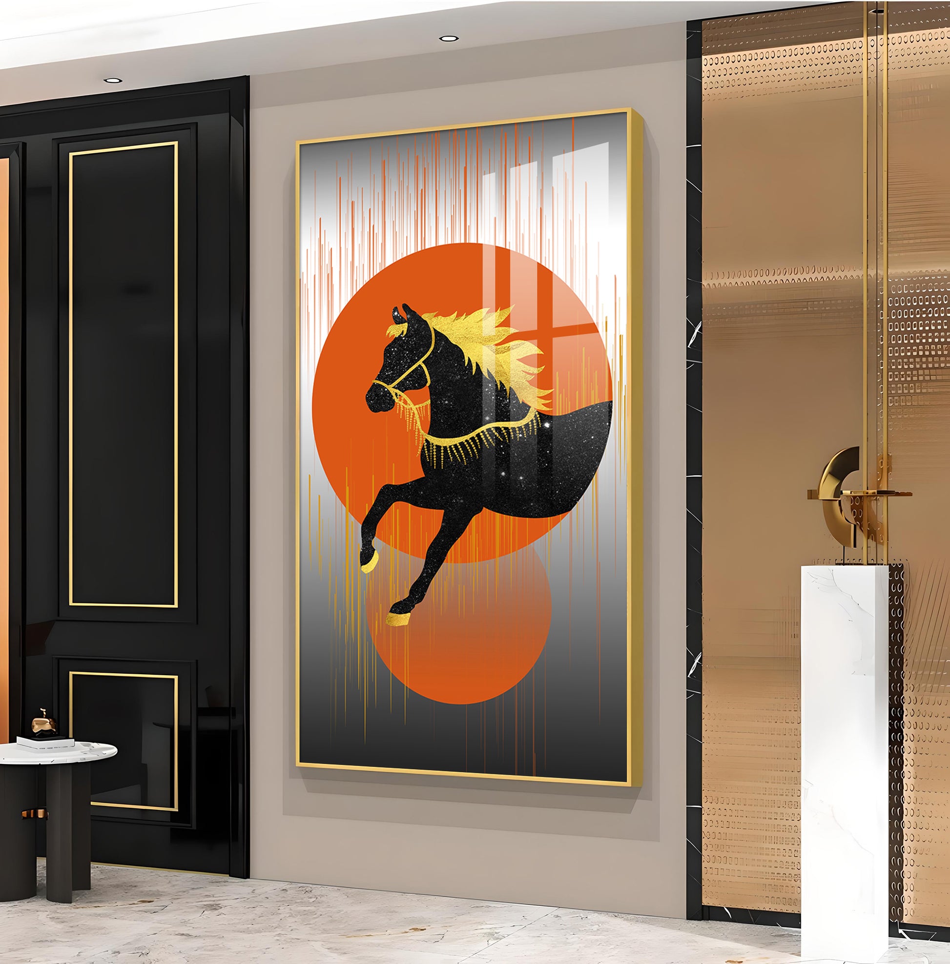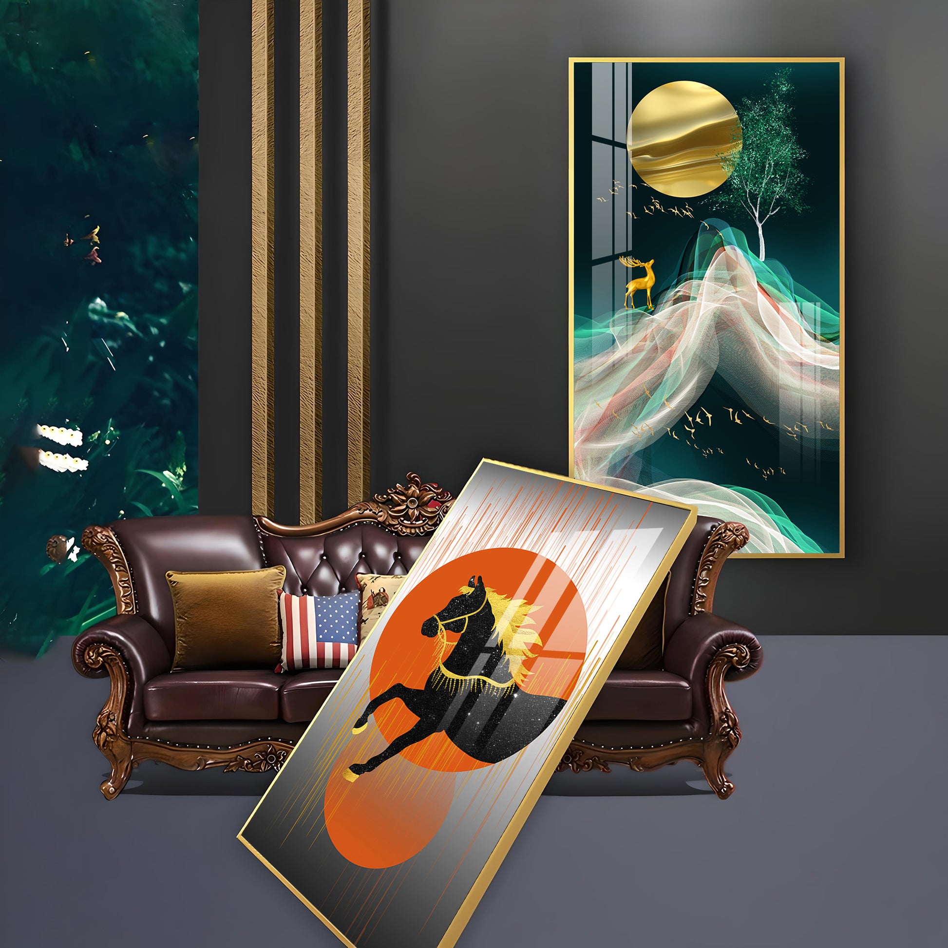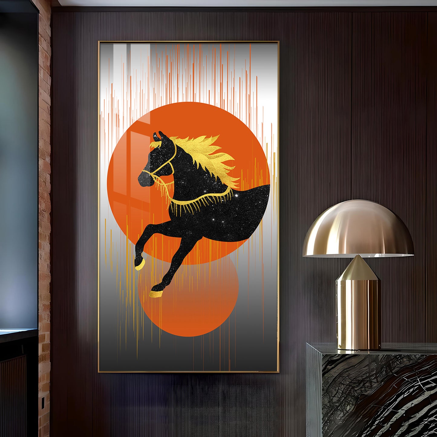 Dual Mane Horse Series Glass Finish Vertical Wall Art