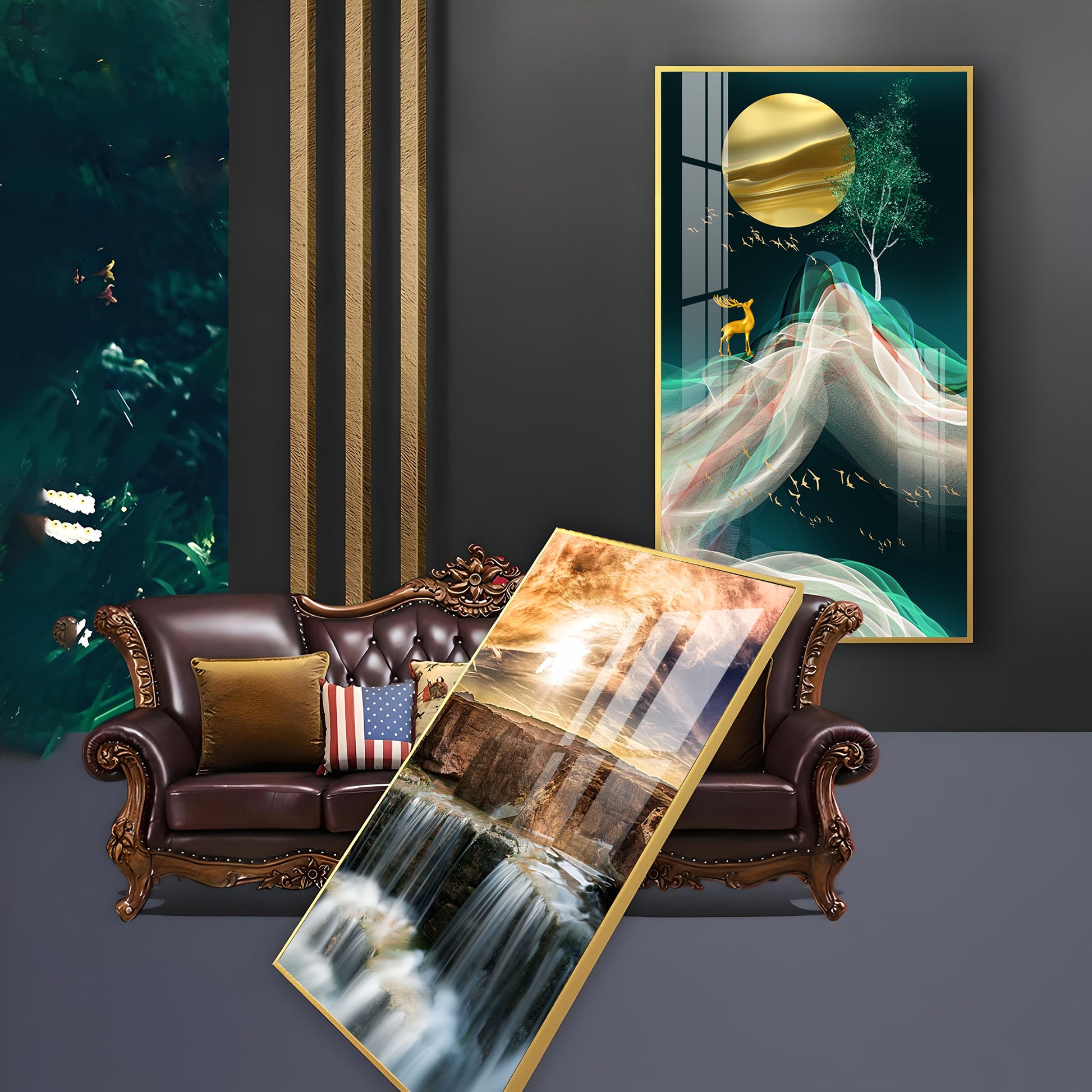 Our Framed glass finish wall art is easy to hang. The metal hooks are included in the box of your ordered wall art. You can simply mount it to the wall you want to place.