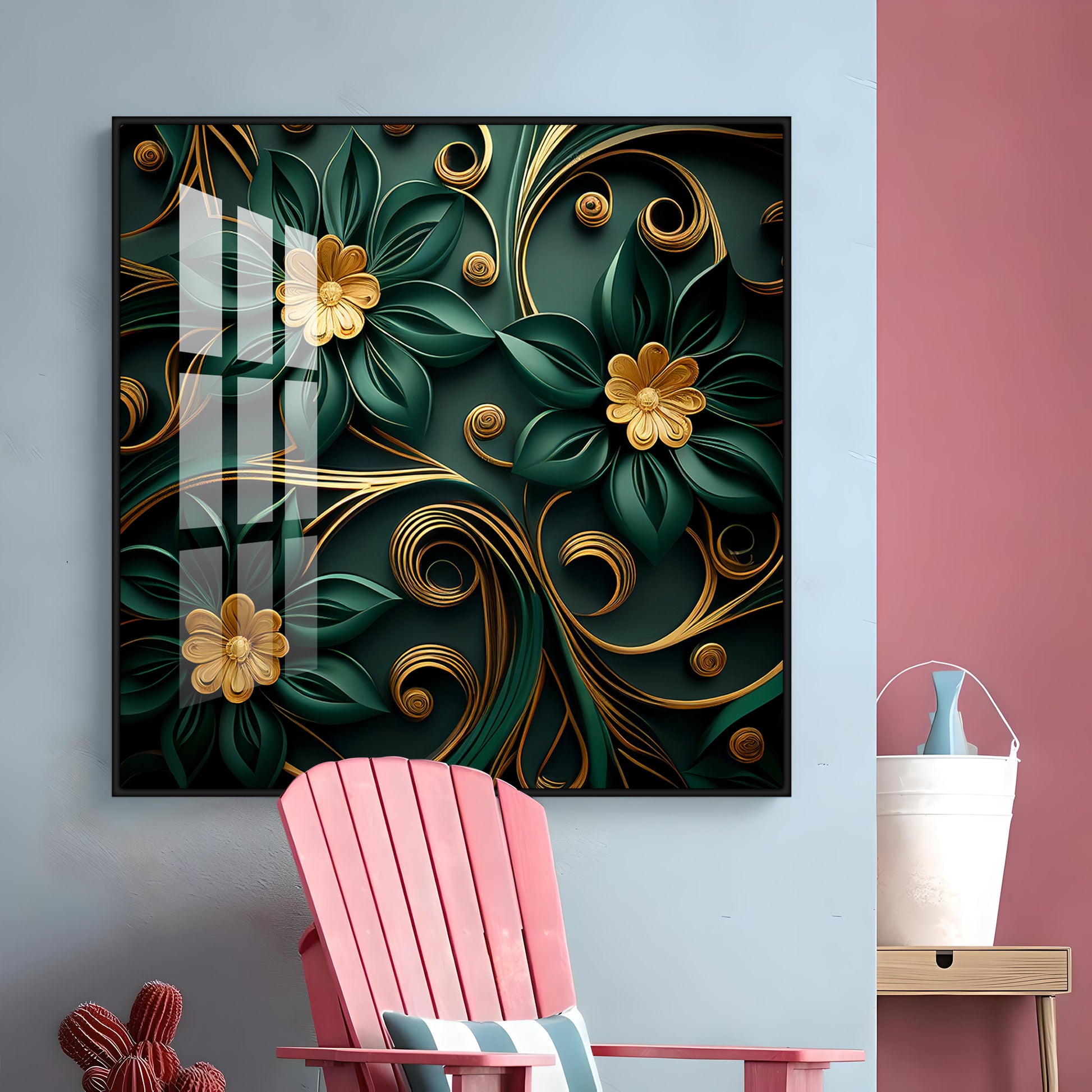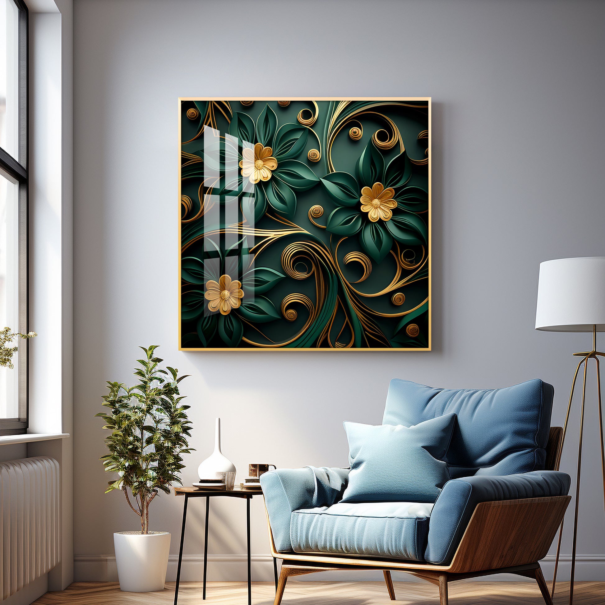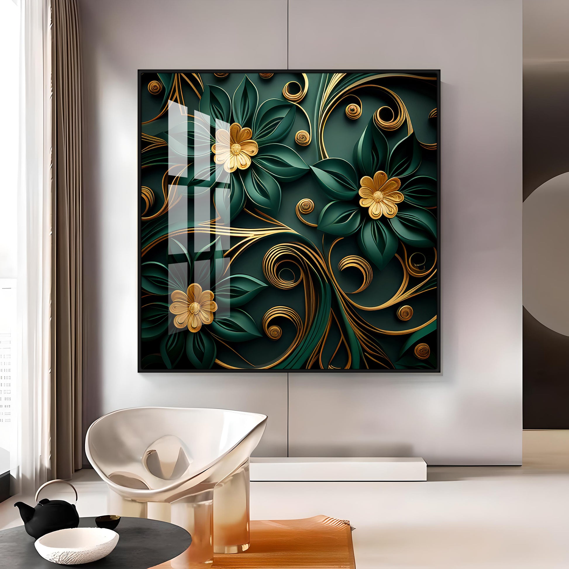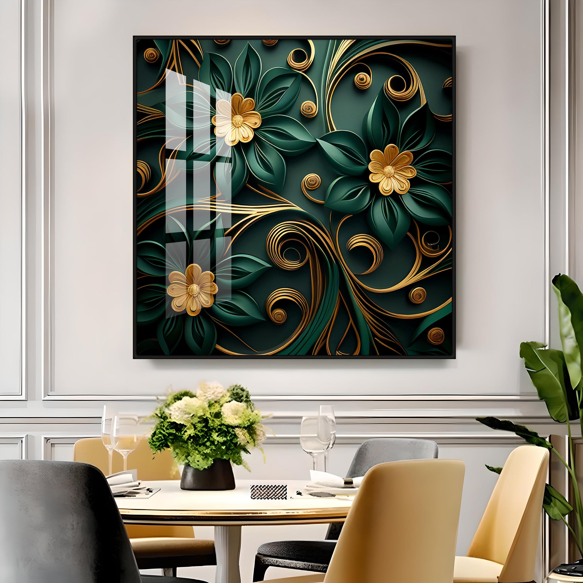 Emerald Garden Flower Glass Finish Square Wall Art